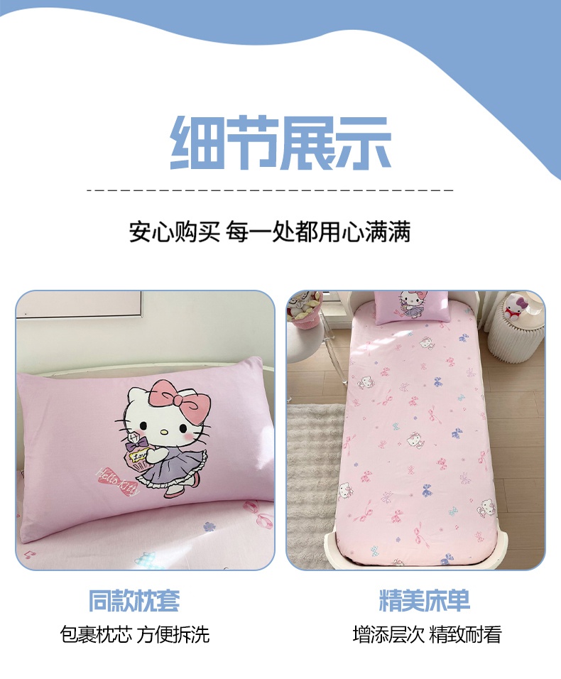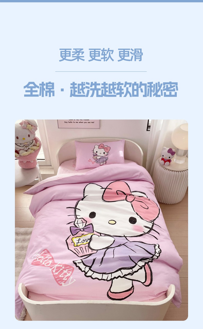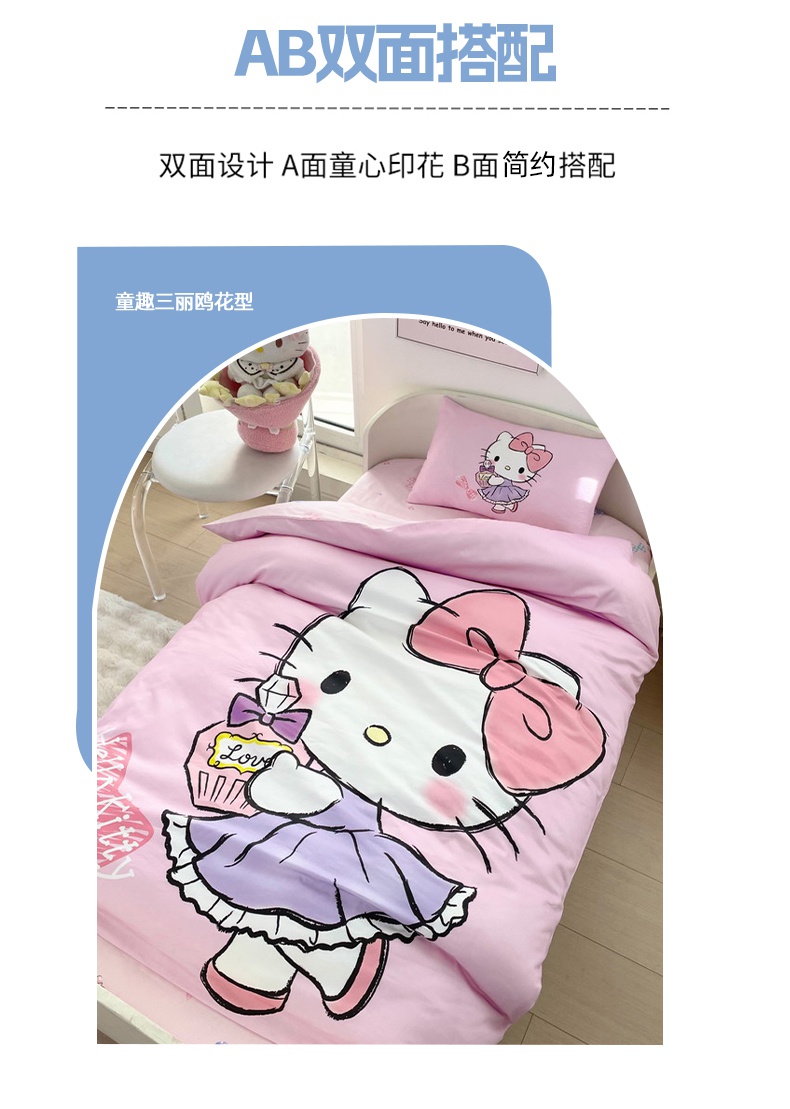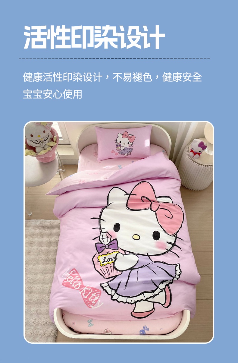 商品名称:蘭菲家纺 2025新款学生季全棉幼儿园三丽鸥三件套大版系列 咪咪