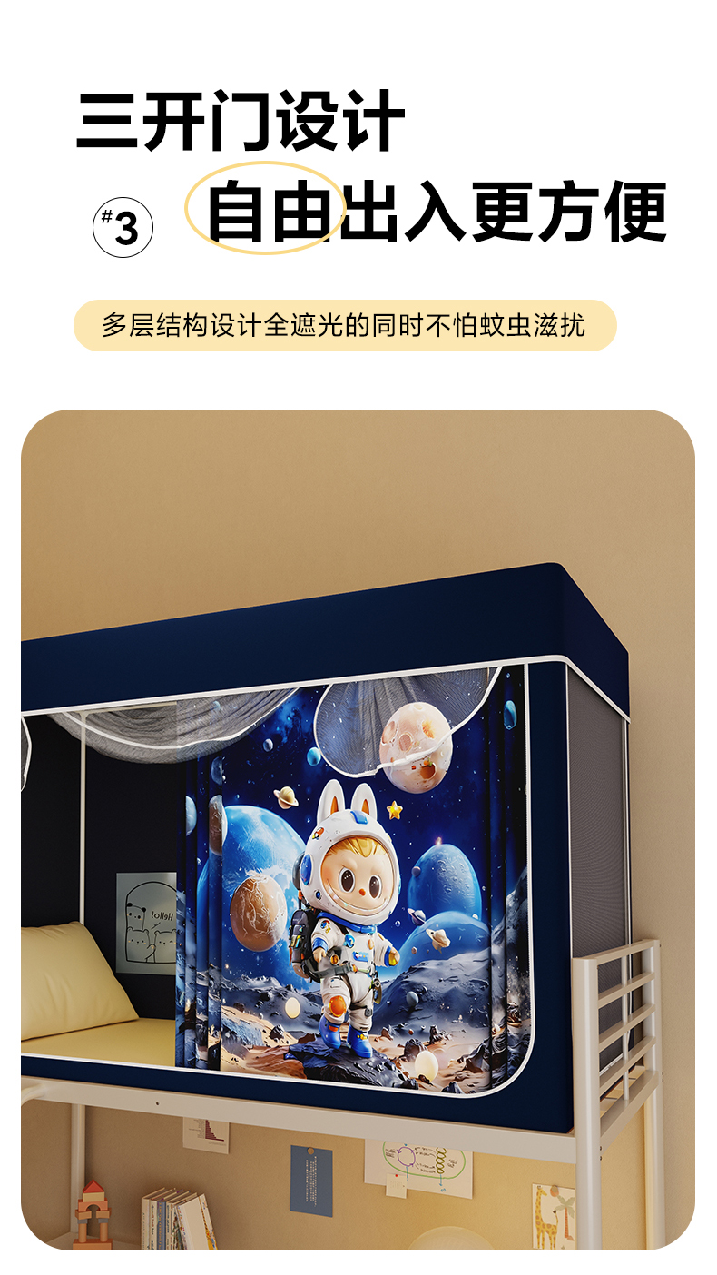 当前位置: 91家纺网 > 商品网购 > 床上用品 > 蚊帐 > 学生蚊帐 > 安金蚊帐2025新款防蚊遮光一体99%强遮光学生宿舍上下铺遮光学生蚊帐-藏蓝系列 太空布