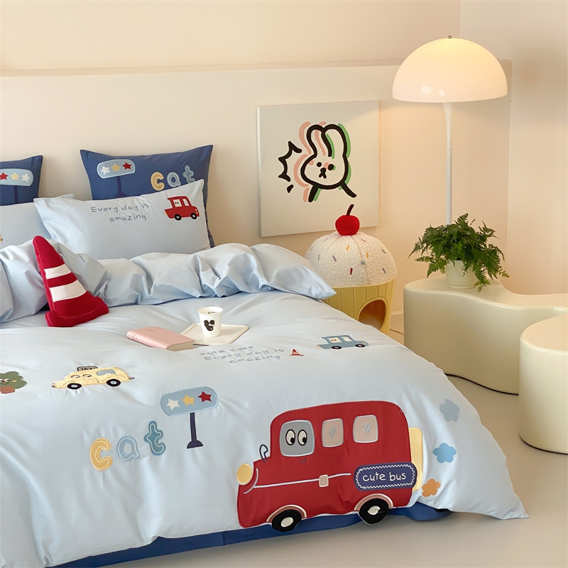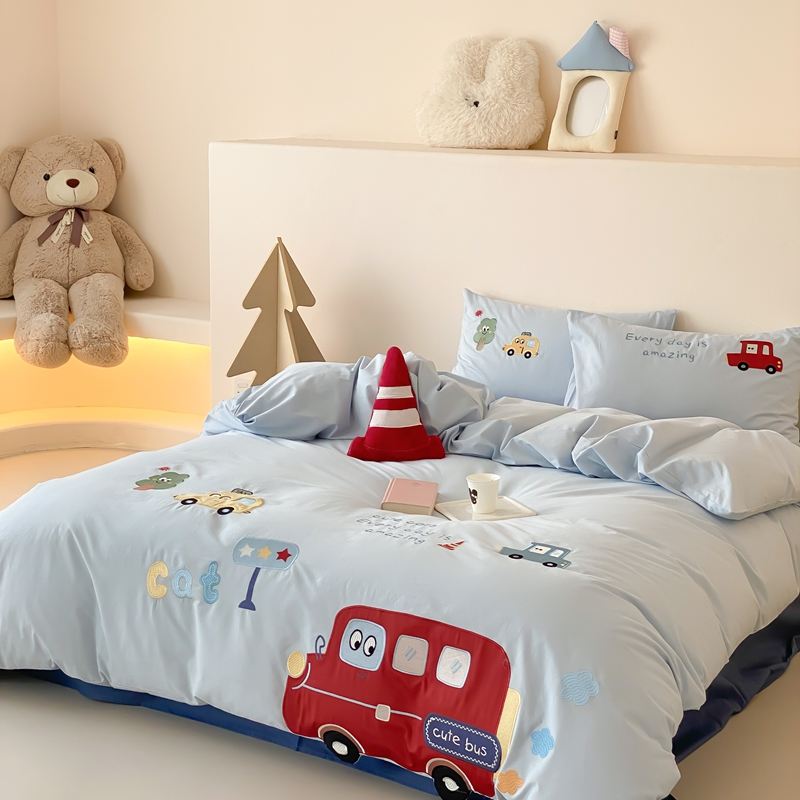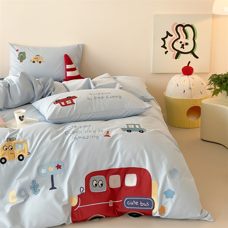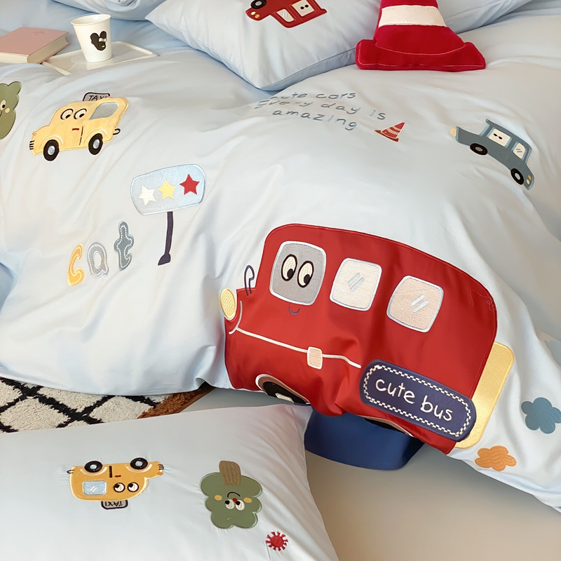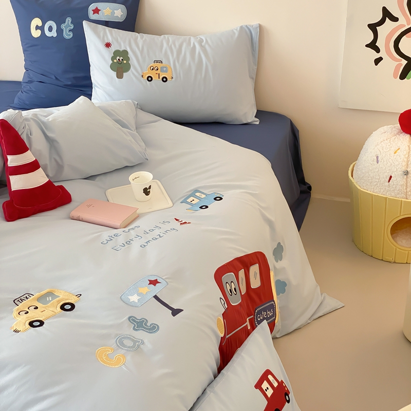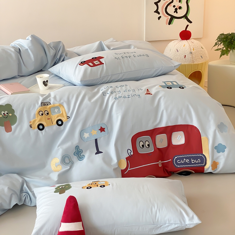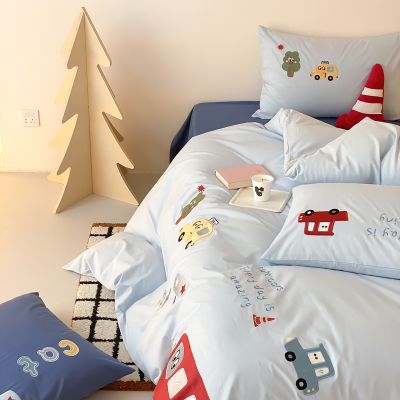 (总)星野 2025新款40S水洗棉贴布绣四件套-汽车总动员