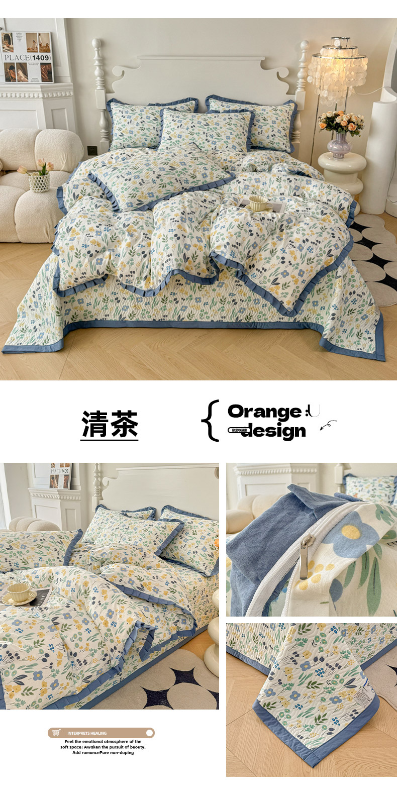 当前位置: 91家纺网 > 商品网购 > 床品套件 > 四件套 > 水洗棉四件套 > 芷凡家纺2025新款水洗棉双层纱云感棉床盖四件套 清茶
