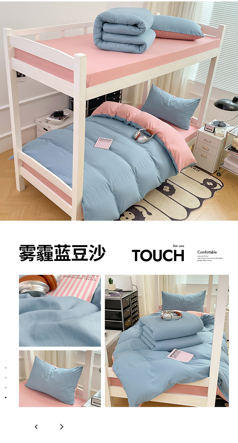当前位置: 91家纺网 > 商品网购 > 床品套件 > 四件套 > 水洗棉四件套 > 梦卓家纺 2025新款学生宿舍上下铺纯色水洗棉三件套 雾霾蓝豆沙