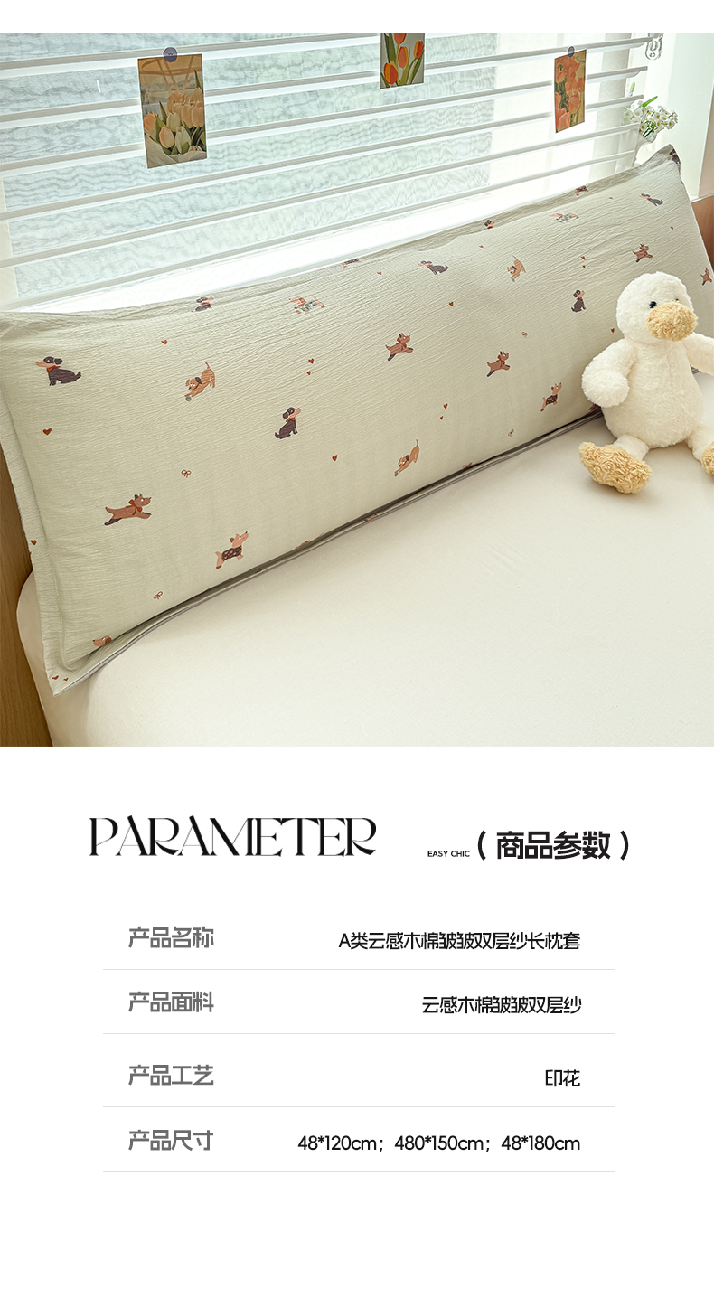 商品名称:麦田家纺 2025新款云感木棉皱皱双层纱长枕 腊肠犬