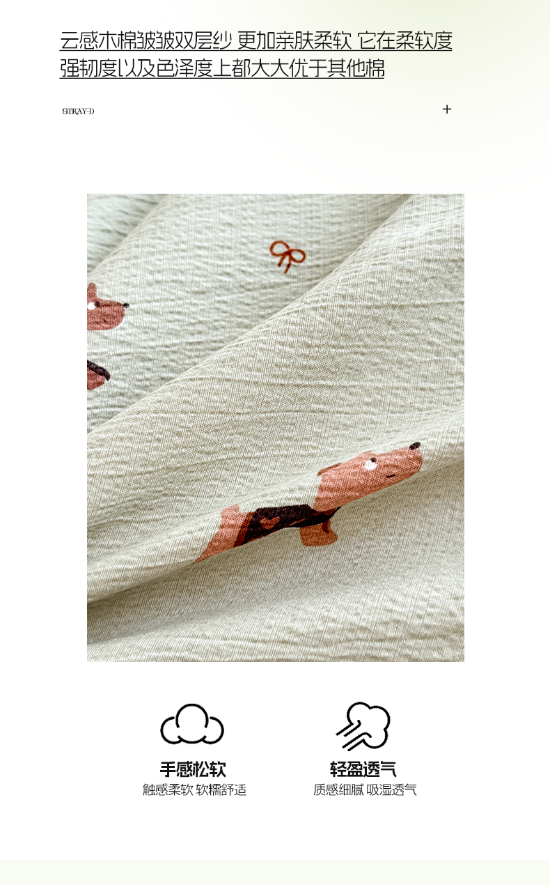(总)麦田家纺 2025新款A类云感木棉皱皱双层纱印花四件套,春意浓,繁花,花颜,简意,开心小熊,腊肠犬,浪漫花语,免挽星辰,甜心格,小蓝町,樱桃格,紫韵