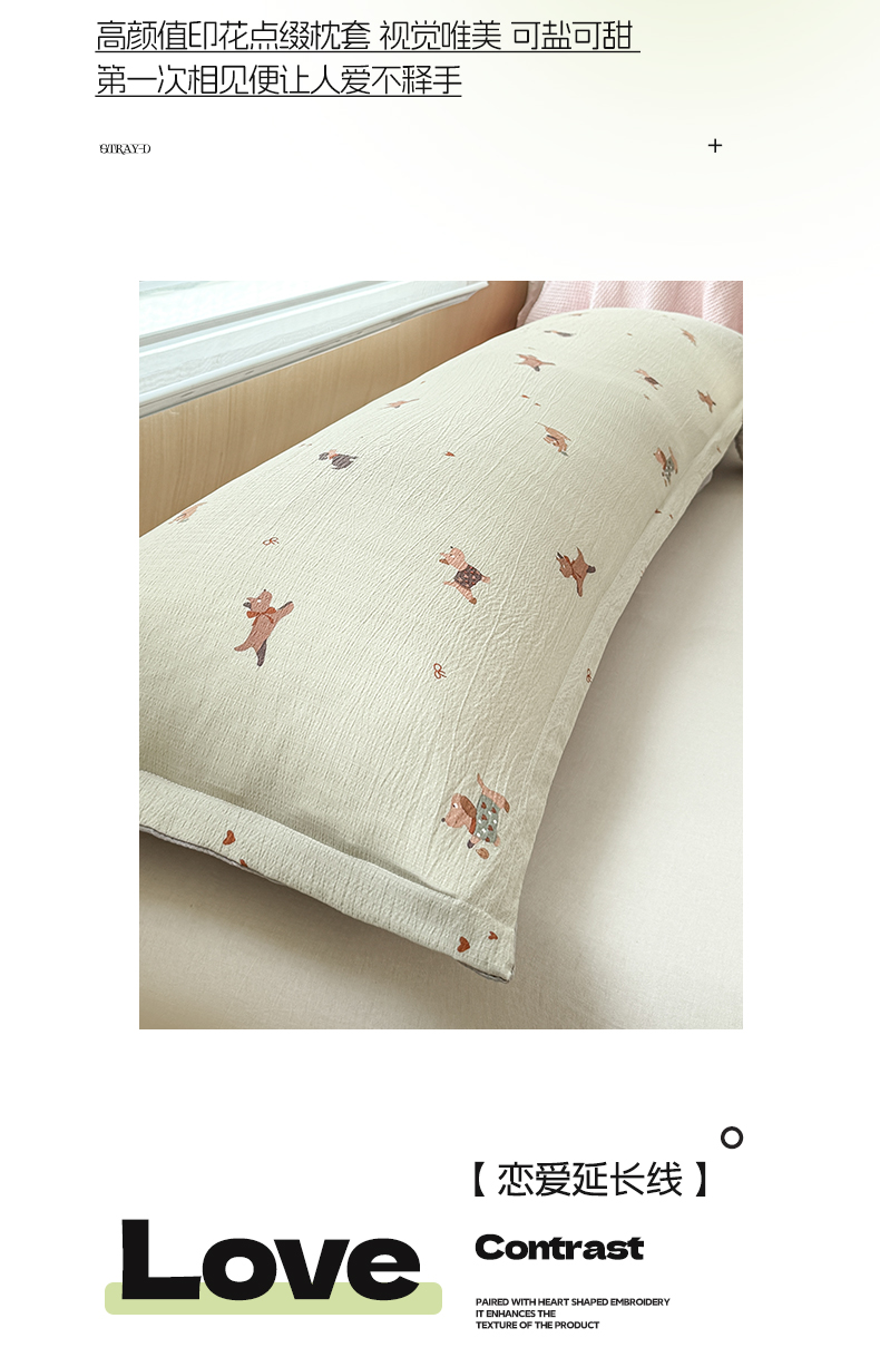 (总)麦田家纺 2025新款云感木棉皱皱双层纱长枕,春意浓,繁花,花颜,开心小熊,腊肠犬,浪漫花语,甜心格,小蓝町,樱桃格,紫韵,纯白