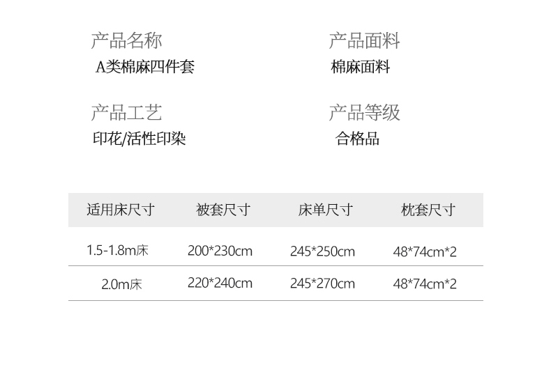 商品名称:麦田家纺 2025新款A类棉麻四件套系列 素锦-咖
