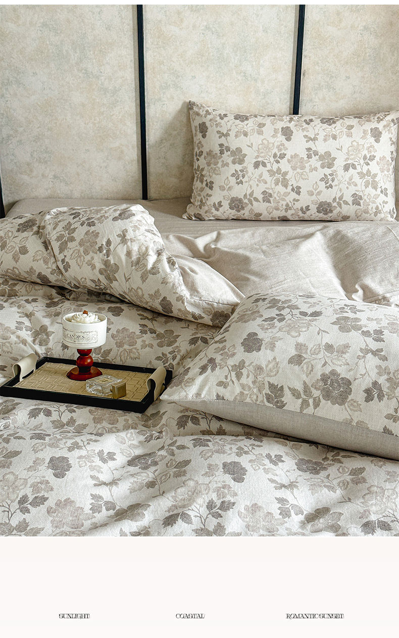 (总)麦田家纺 2025新款A类棉麻四件套系列,花间意境-红,花间意境-咖,花香满园-红,素锦-咖,香叶时代-灰,映霜-灰,映霜-绿