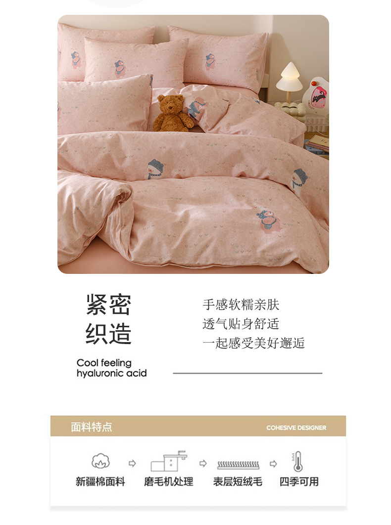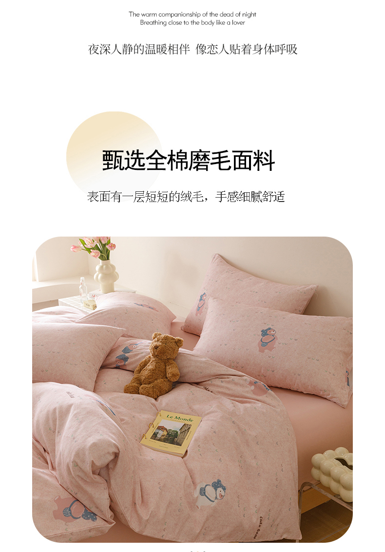 当前位置: 91家纺网 > 商品网购 > 床品套件 > 四件套 > 全棉普通四件套 > 爱思佳 2025新款加厚全棉磨毛单品套件系列-四件套 幸福熊AA