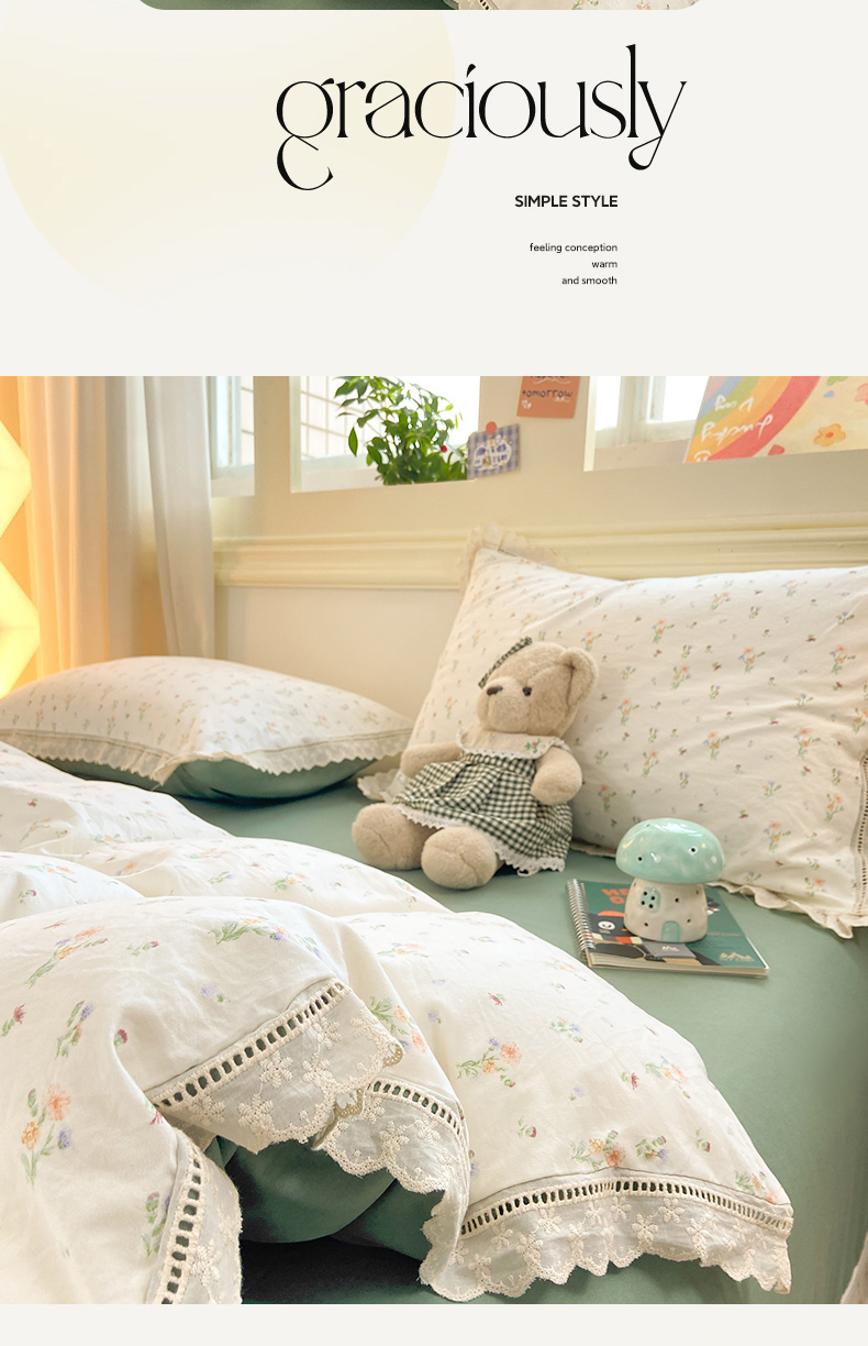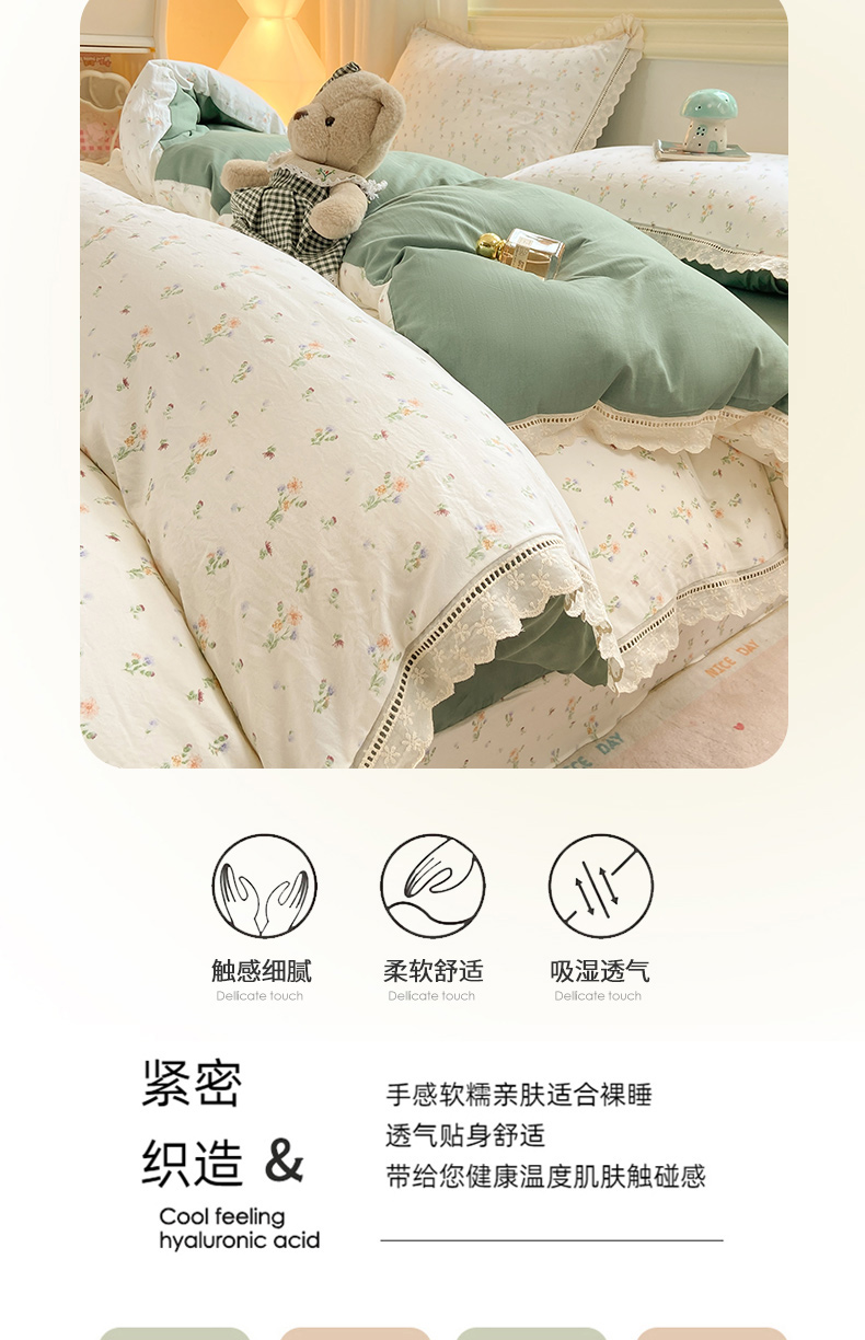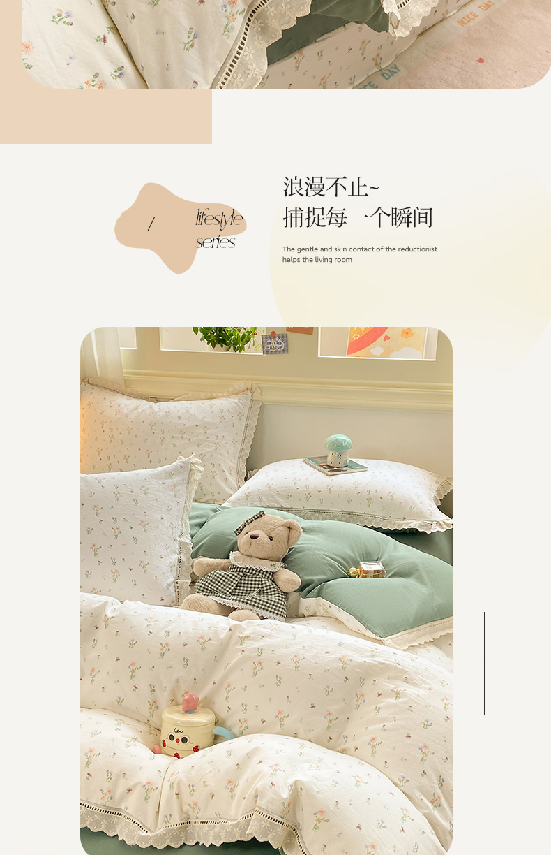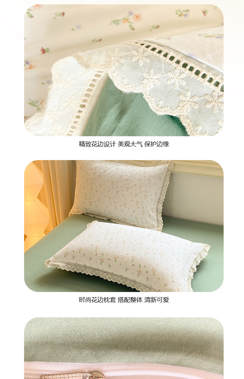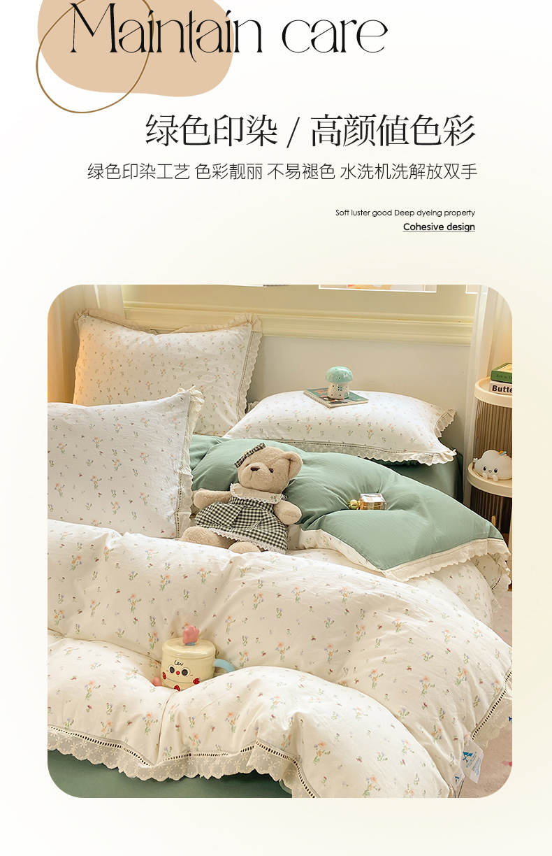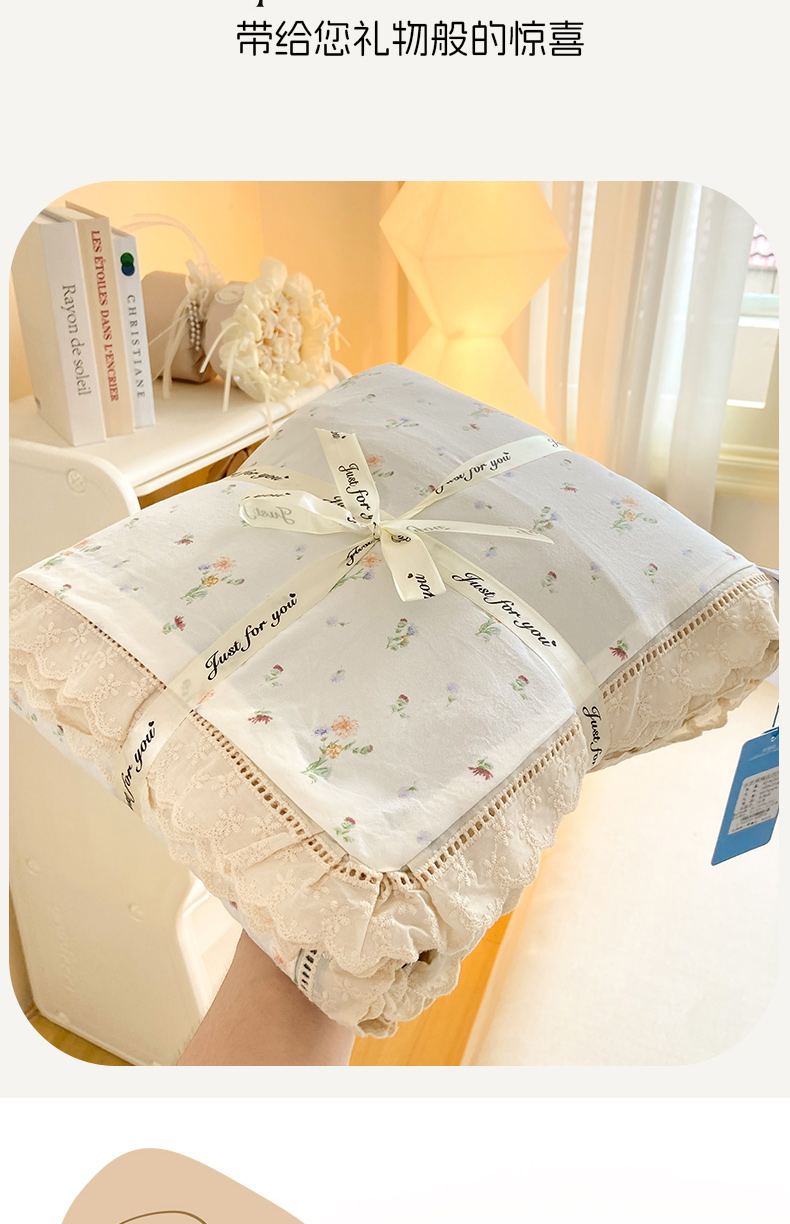 大麦家纺 25年新款高克重印花水洗棉花边四件套 花影