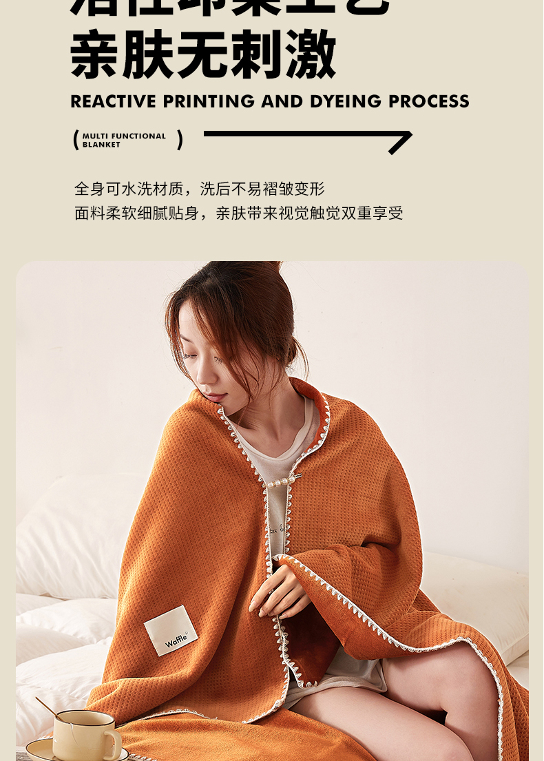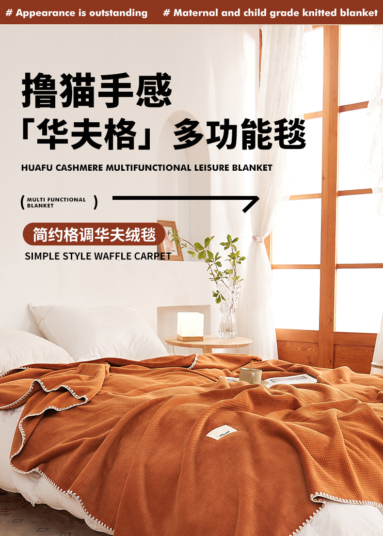 (总)莱家富 2026新款跨境A类华夫格牛奶绒双面毛毯轻奢休闲盖毯子多功能午睡办公室用毯
