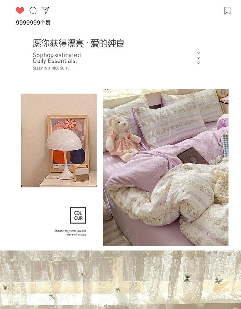 当前位置: 91家纺网 > 商品网购 > 床品套件 > 四件套 > 双层纱四件套 > 丽美人家纺 2025新款【全尺寸不断货】高克重木棉提花双层纱四件套 QB春日小花