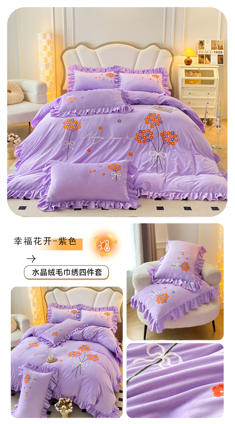 (总)唐人居 2025新款高克重牛奶绒立体绣花床盖四件套-芬芳,芬芳-浅紫,芬芳-草绿,芬芳-豆沙,芬芳-粉色,芬芳-暖橘,芬芳-浅蓝