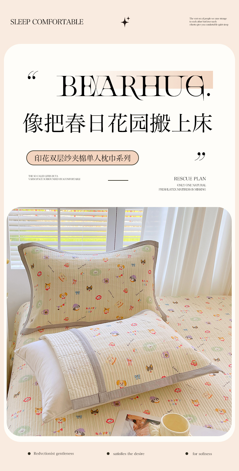 商品名称:雨彤家纺 2025新款A类双层纱夹棉单人枕巾 童趣涂鸦