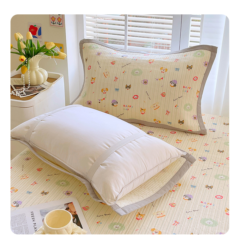 雨彤家纺 2025新款A类双层纱夹棉单人枕巾 童趣涂鸦