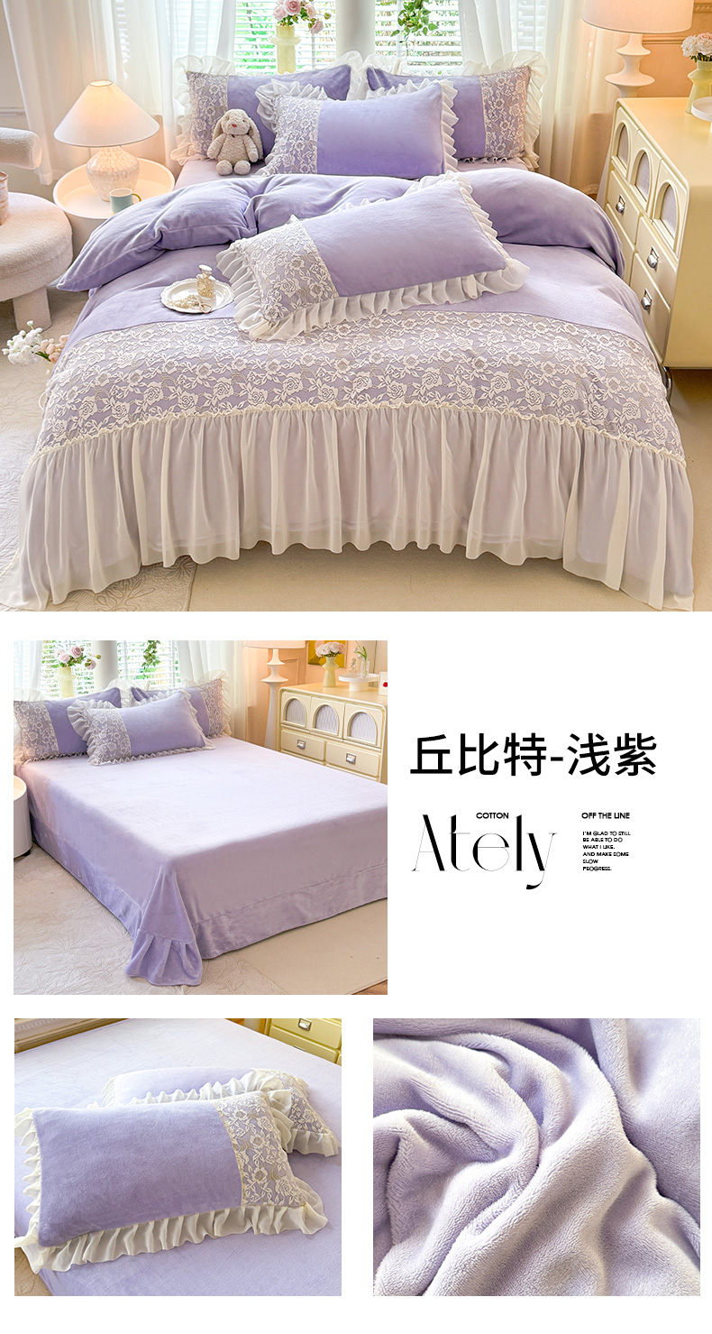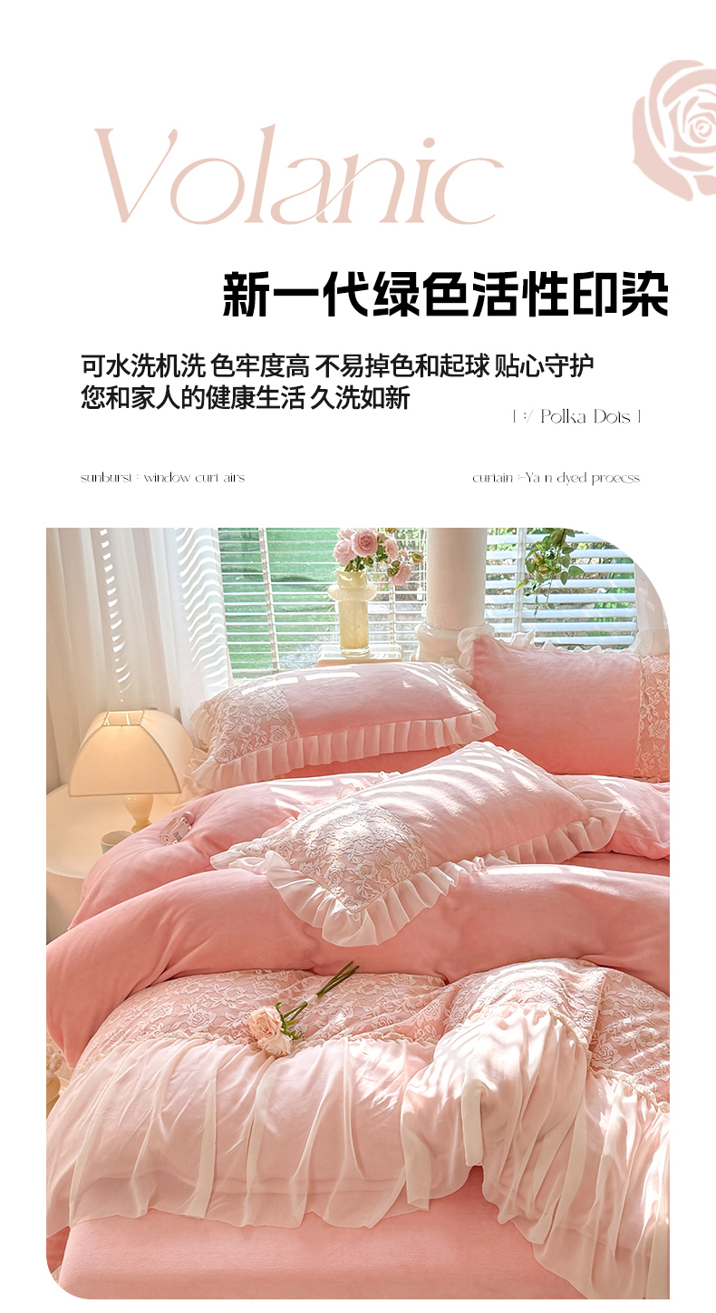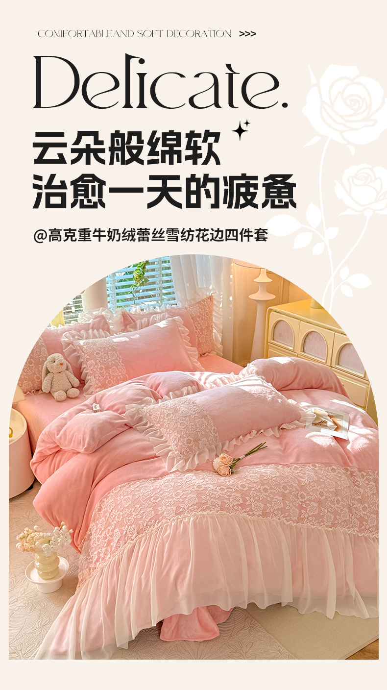 商品名称:唐人居 2025新款高克重牛奶绒蕾丝雪纺花边四件套-丘比特 丘比特-浅粉