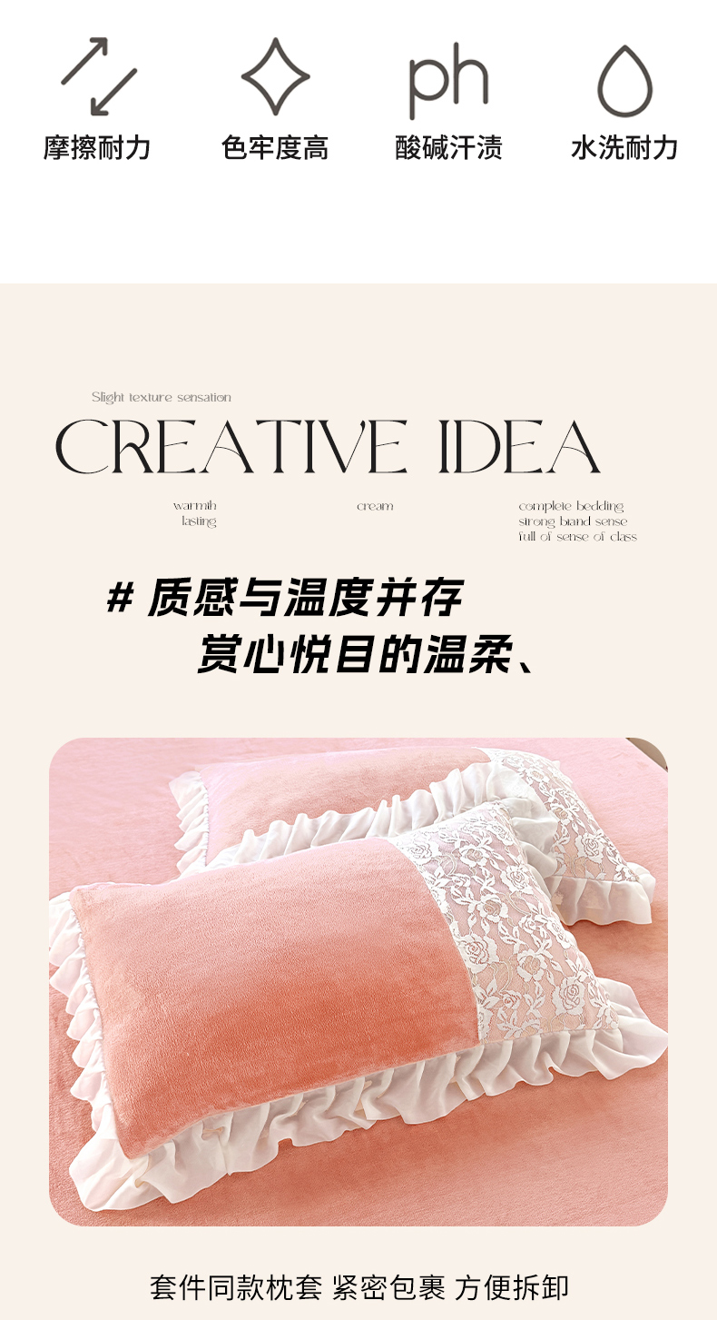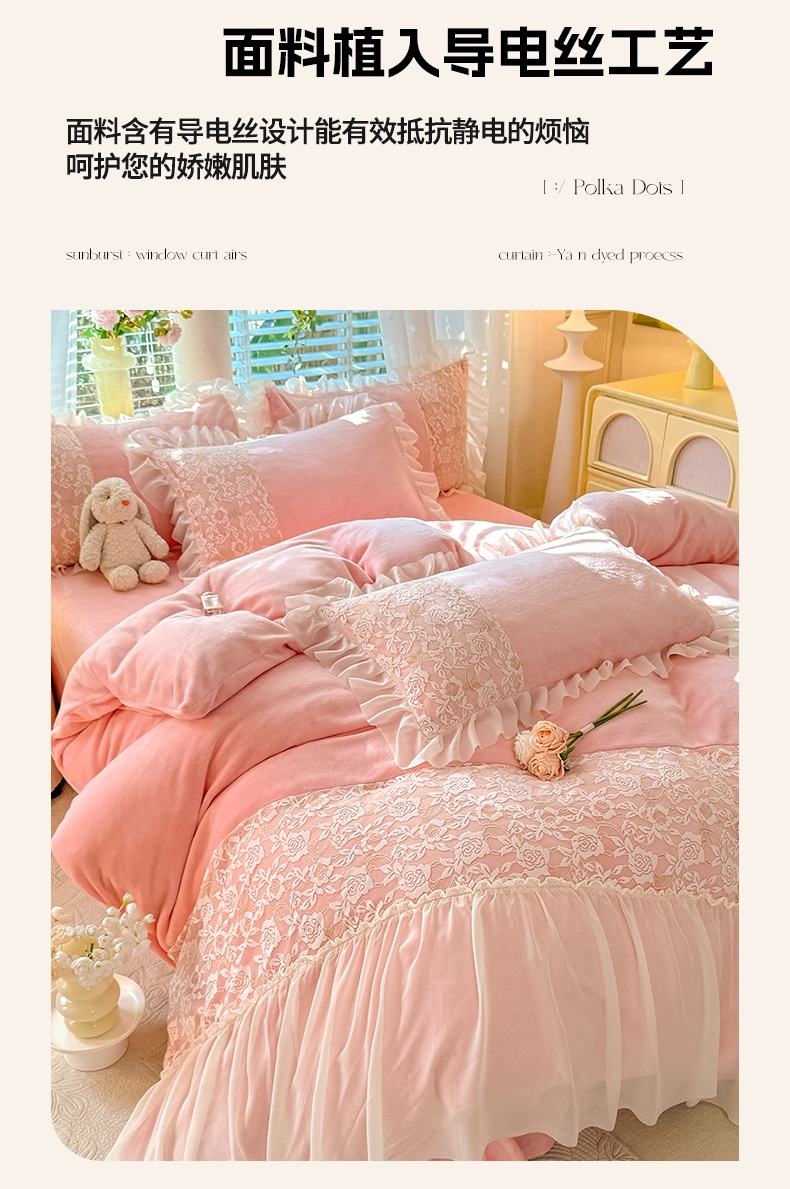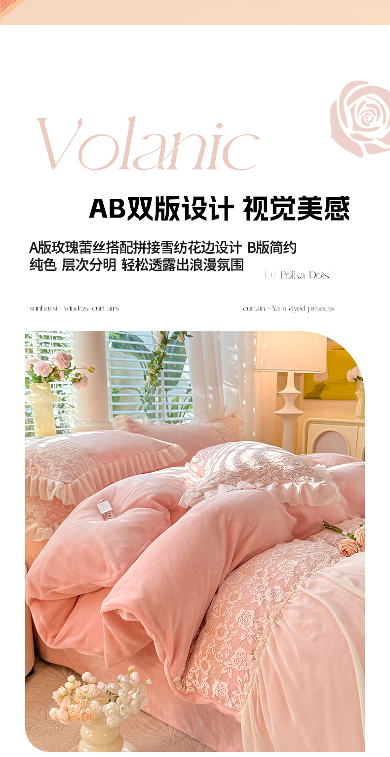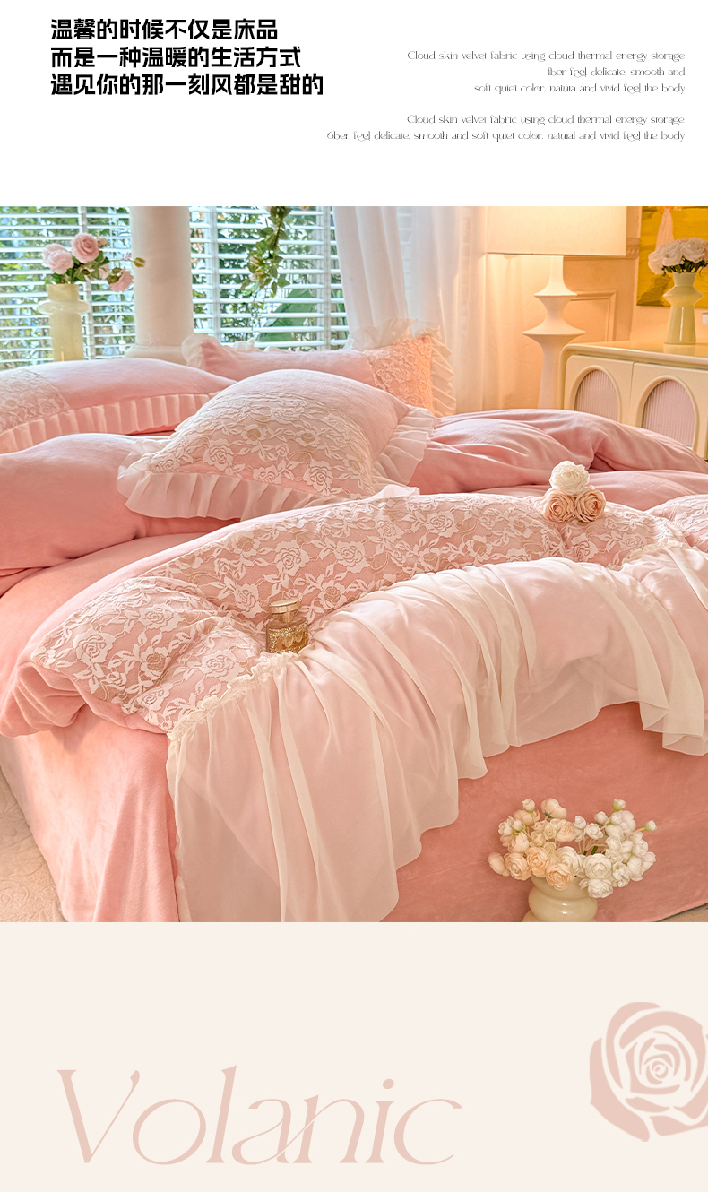 商品名称:唐人居 2025新款高克重牛奶绒蕾丝雪纺花边四件套-丘比特 丘比特-浅粉