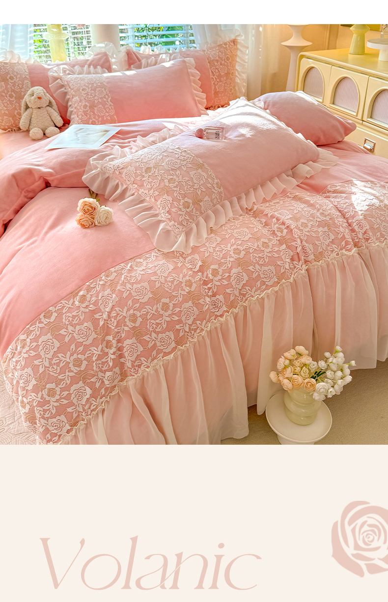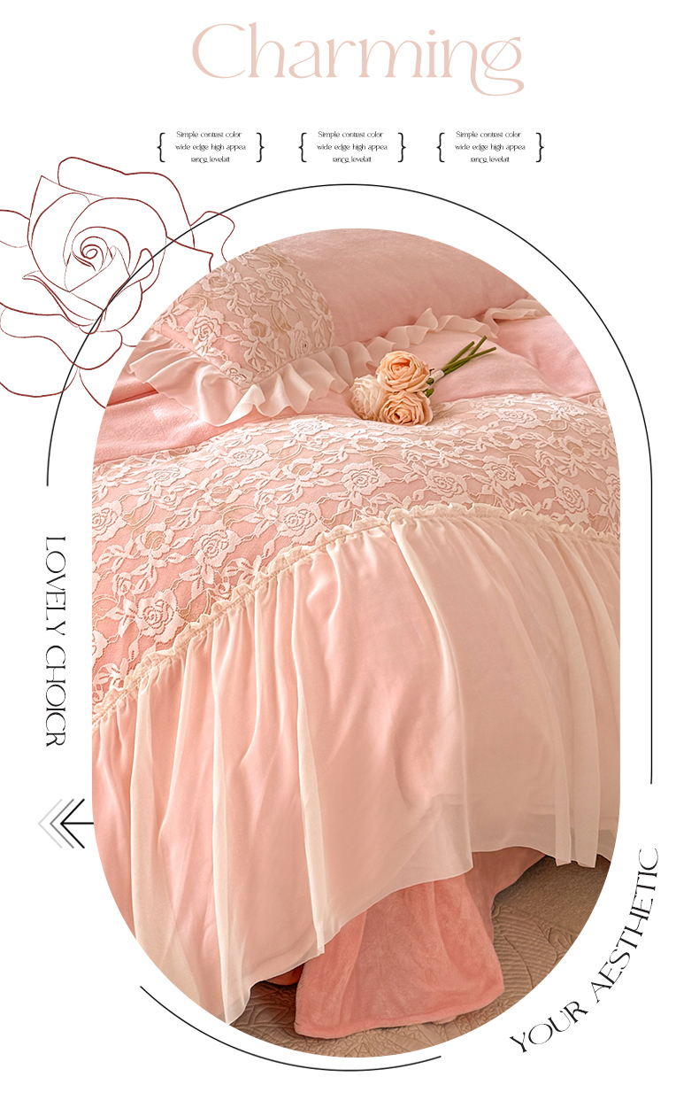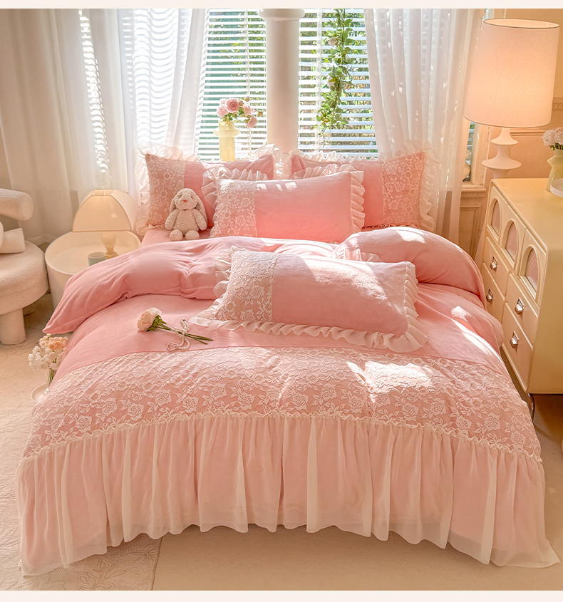 唐人居 2025新款高克重牛奶绒蕾丝雪纺花边四件套-丘比特 丘比特-浅粉