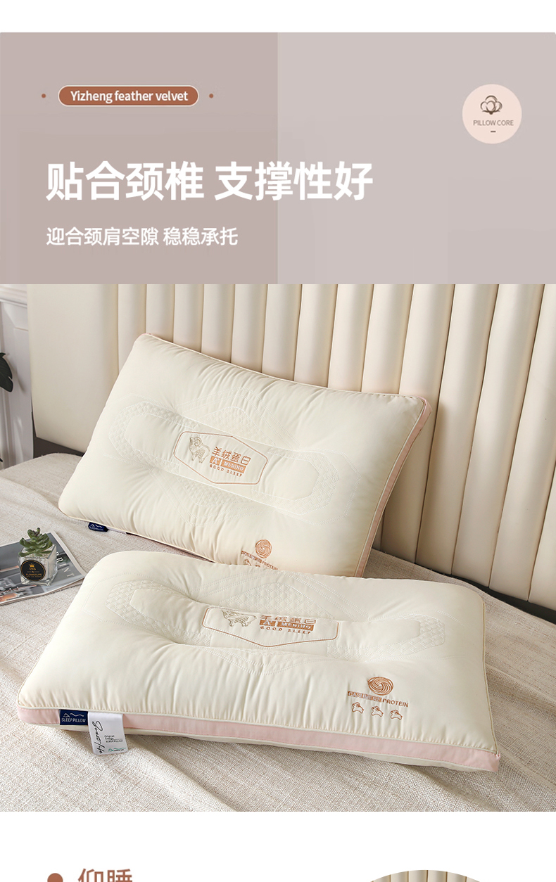 (总)永乐枕芯 2025新款驼绒蛋白枕枕头枕芯,绿色,粉色