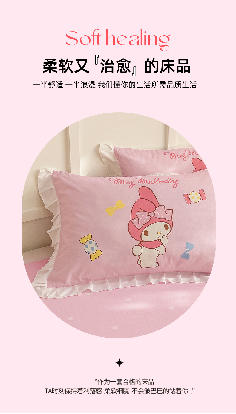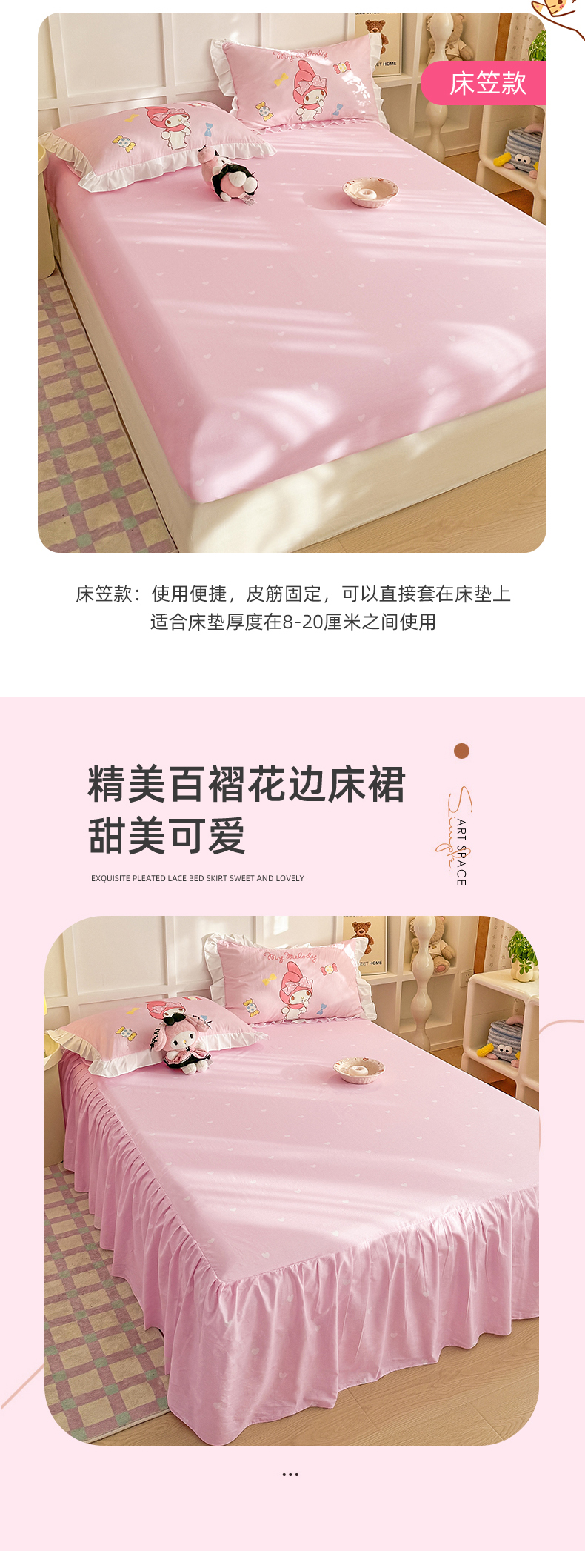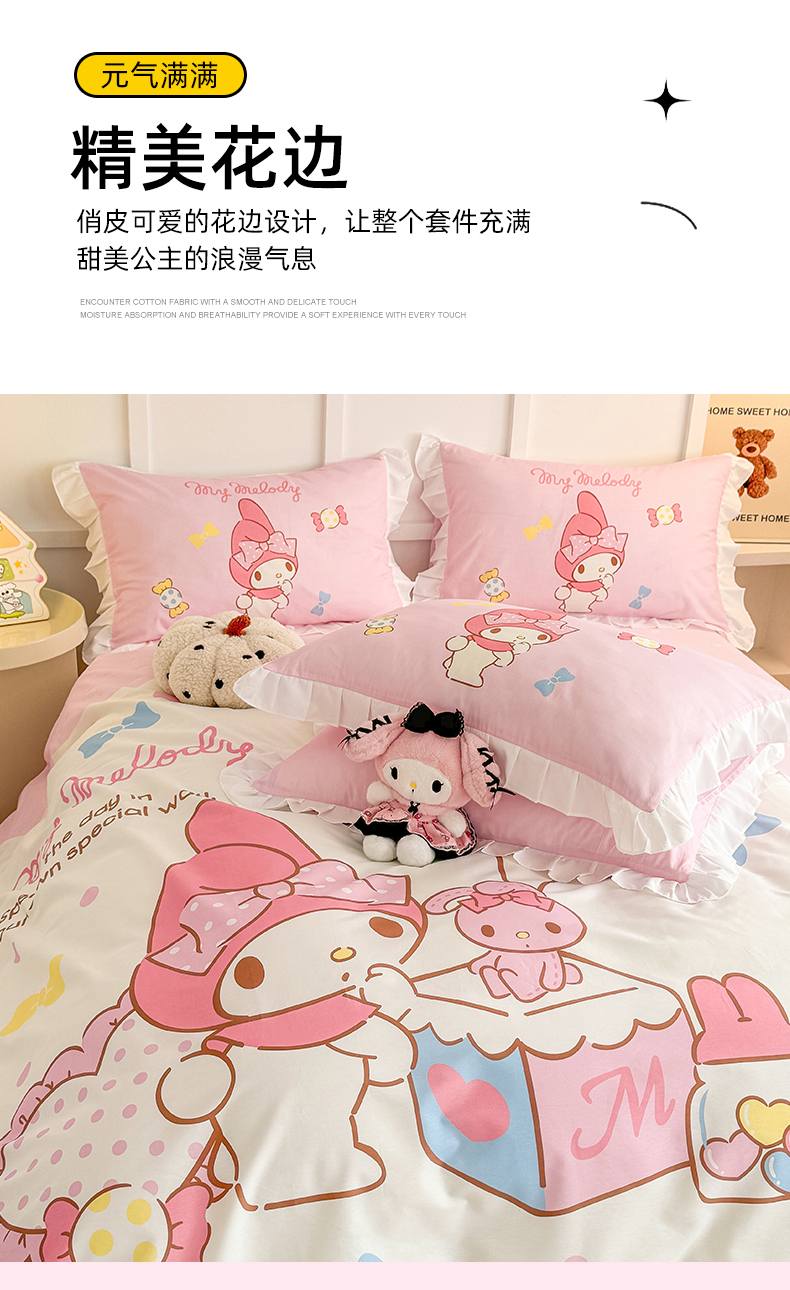 当前位置: 91家纺网 > 商品网购 > 床品套件 > 四件套 > 全棉普通四件套 > 2025新款大版三丽鸥系列 纯棉床单全棉床裙学生三四件套 花边款 大版花边-糖果美乐蒂