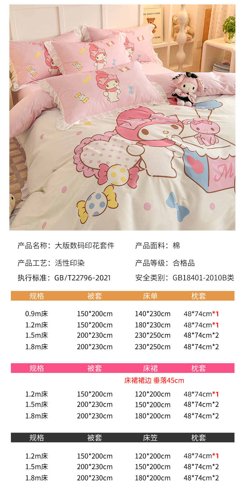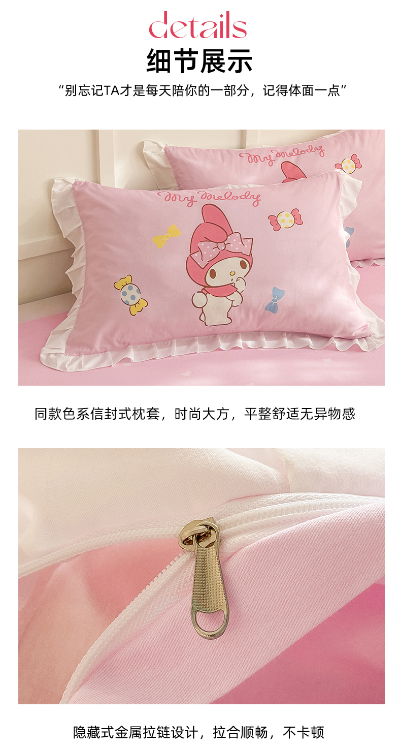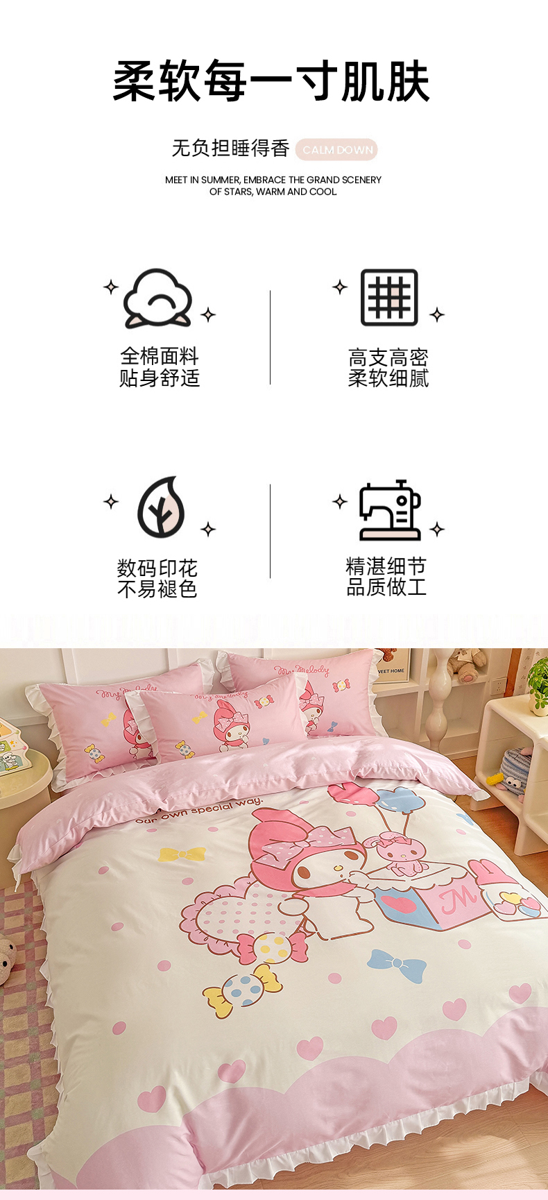 当前位置: 91家纺网 > 商品网购 > 床品套件 > 四件套 > 全棉普通四件套 > 2025新款大版三丽鸥系列 纯棉床单全棉床裙学生三四件套 花边款 大版花边-糖果美乐蒂