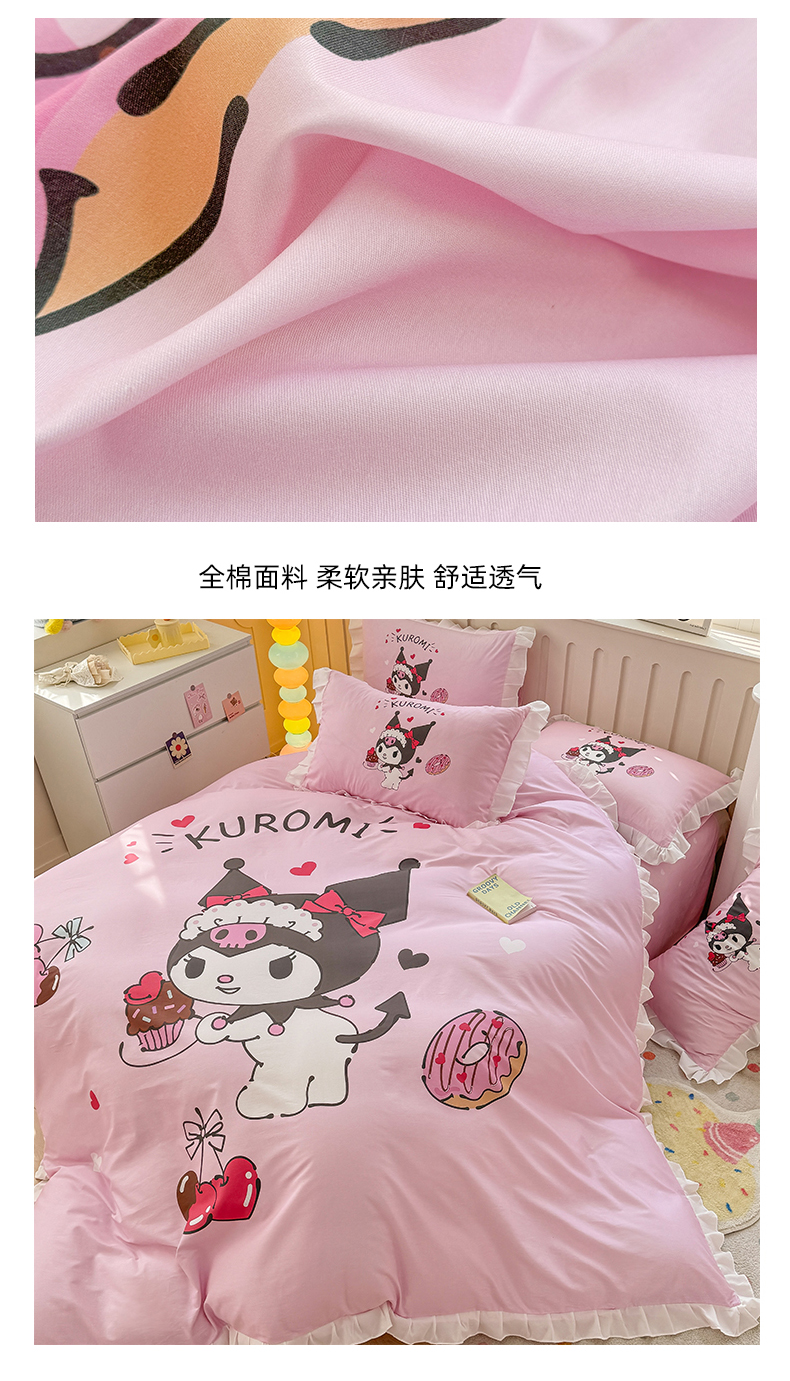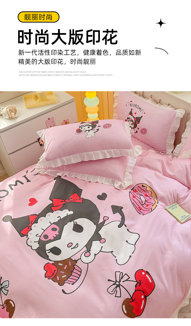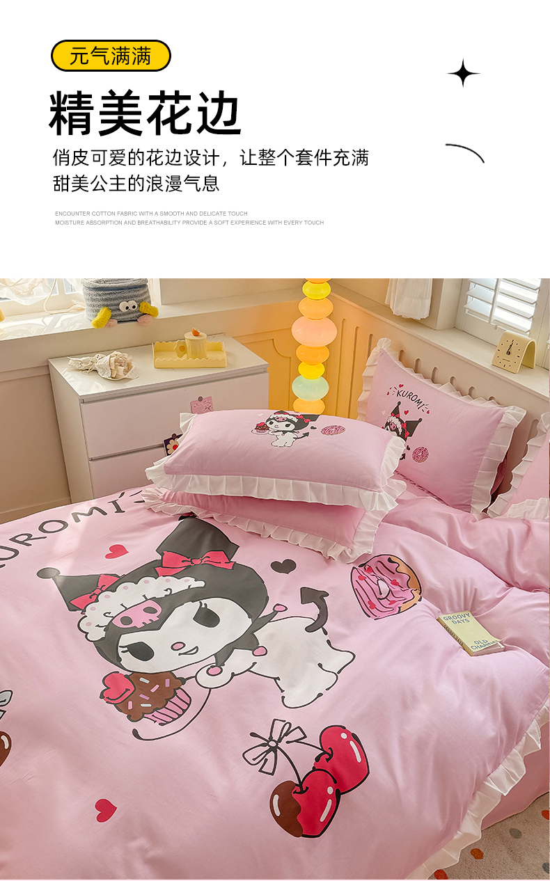 当前位置: 91家纺网 > 商品网购 > 床品套件 > 四件套 > 全棉普通四件套 > 2025新款大版三丽鸥系列 纯棉床单全棉床裙学生三四件套 花边款 花边款-美味库洛米