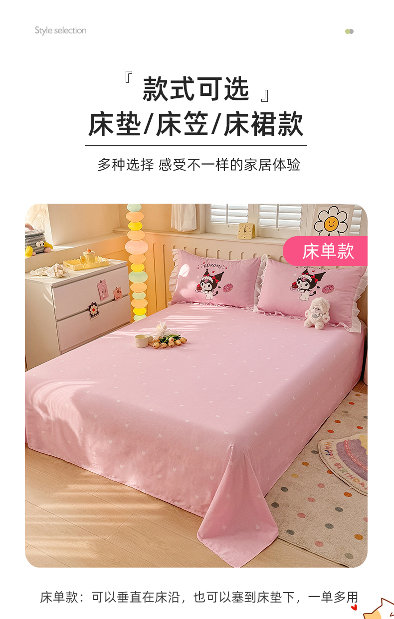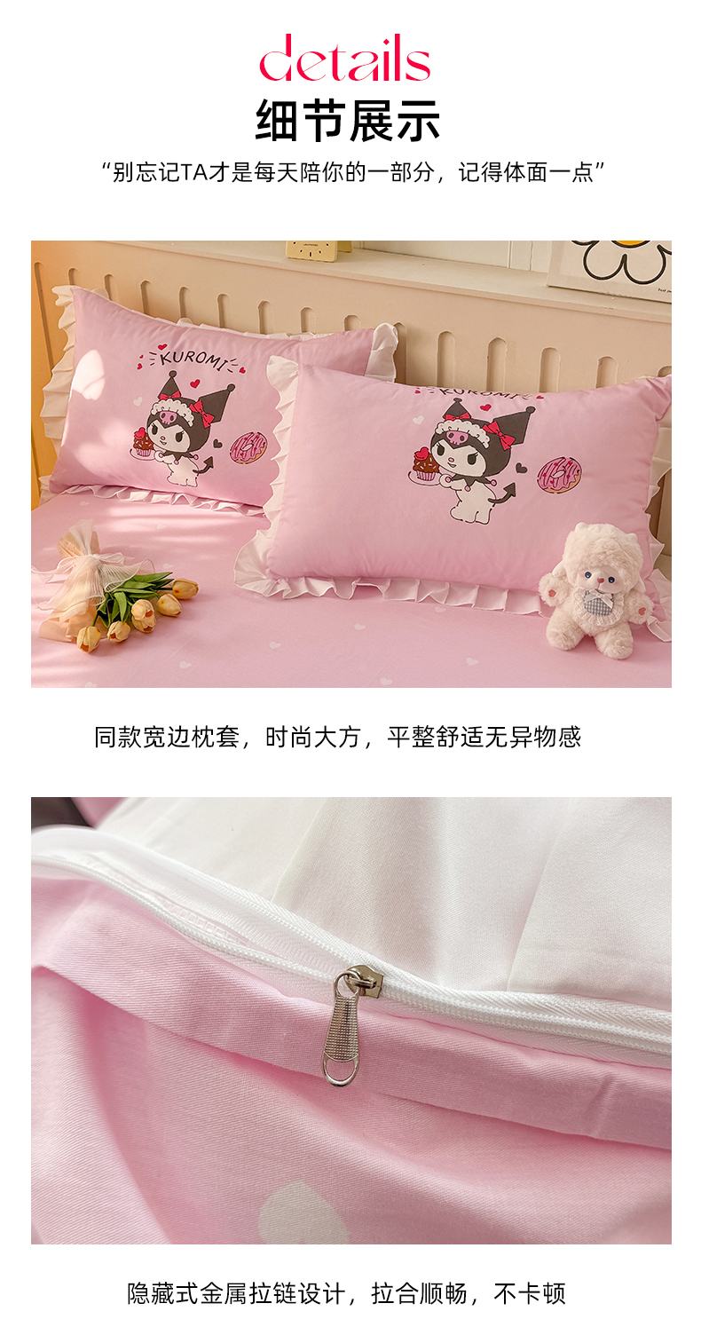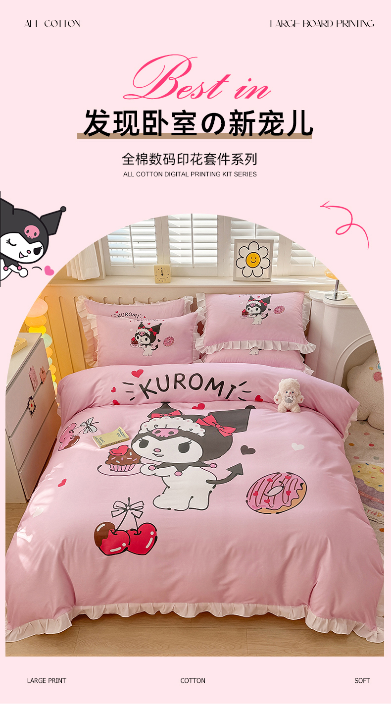 当前位置: 91家纺网 > 商品网购 > 床品套件 > 四件套 > 全棉普通四件套 > 2025新款大版三丽鸥系列 纯棉床单全棉床裙学生三四件套 花边款 花边款-美味库洛米