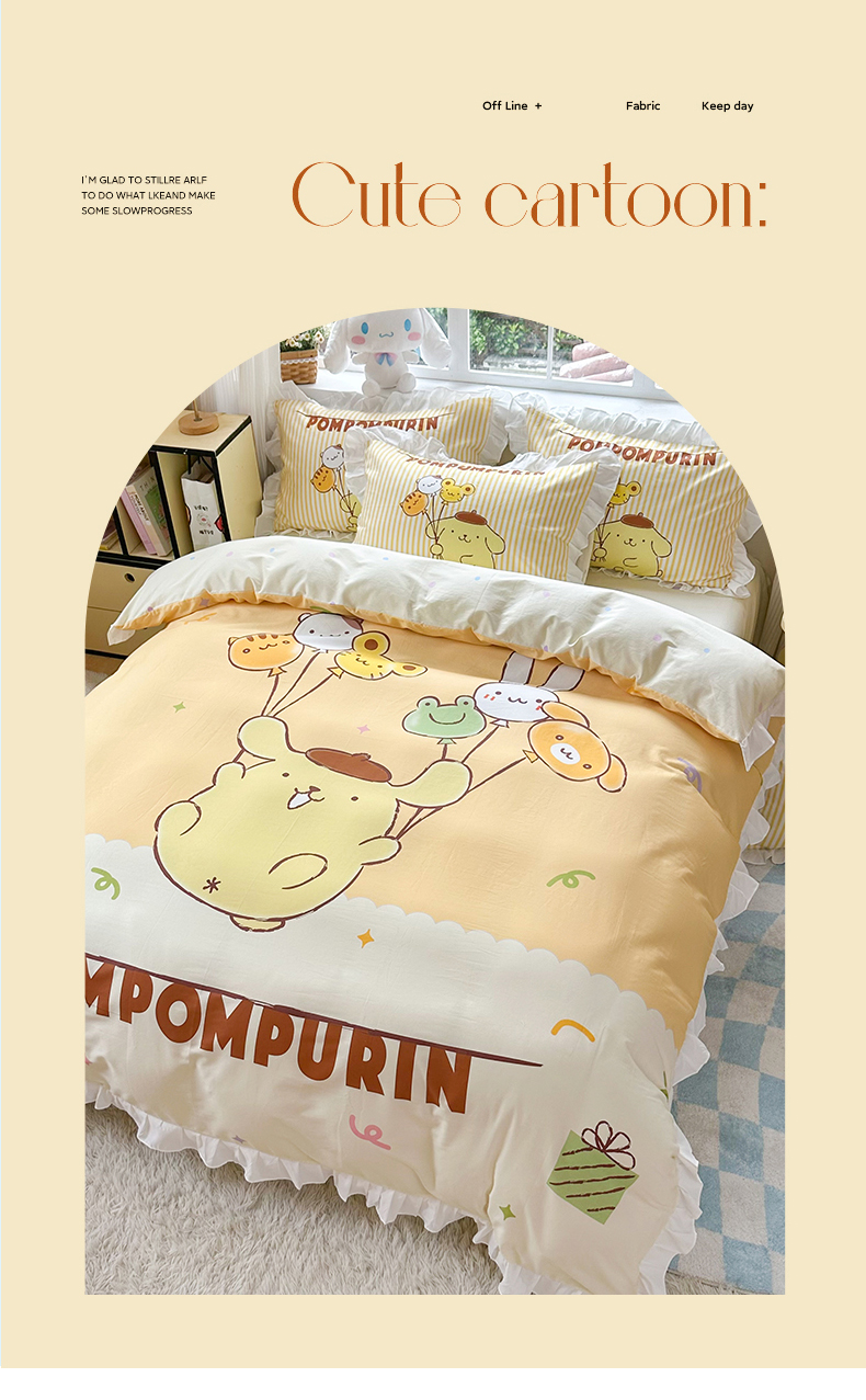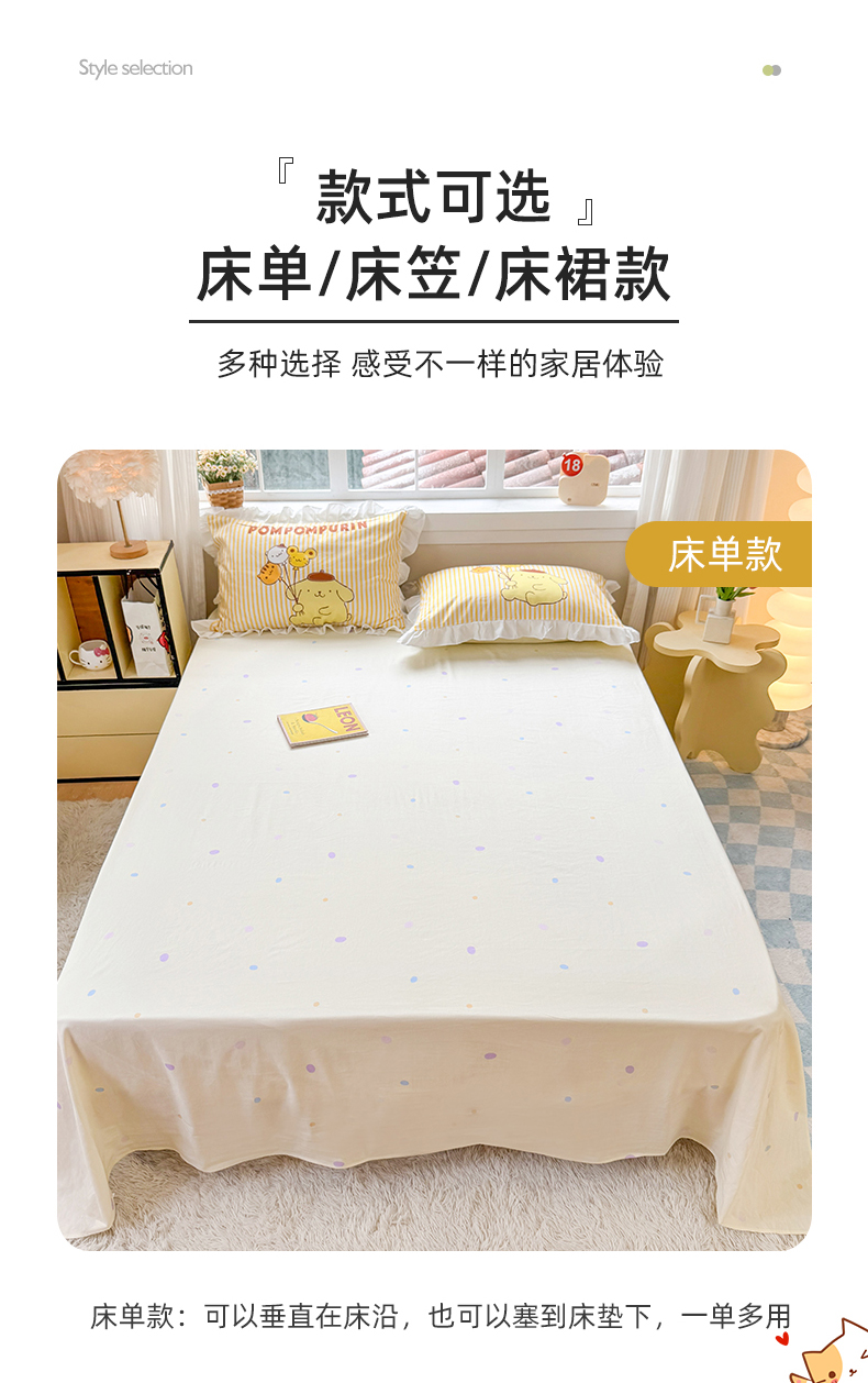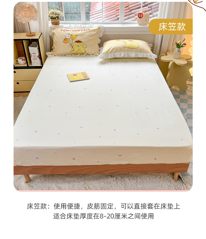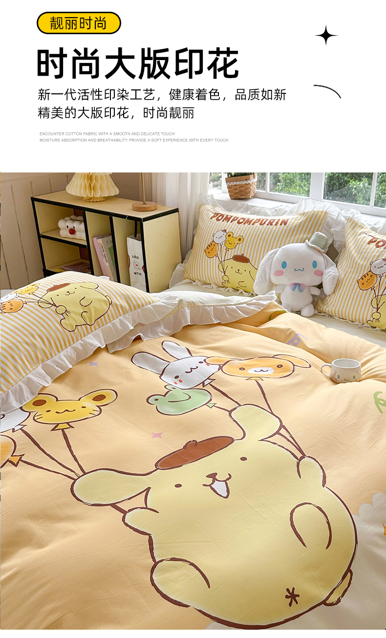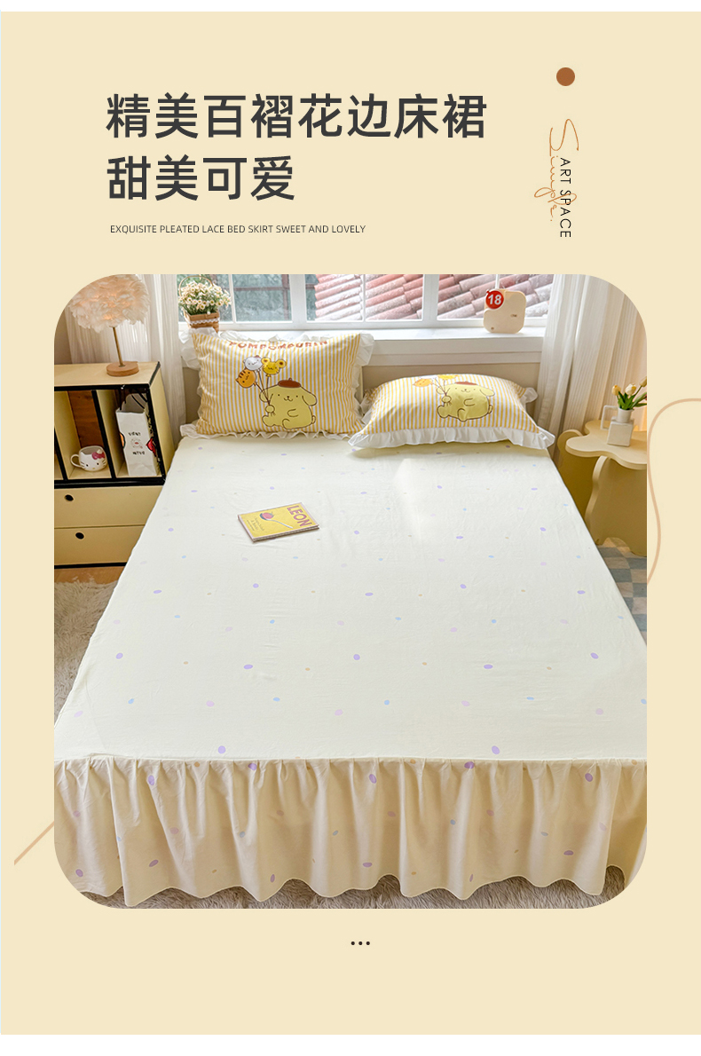 当前位置: 91家纺网 > 商品网购 > 床品套件 > 四件套 > 全棉普通四件套 > 2025新款大版三丽鸥系列 纯棉床单全棉床裙学生三四件套 花边款 奶黄包布丁狗-白花边