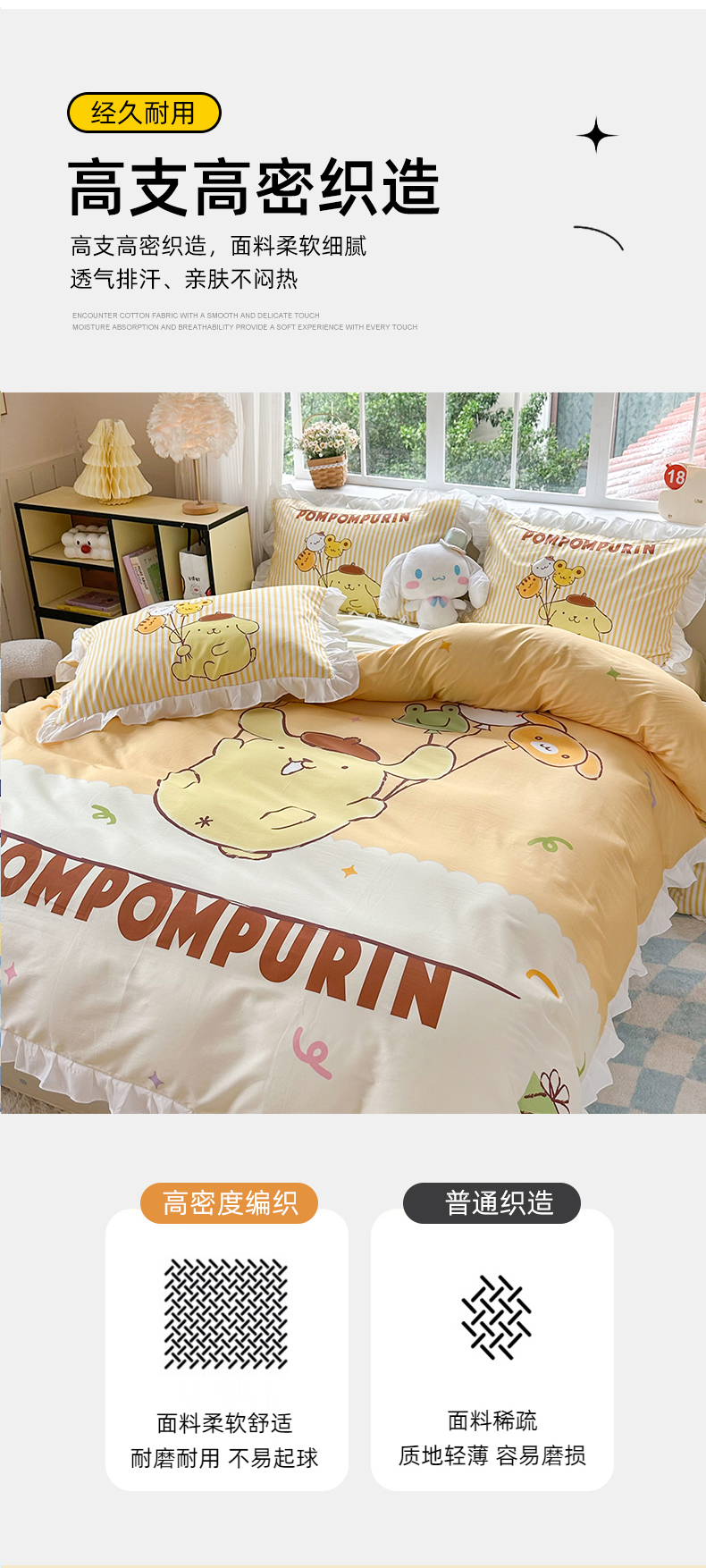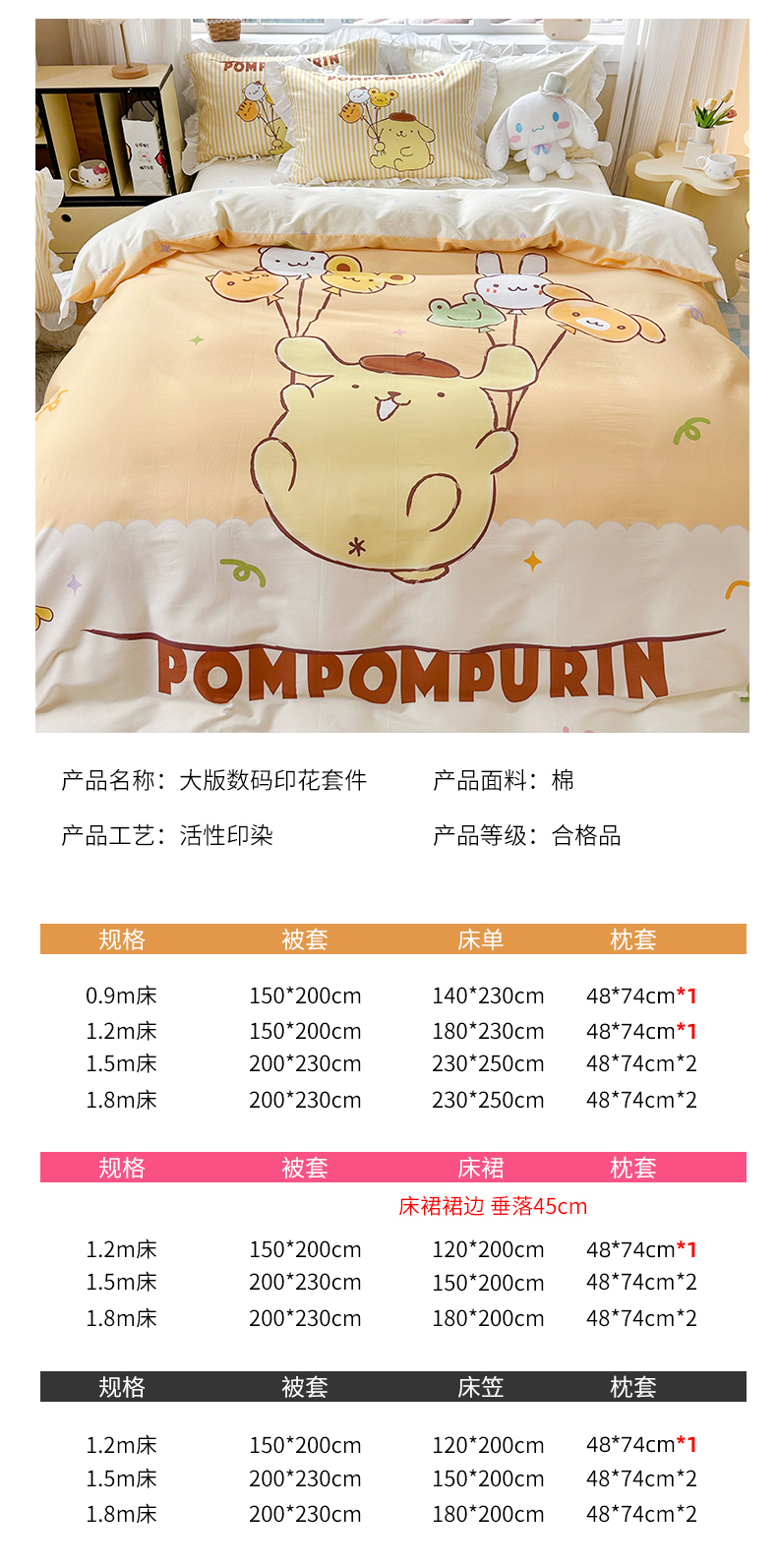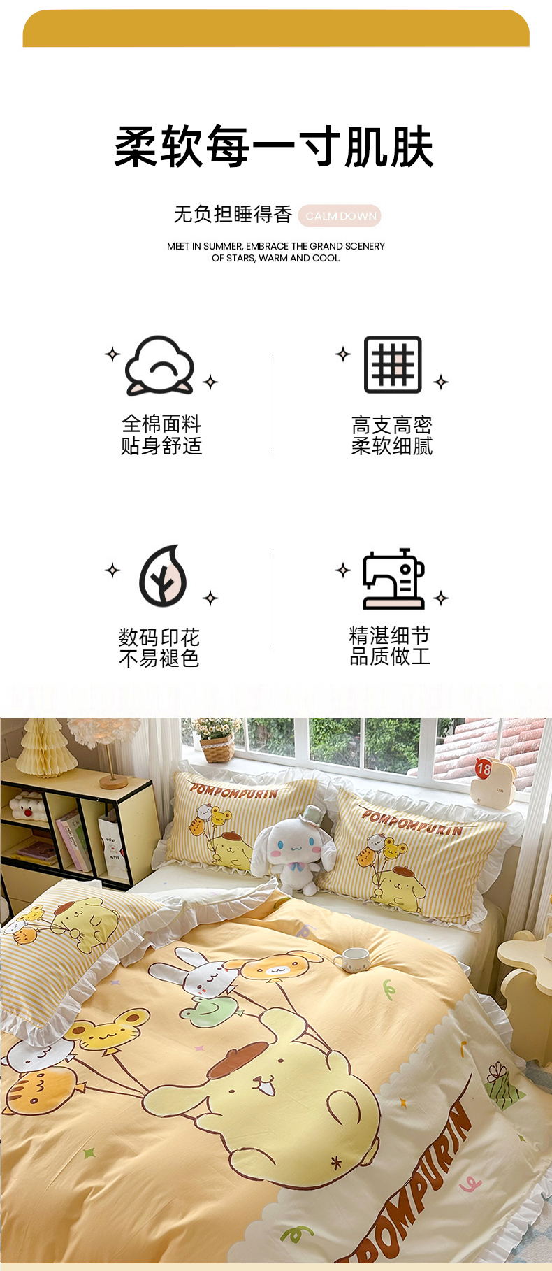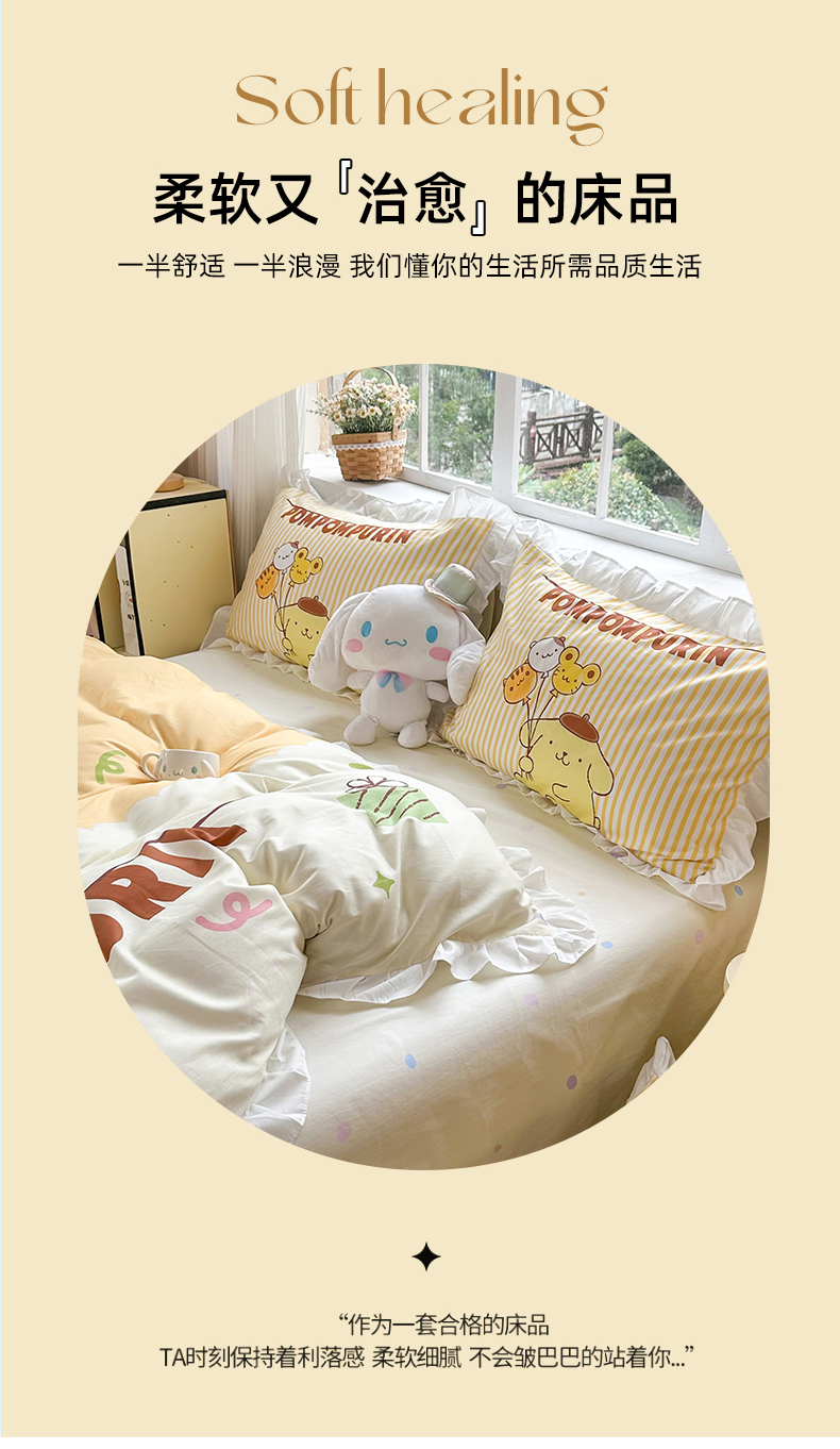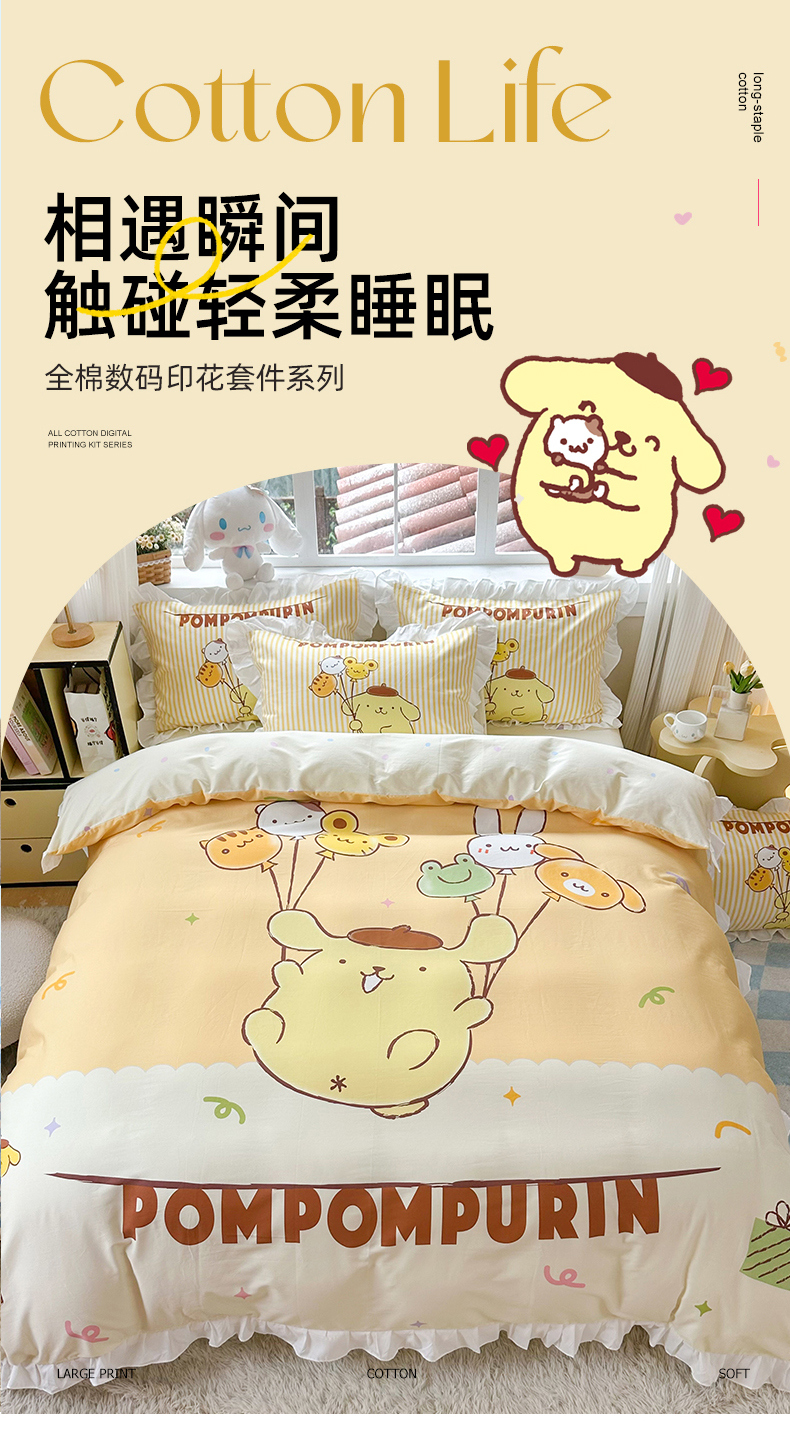当前位置: 91家纺网 > 商品网购 > 床品套件 > 四件套 > 全棉普通四件套 > 2025新款大版三丽鸥系列 纯棉床单全棉床裙学生三四件套 花边款 奶黄包布丁狗-白花边