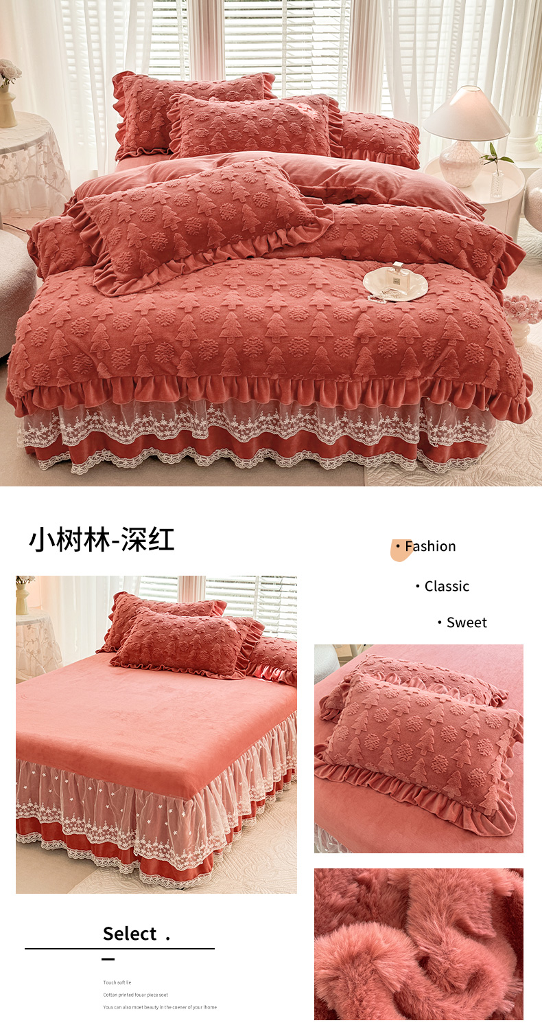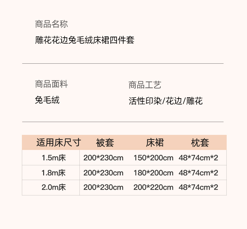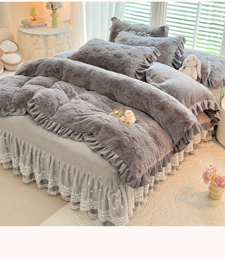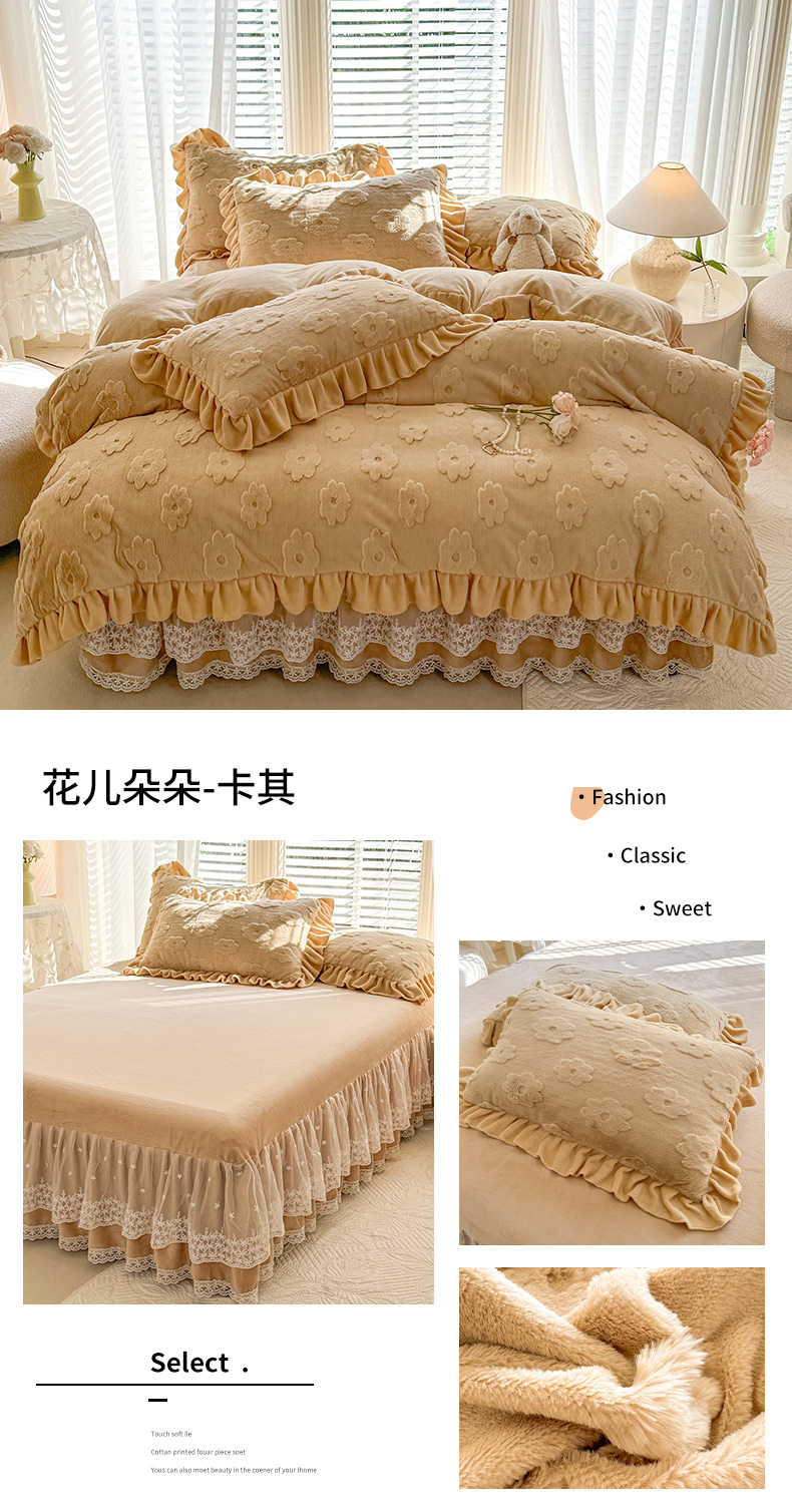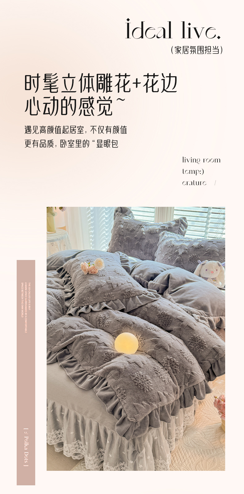 商品名称:(总)唐人居 2025新款雕花花边兔毛绒床裙四件套
