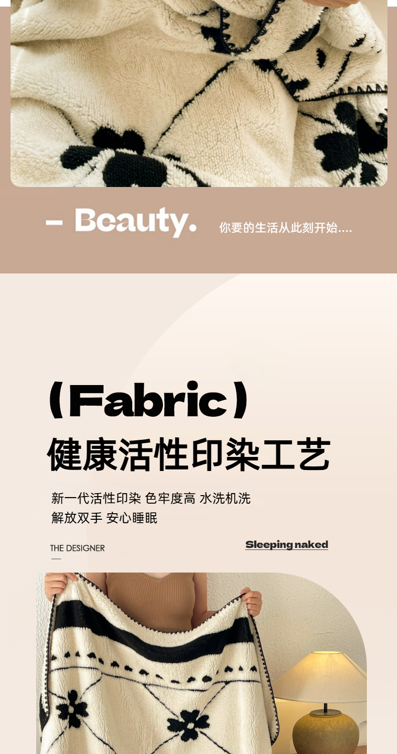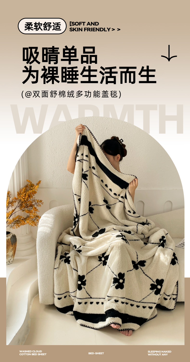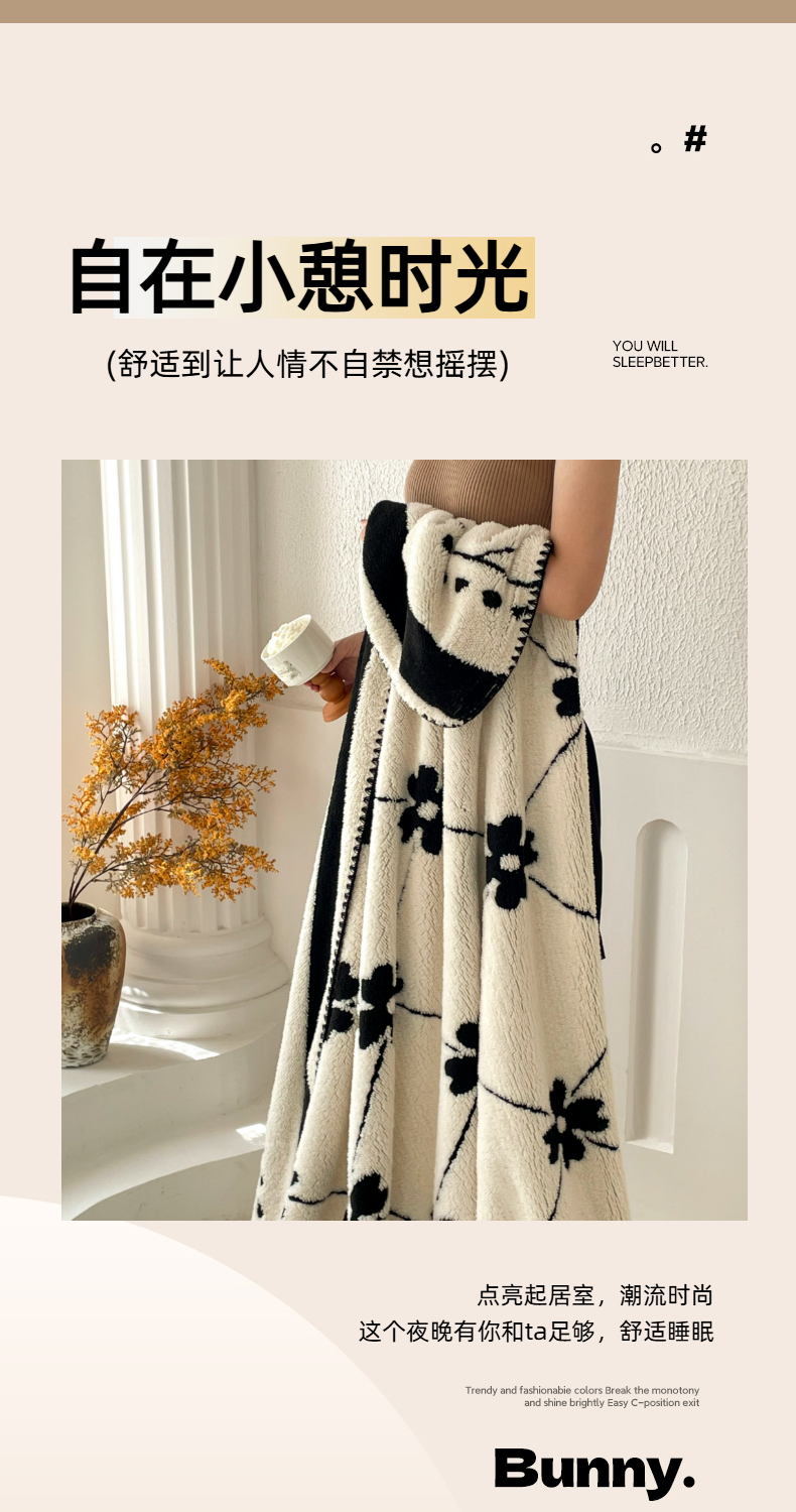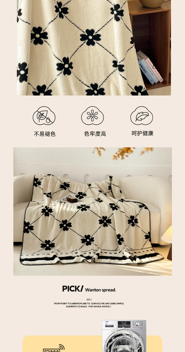 (总)晚爱家纺(原晚安家居) 2025新款跨境多功能盖毯沙发毯双面印花舒棉绒毛毯,波浪纹,黑蝴蝶,蝴蝶树,节节高,山茶花,四叶草,小布布,小熊猫