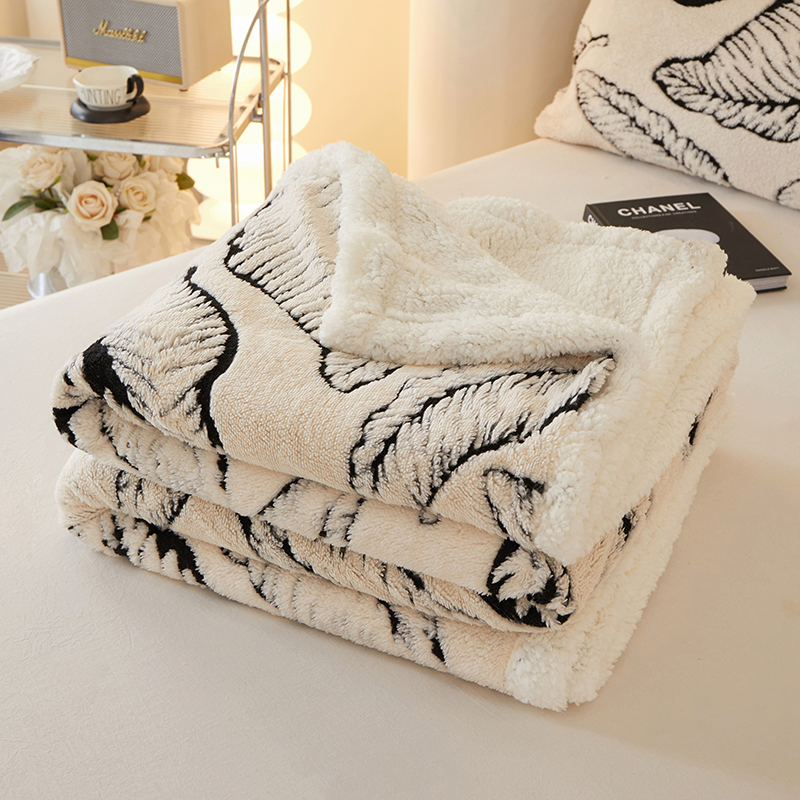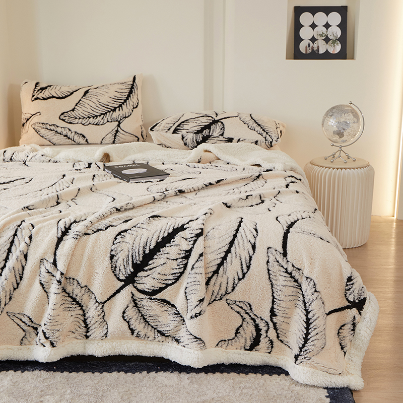 商品名称:楼兰公主 2025新款阳离子羊羔绒蕉叶绒毯双层毛毯毯子 蕉叶绒-咖