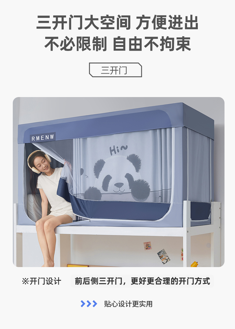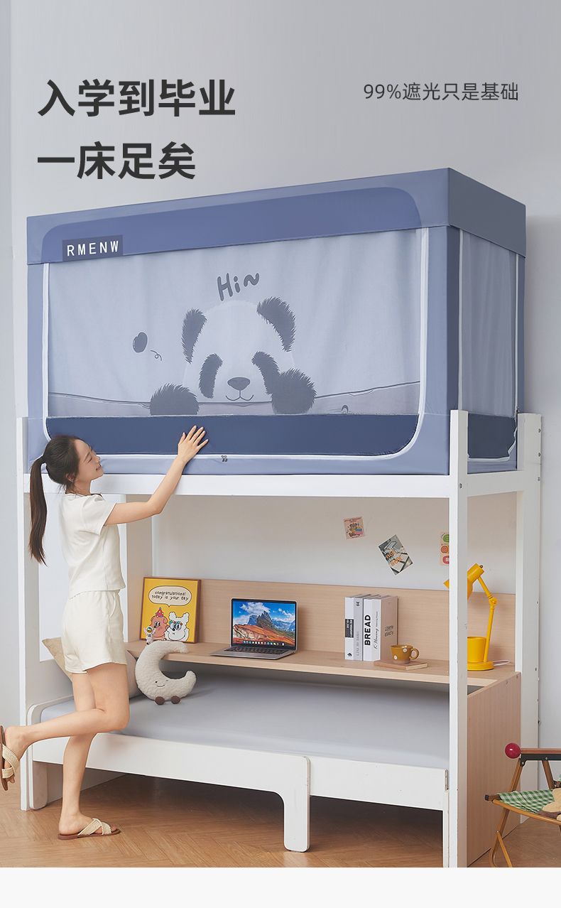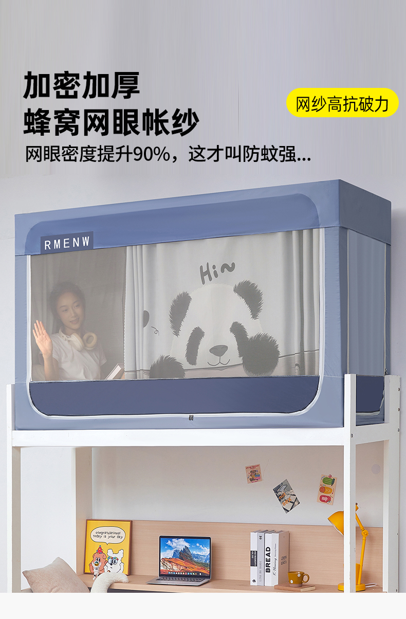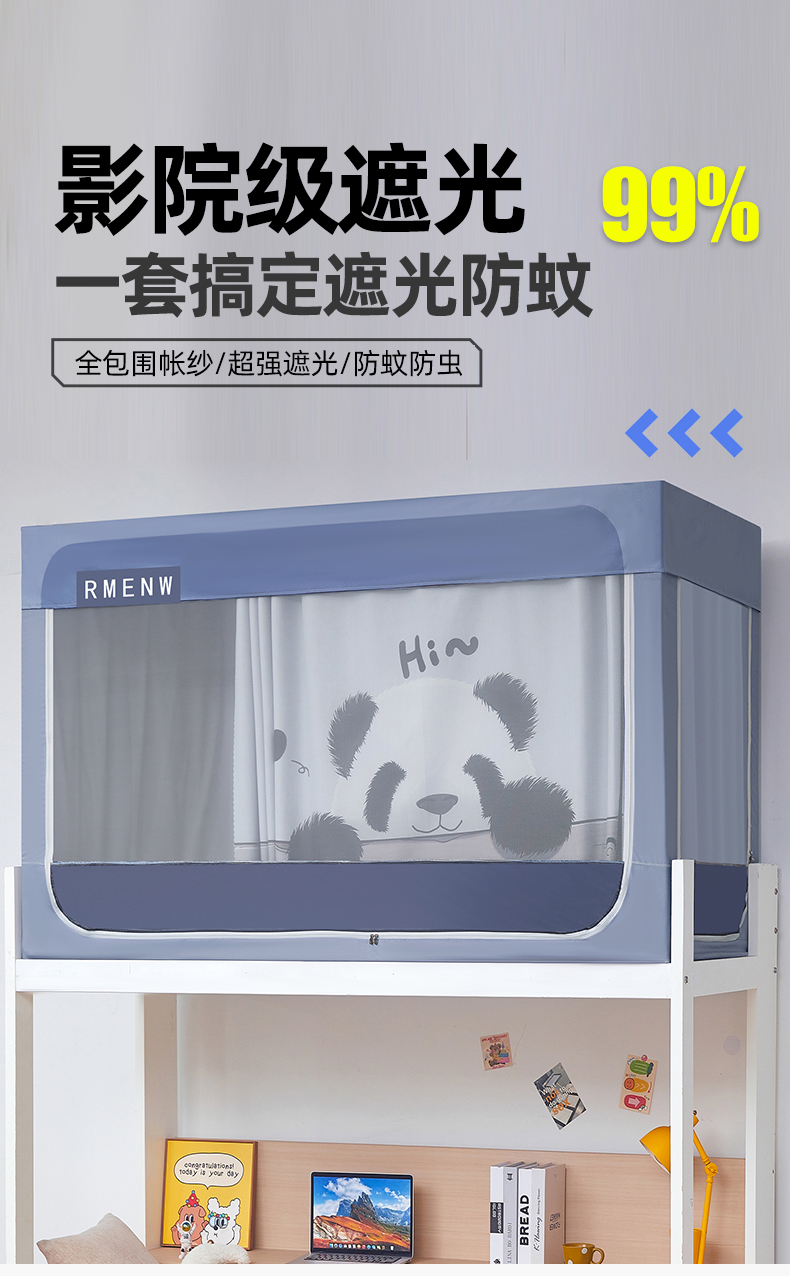 • 91家纺网 家纺一手货源 找家纺 星际优品 2025新款轻奢款学生一体式遮光蚊帐 星空灰-憨憨熊猫