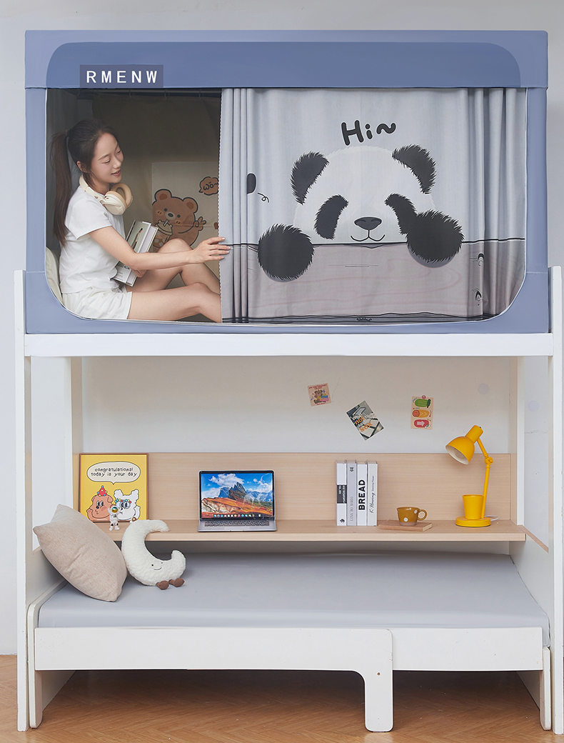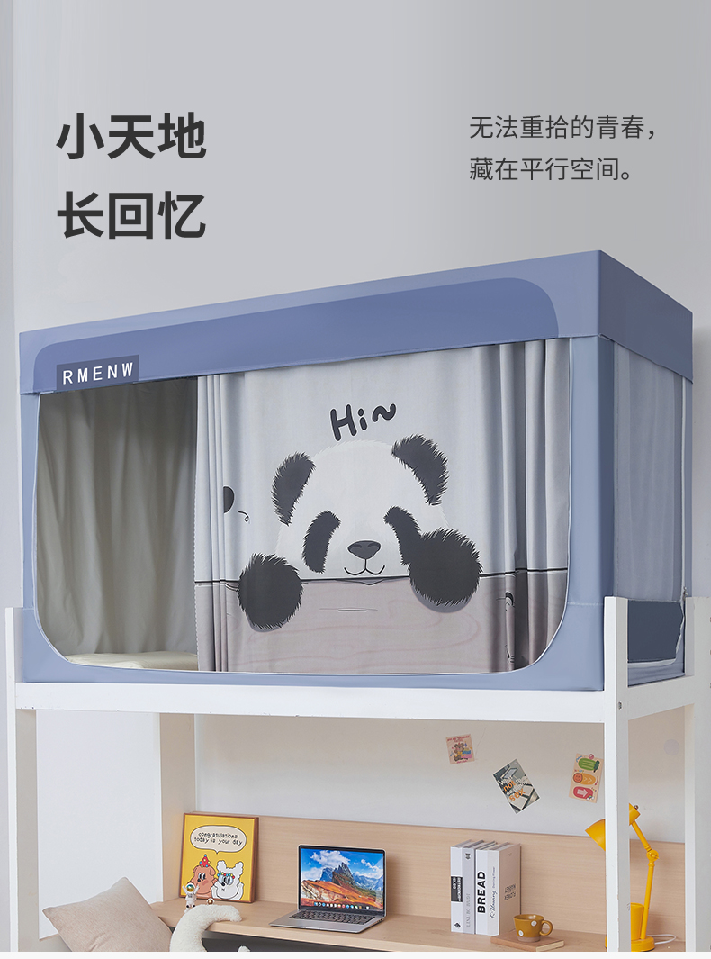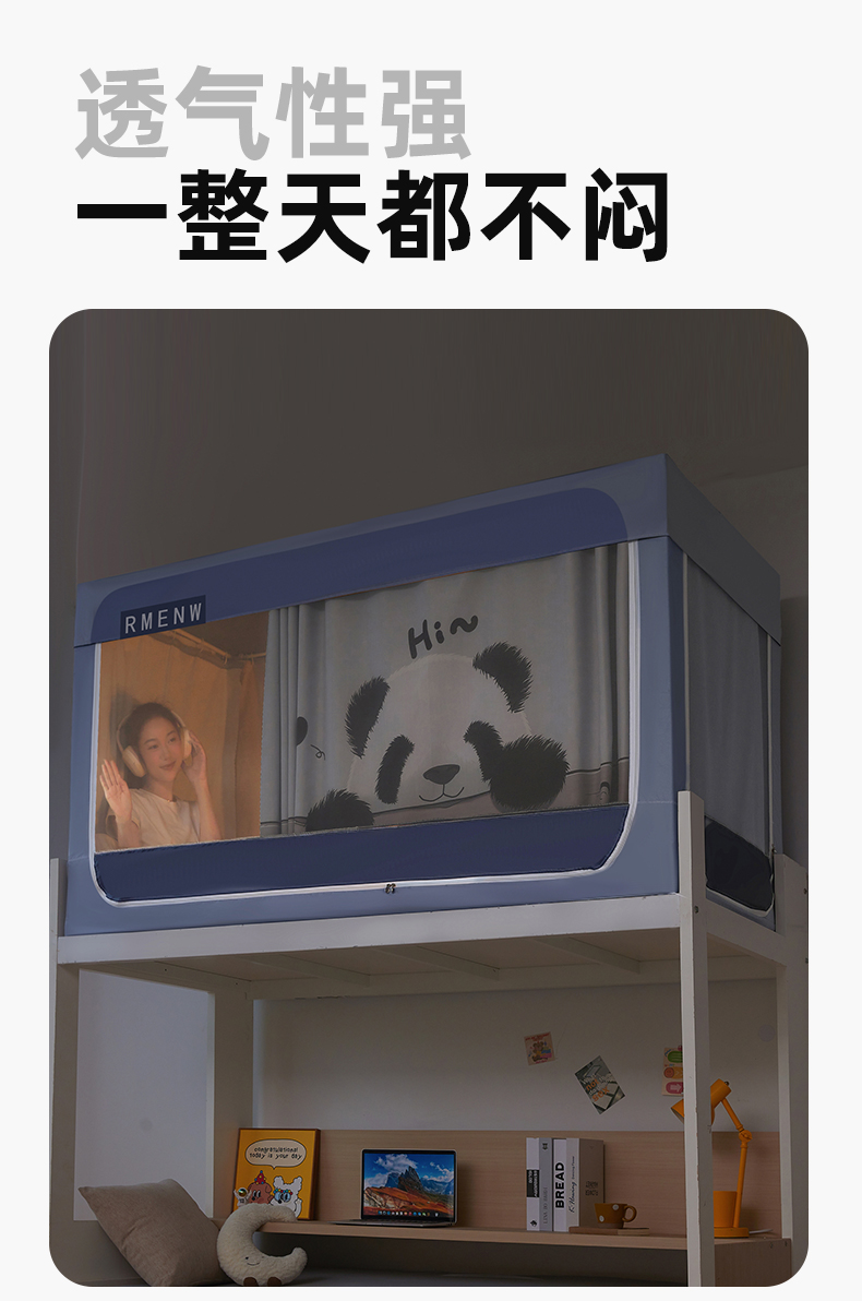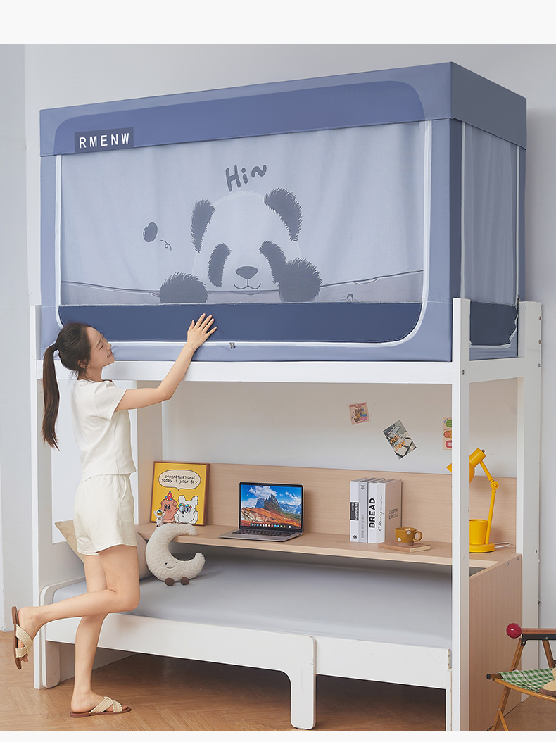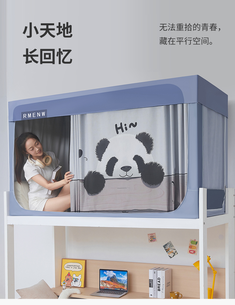 • 91家纺网 家纺一手货源 找家纺 星际优品 2025新款轻奢款学生一体式遮光蚊帐 星空灰-憨憨熊猫