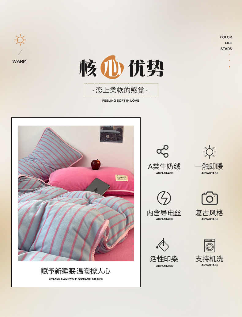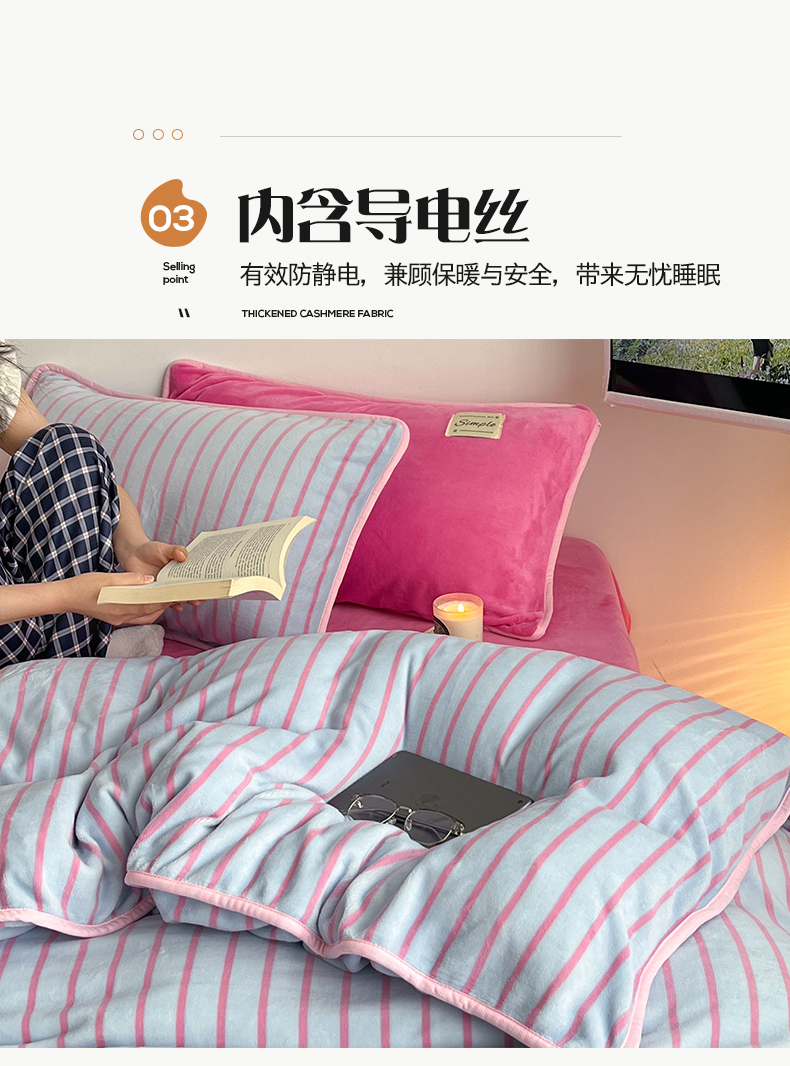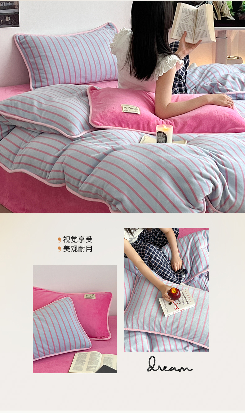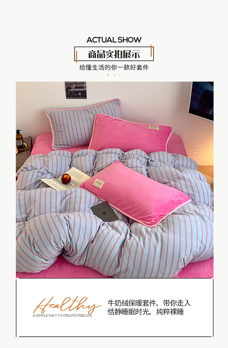 当前位置: 91家纺网 > 商品网购 > 床品套件 > 四件套 > 牛奶绒四件套 > 桃子家居 2025新款A类ins复古条纹法式布列塔尼条纹简约撞色加厚牛奶绒系列四件套 绒-复古条纹玫蓝