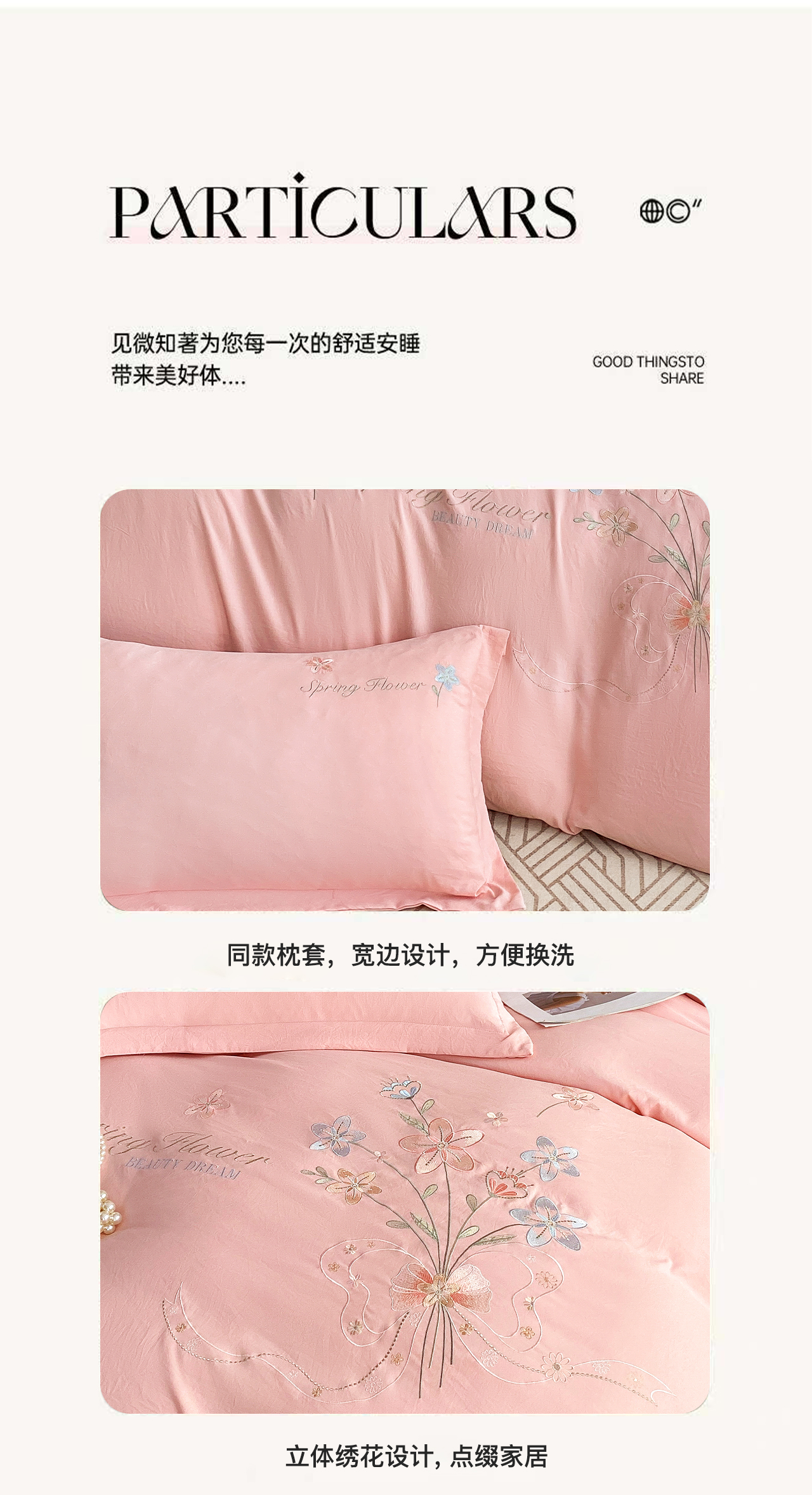 商品名称:大麦乐田 2025新款糯小棉立体绣花吊边四件套-手捧花 手捧花 香粉玉