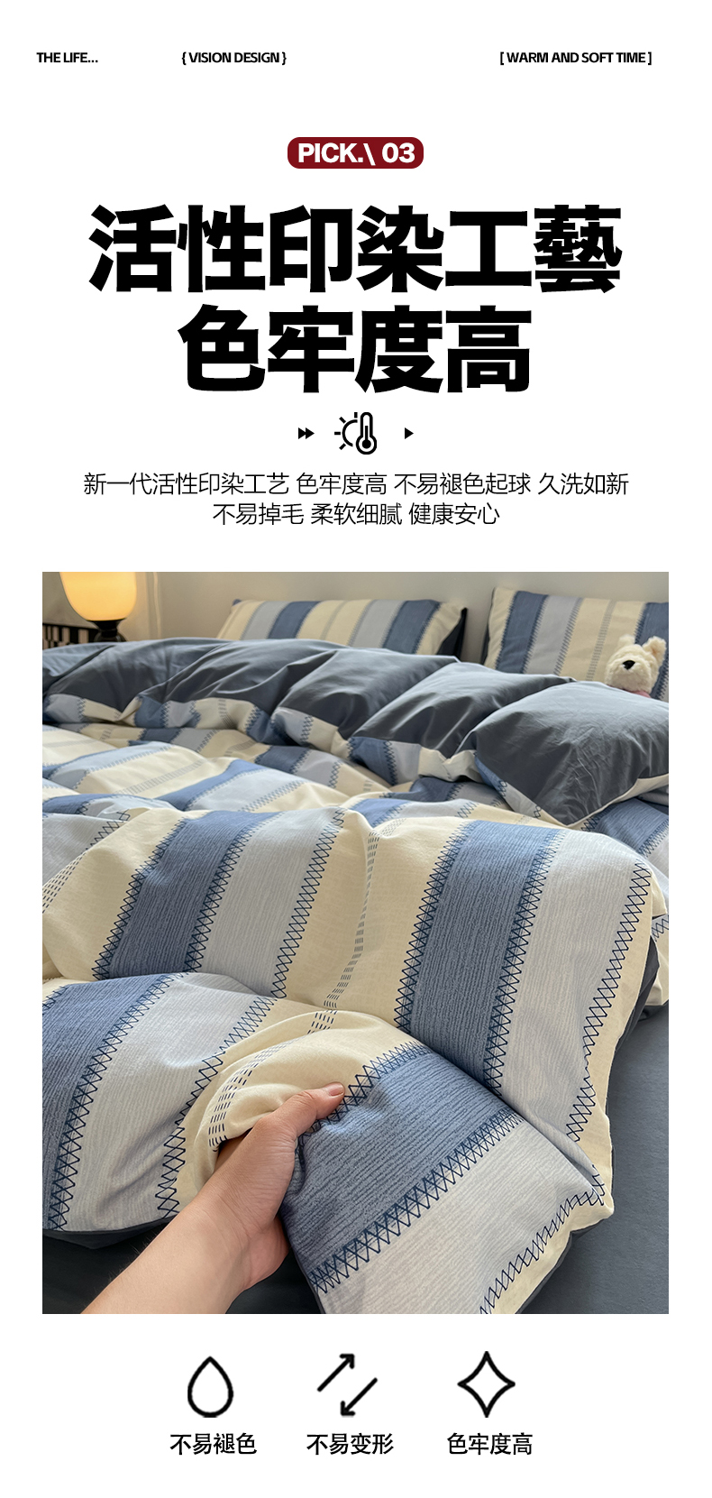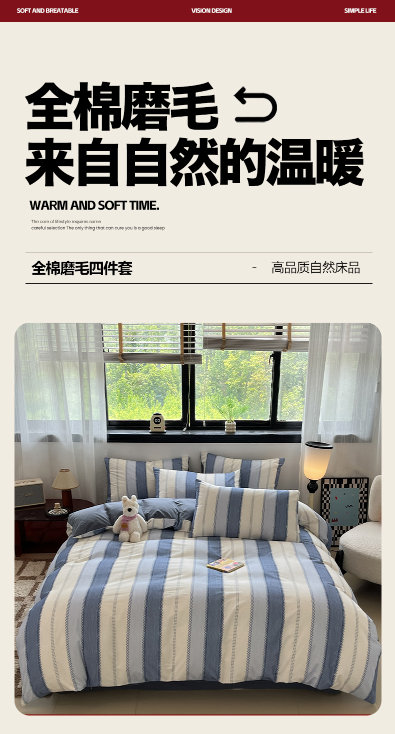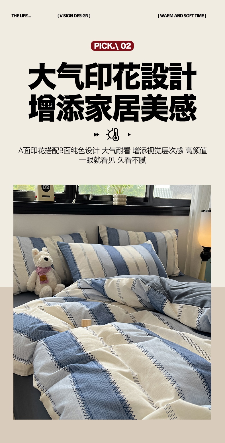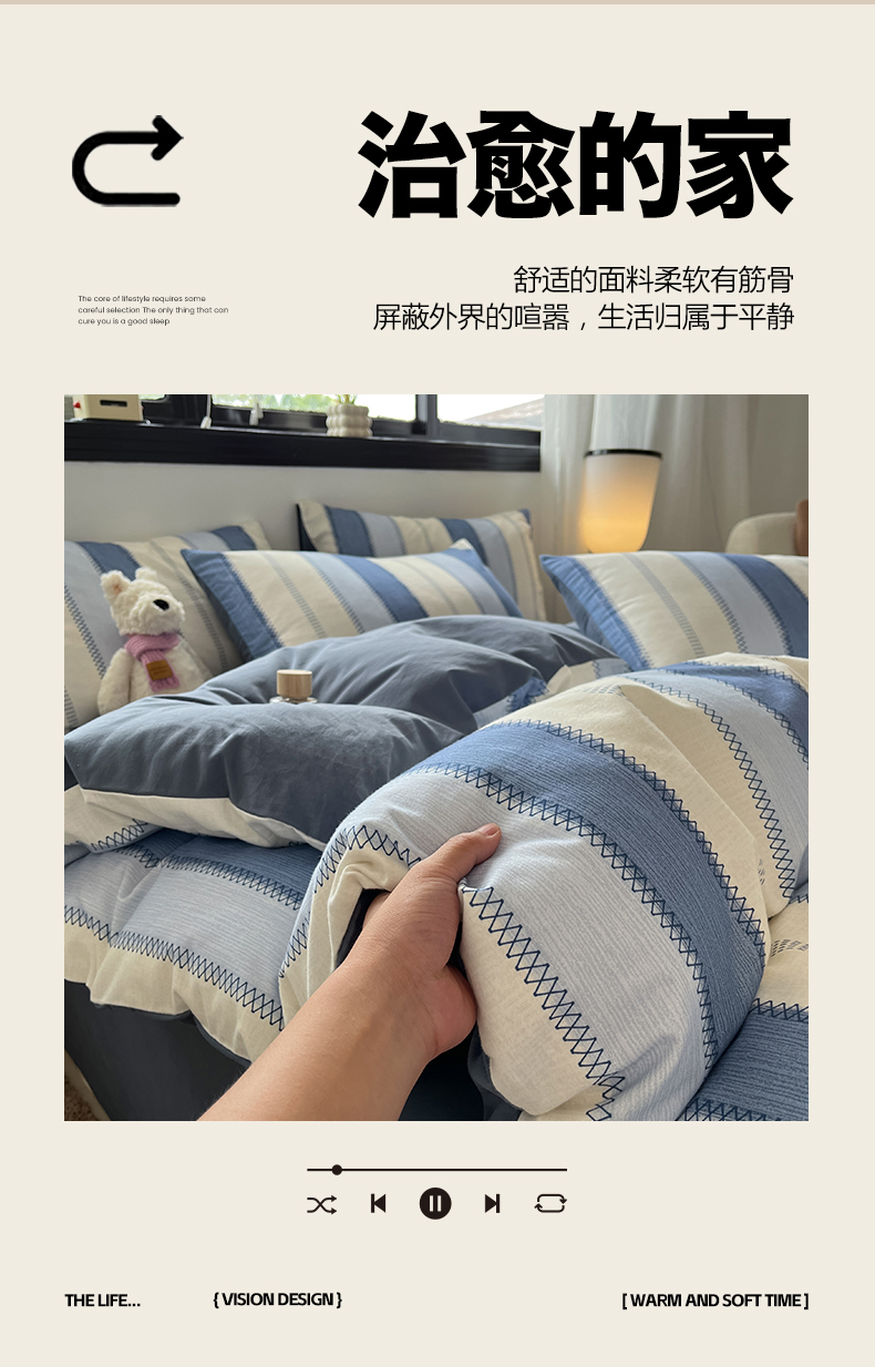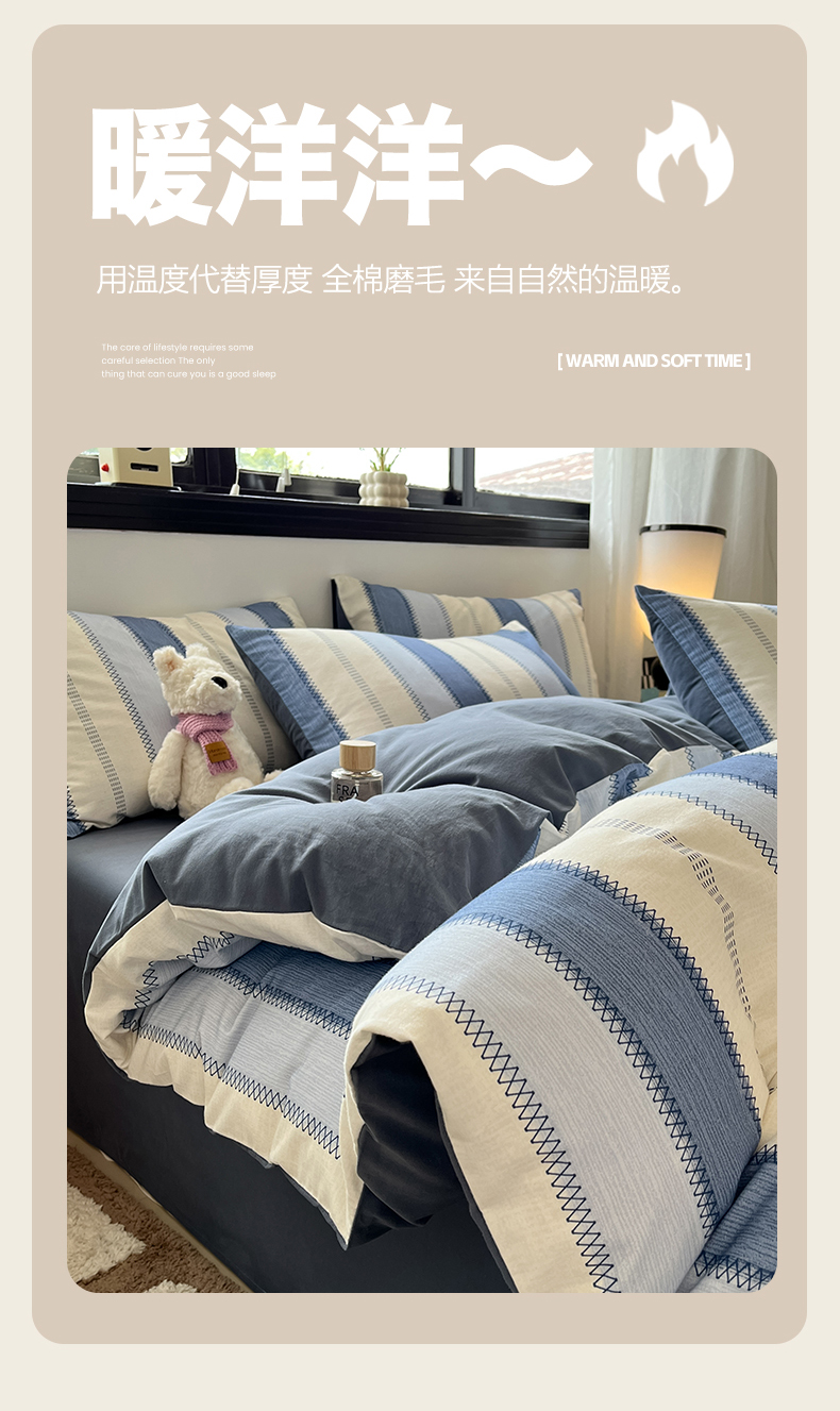 当前位置: 91家纺网 > 商品网购 > 床品套件 > 四件套 > 全棉普通四件套 > 吉象家纺 2025新款全棉纯棉加厚磨毛印花四件套 蓝颜
