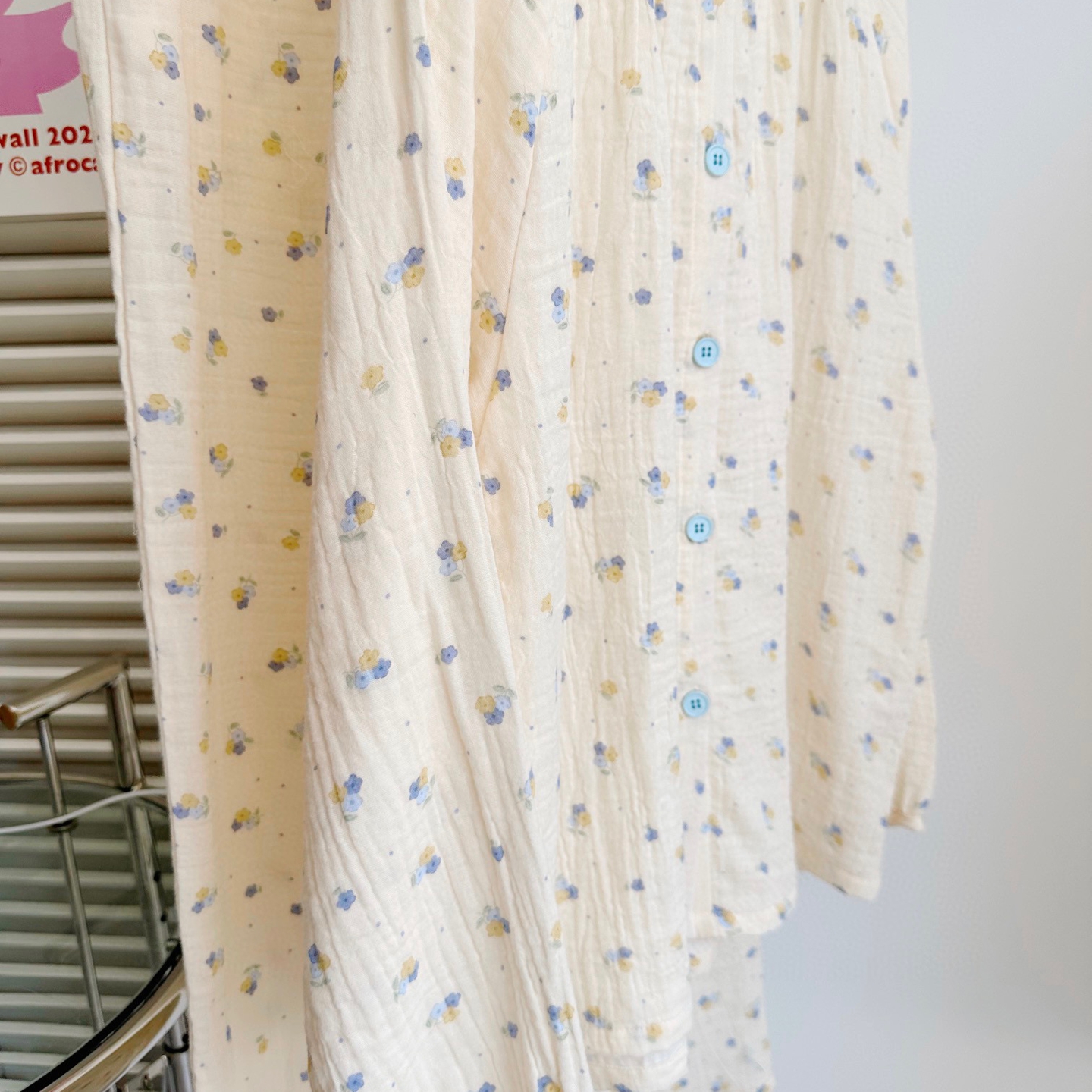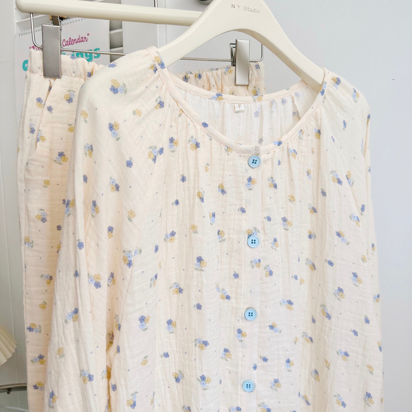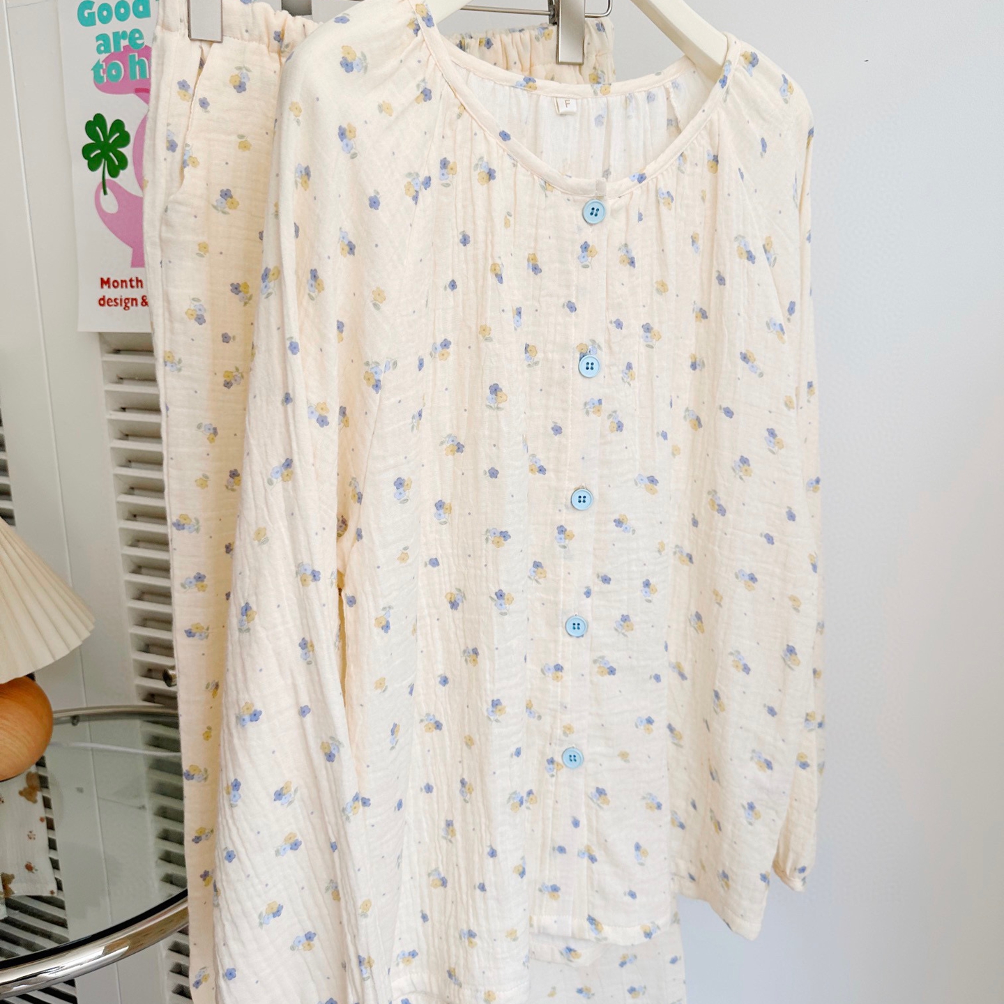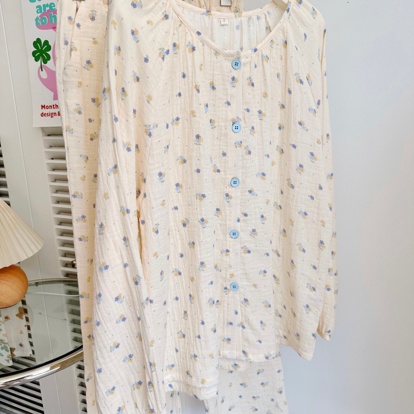 当前位置: 91家纺网 > 商品网购 > 居家日用 > 睡衣/家居服套装 > 纽约生活 2025新款绉布圆领开扣长袖长裤(会员-5) 蓝碎花
