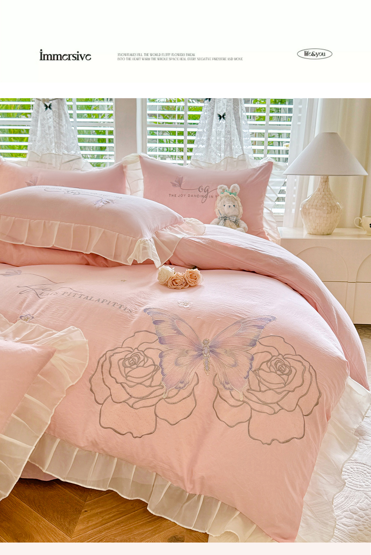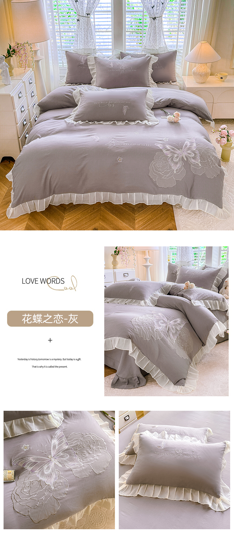 当前位置: 91家纺网 > 商品网购 > 床品套件 > 四件套 > 其它四件套 > 大麦乐田 2025新款法式少女心水洗公主风贴布绣蕾丝花边四件套 花蝶之恋-浅兰