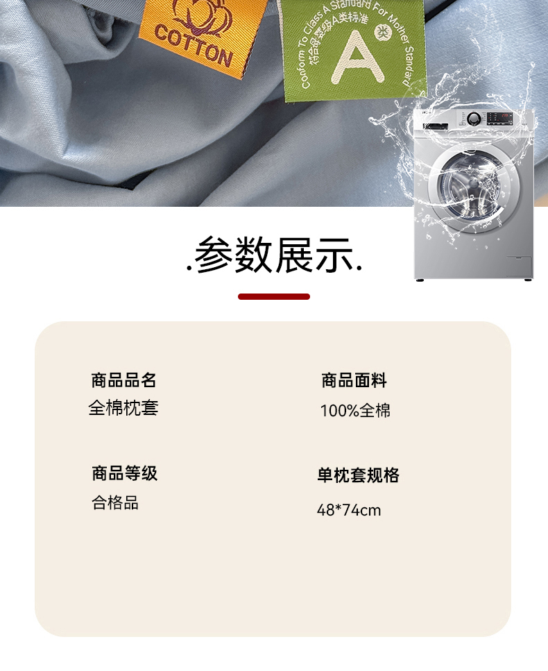 全棉枕套48x74cm/只