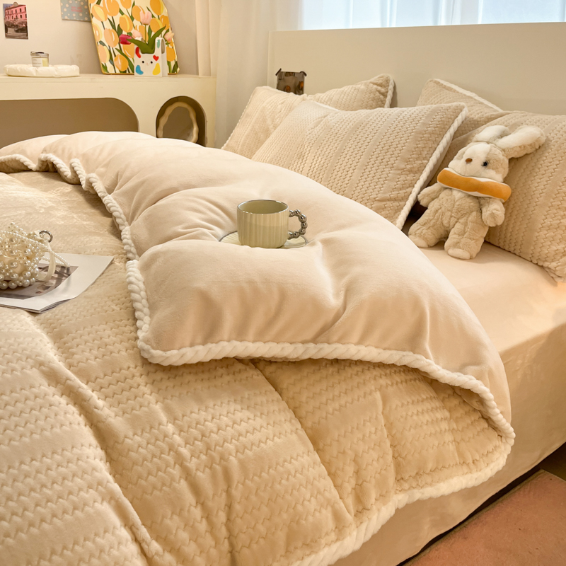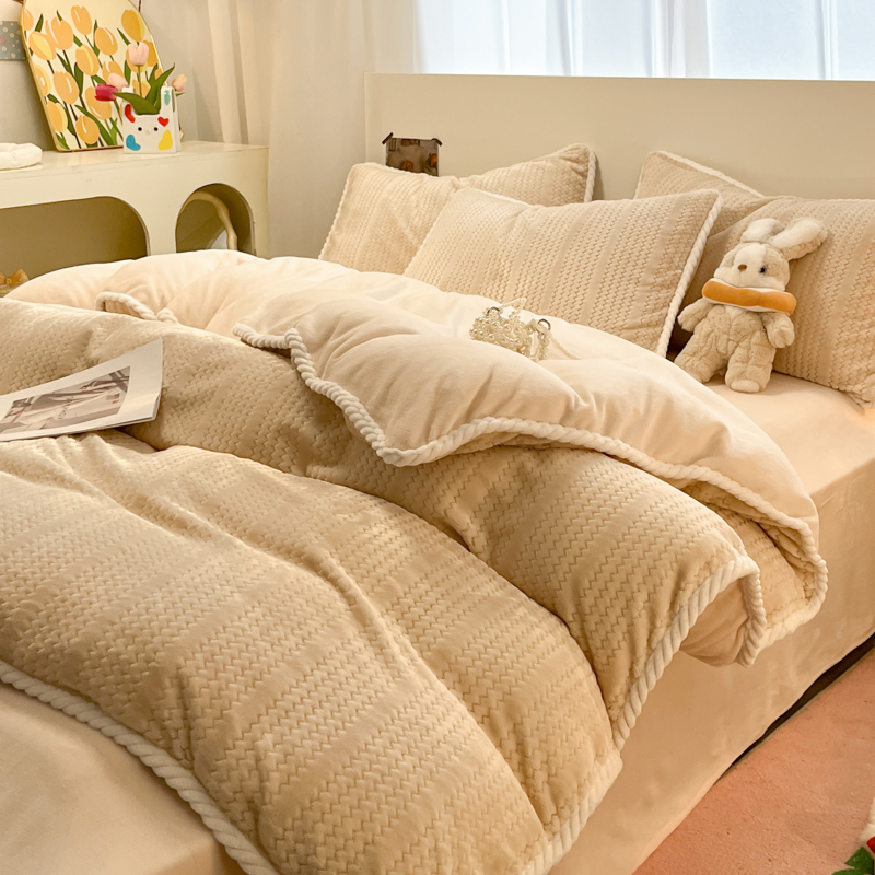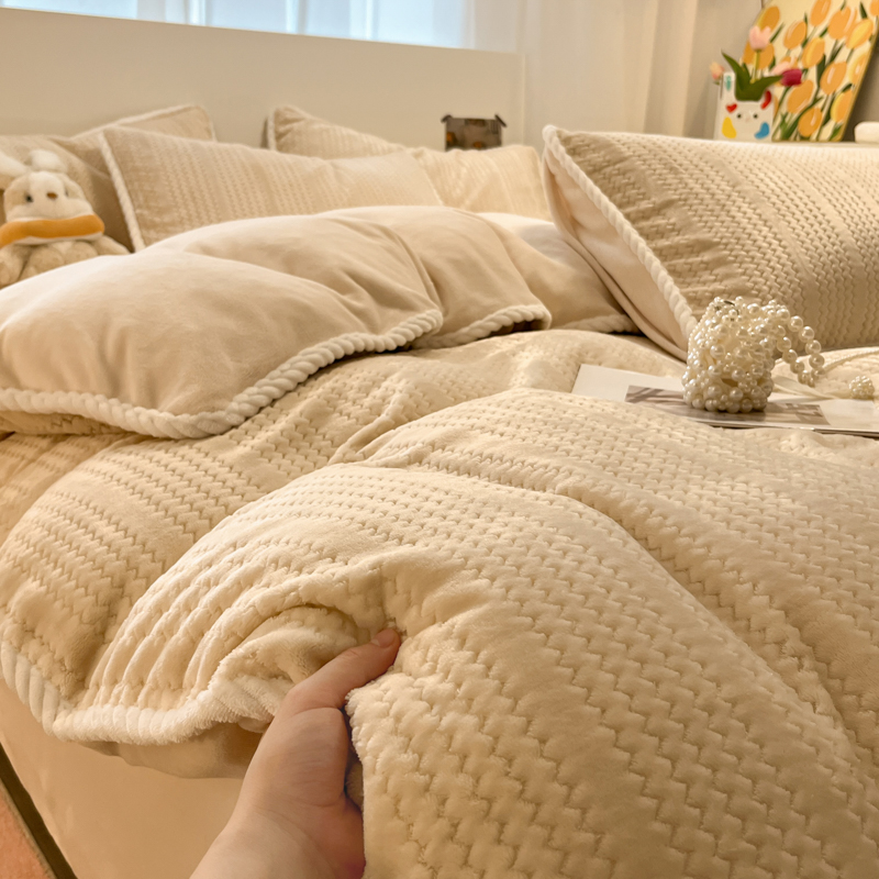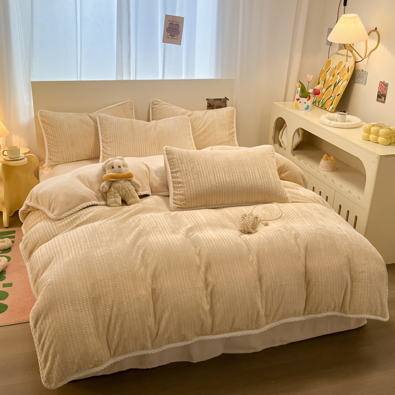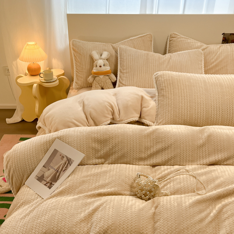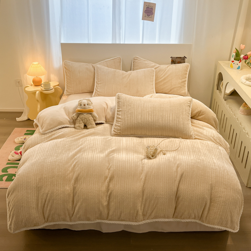 当前位置: 91家纺网 > 商品网购 > 床品套件 > 四件套 > 牛奶绒四件套 > 蓝极人 2025新款成品提花包边牛奶绒四件套 提花-米杏