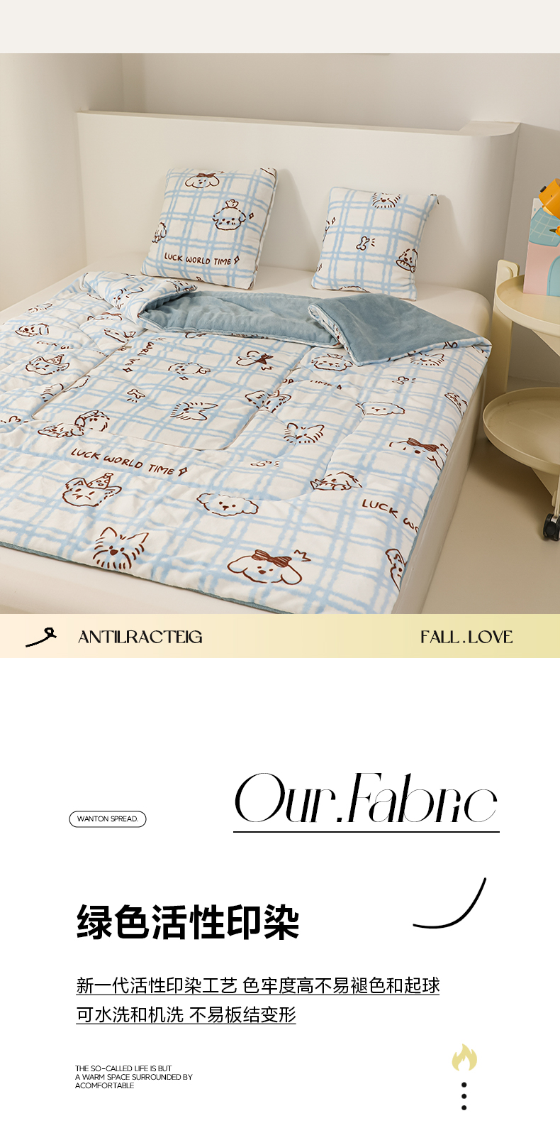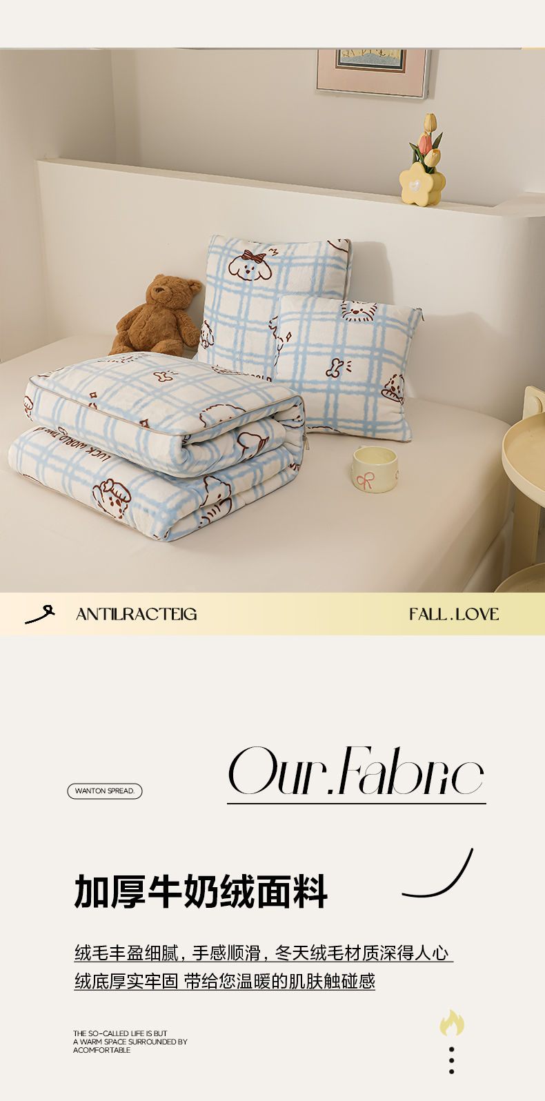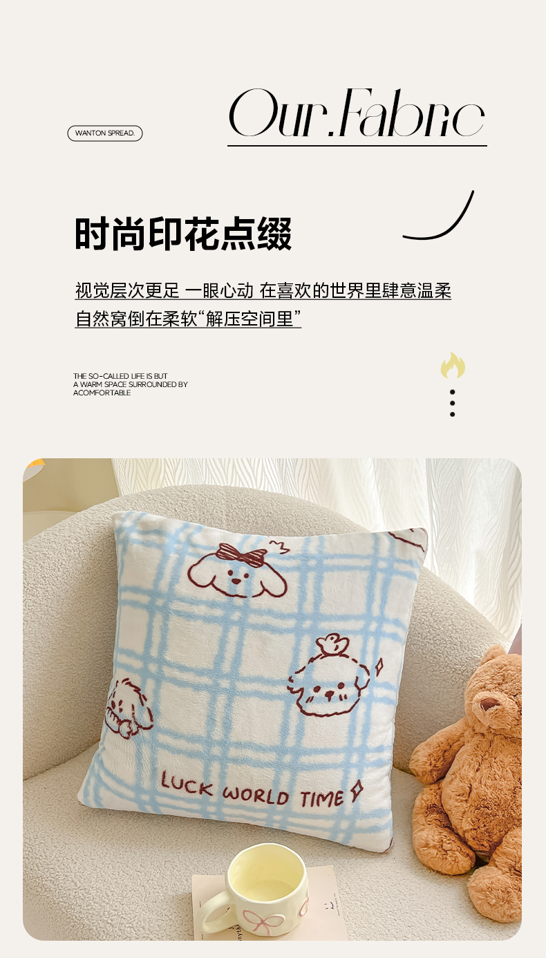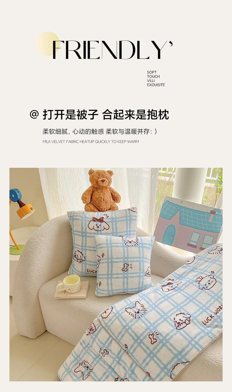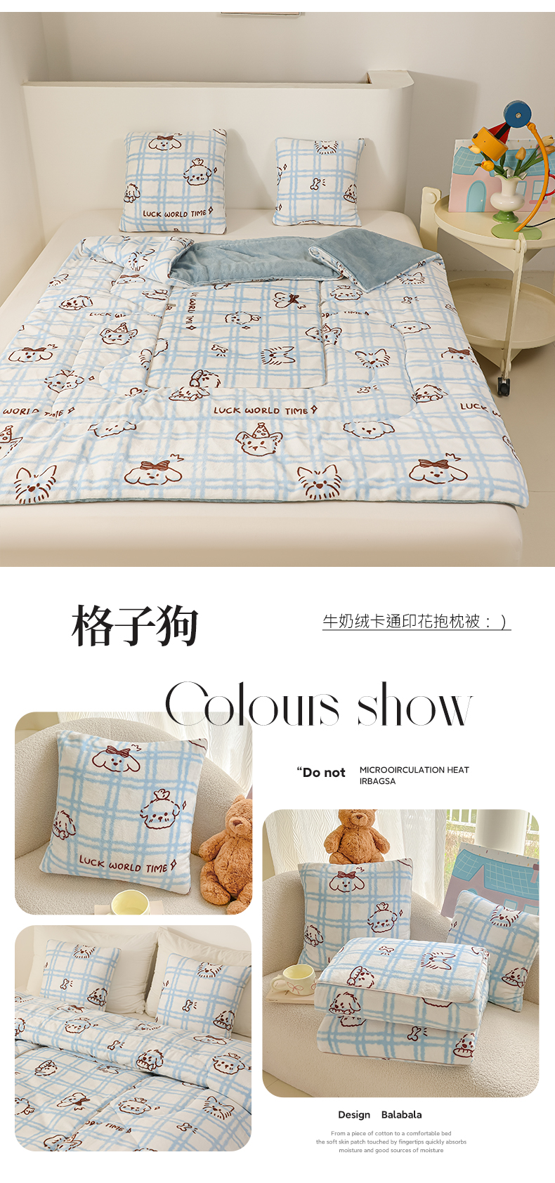 商品名称:番茄+ 2025新款牛奶绒卡通印花抱枕被 格子狗