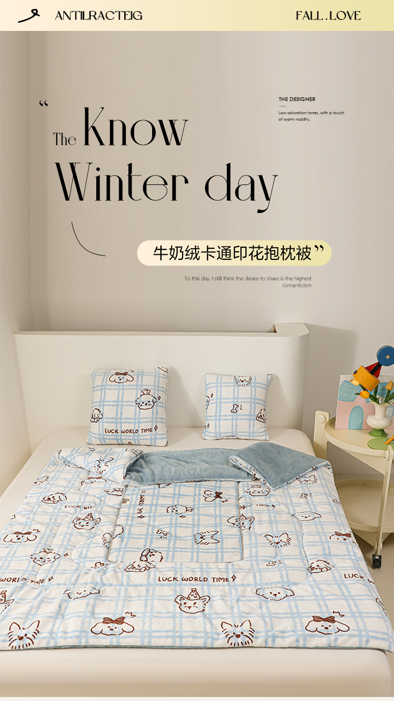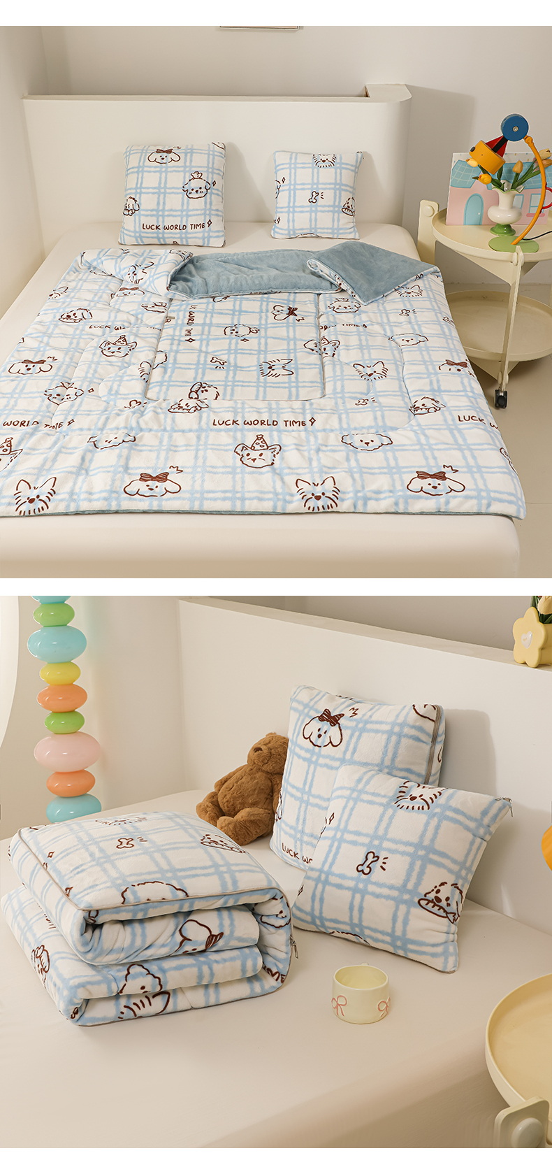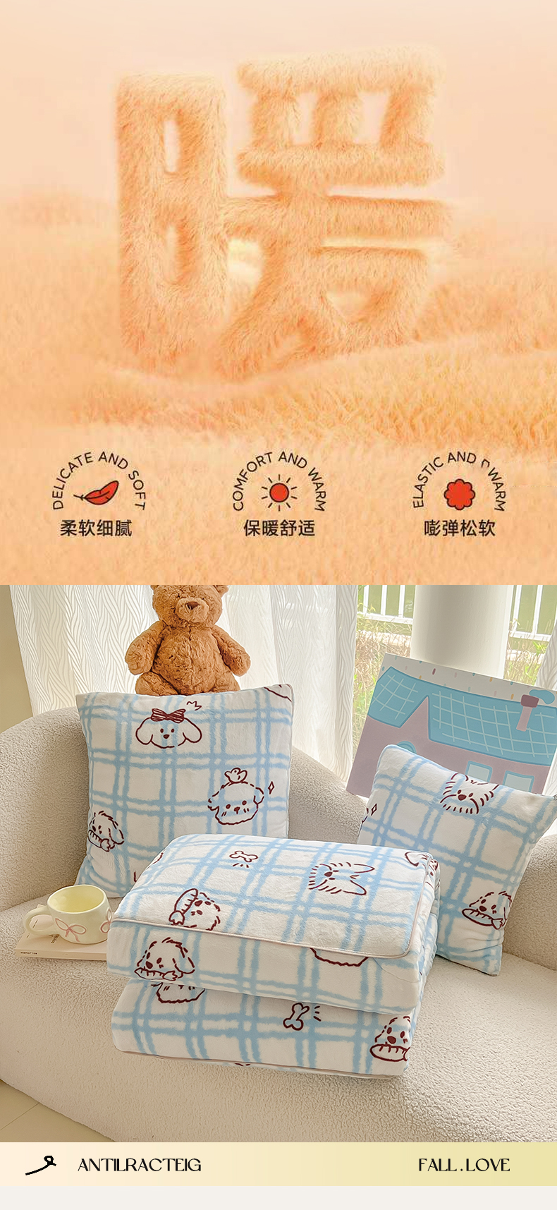 番茄+ 2025新款牛奶绒卡通印花抱枕被 格子狗