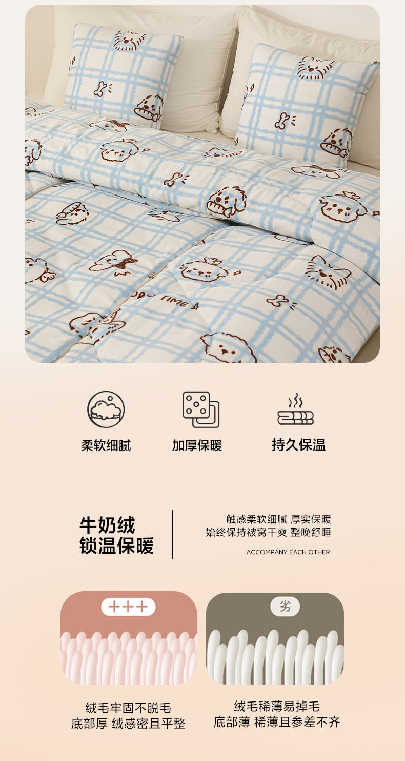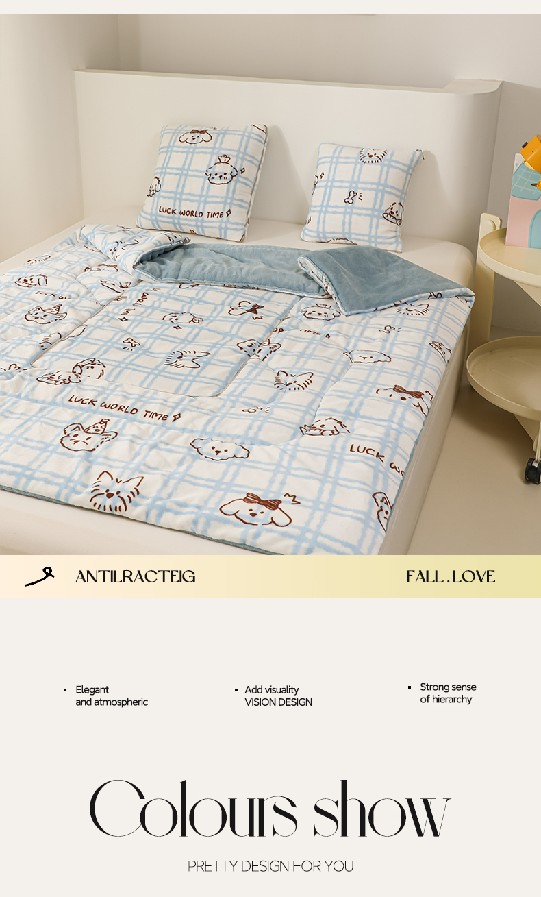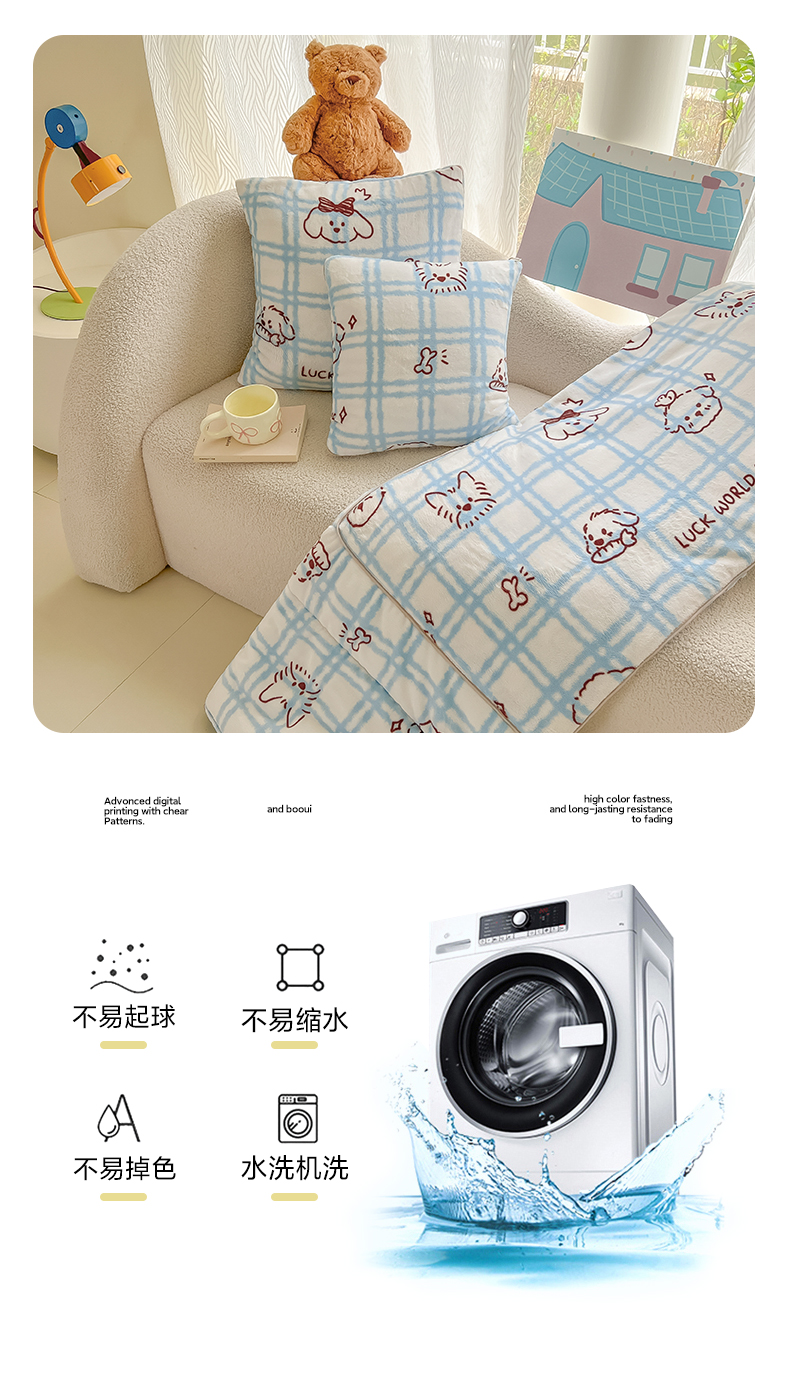 番茄+ 2025新款牛奶绒卡通印花抱枕被 格子狗