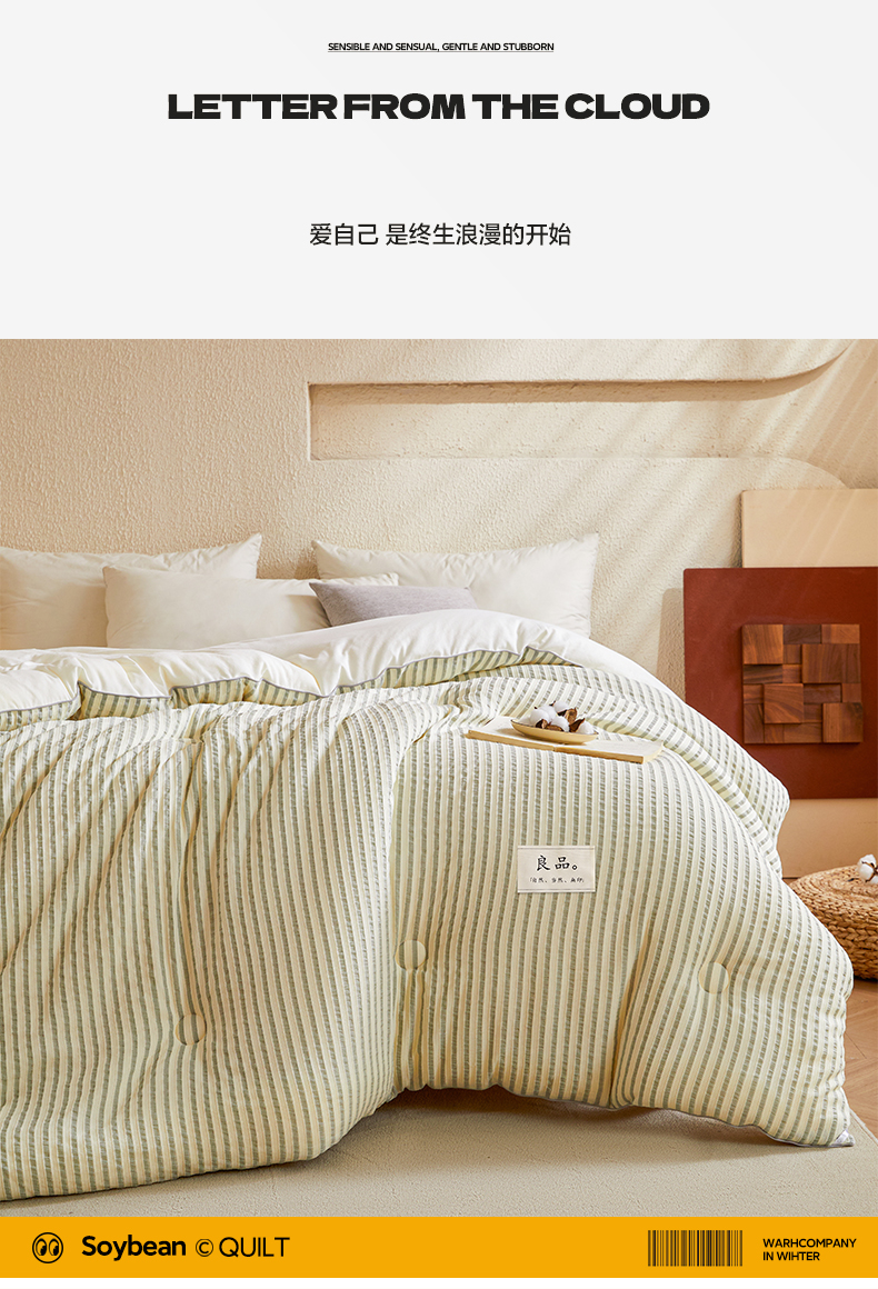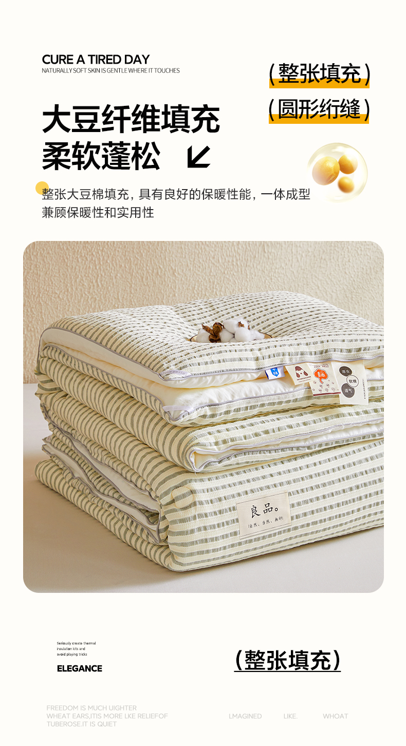 • 91家纺网 家纺一手货源 找家纺 金喜家居 2025秋冬新款色织提花大豆被学生被被子被芯春秋被冬被 豆绿