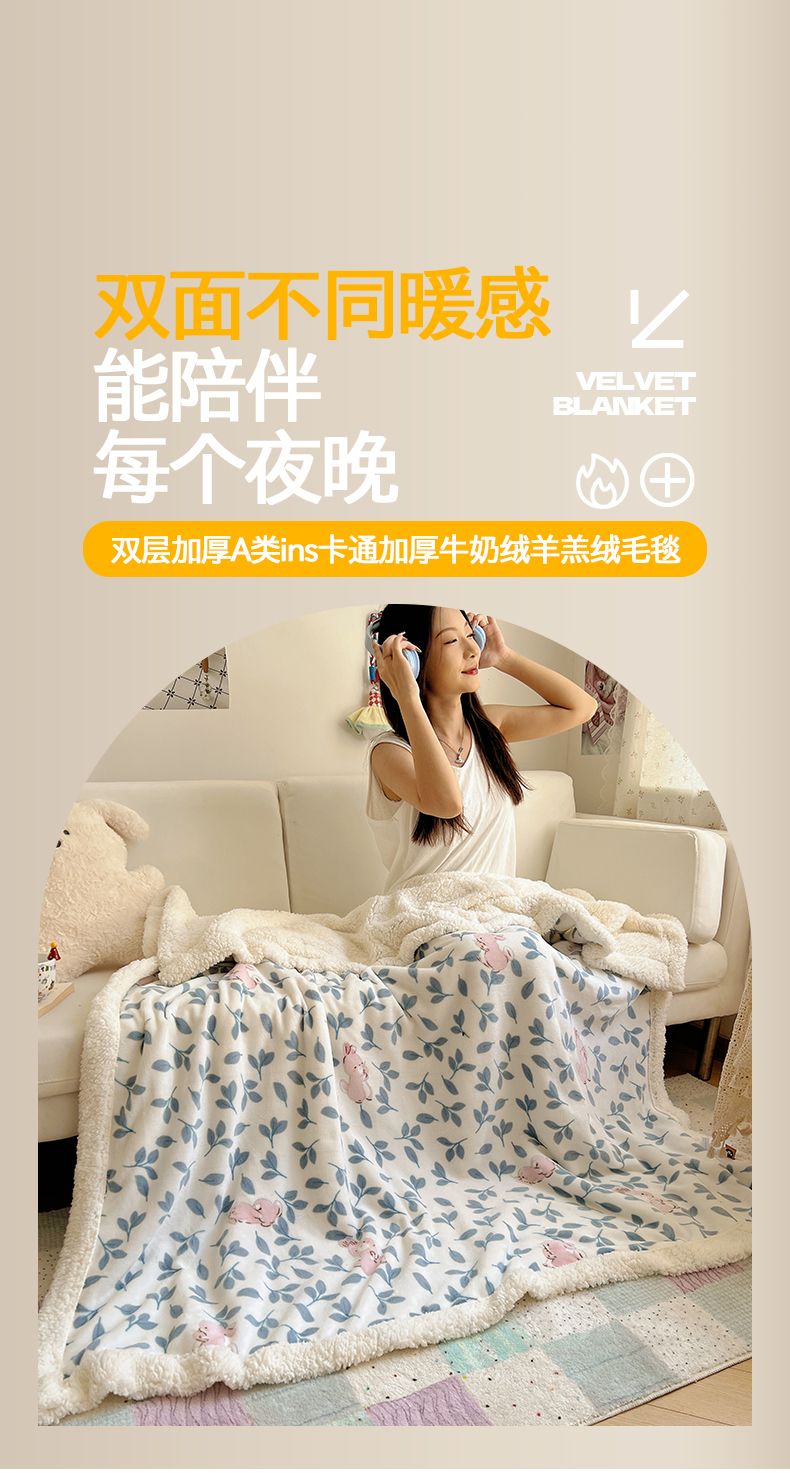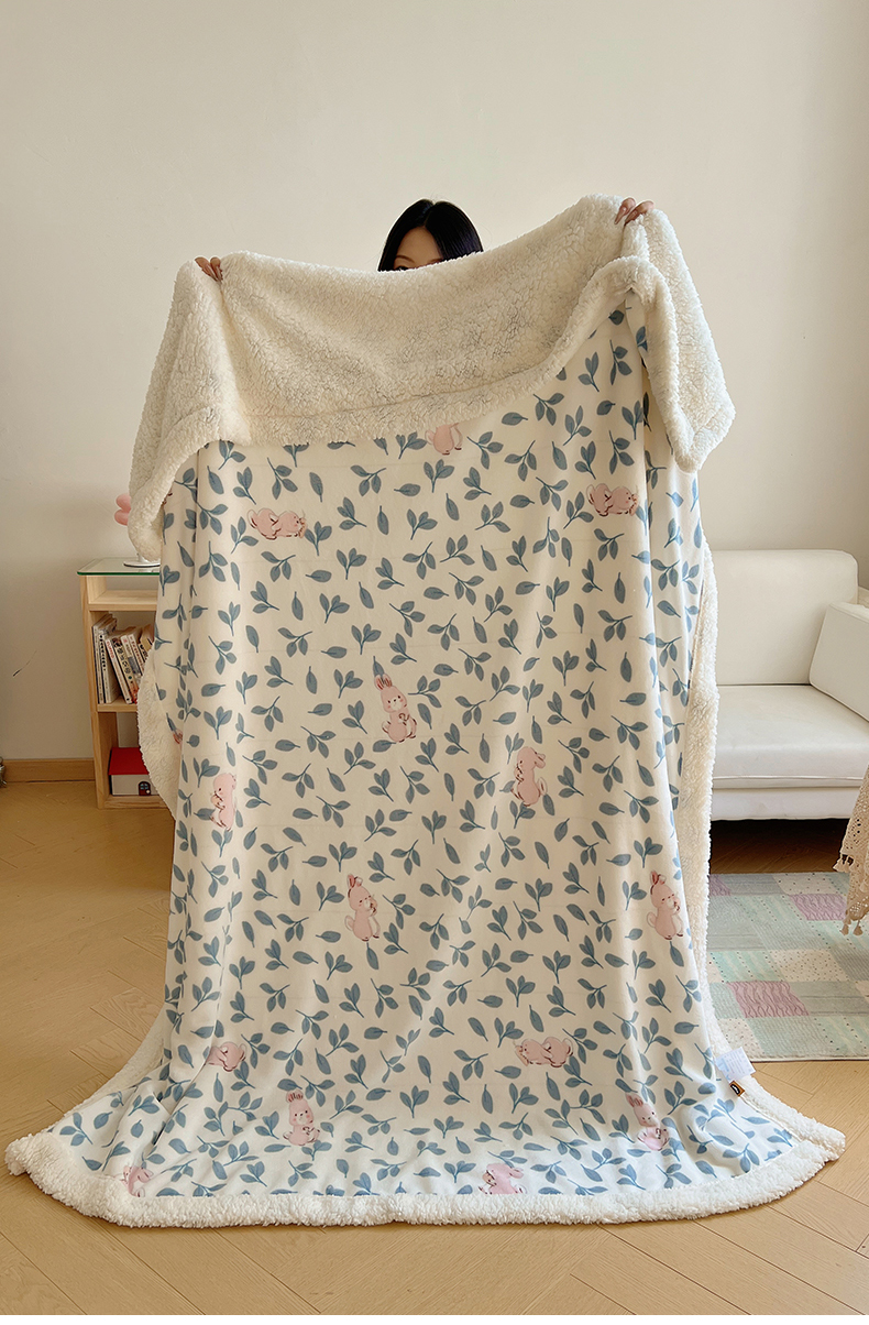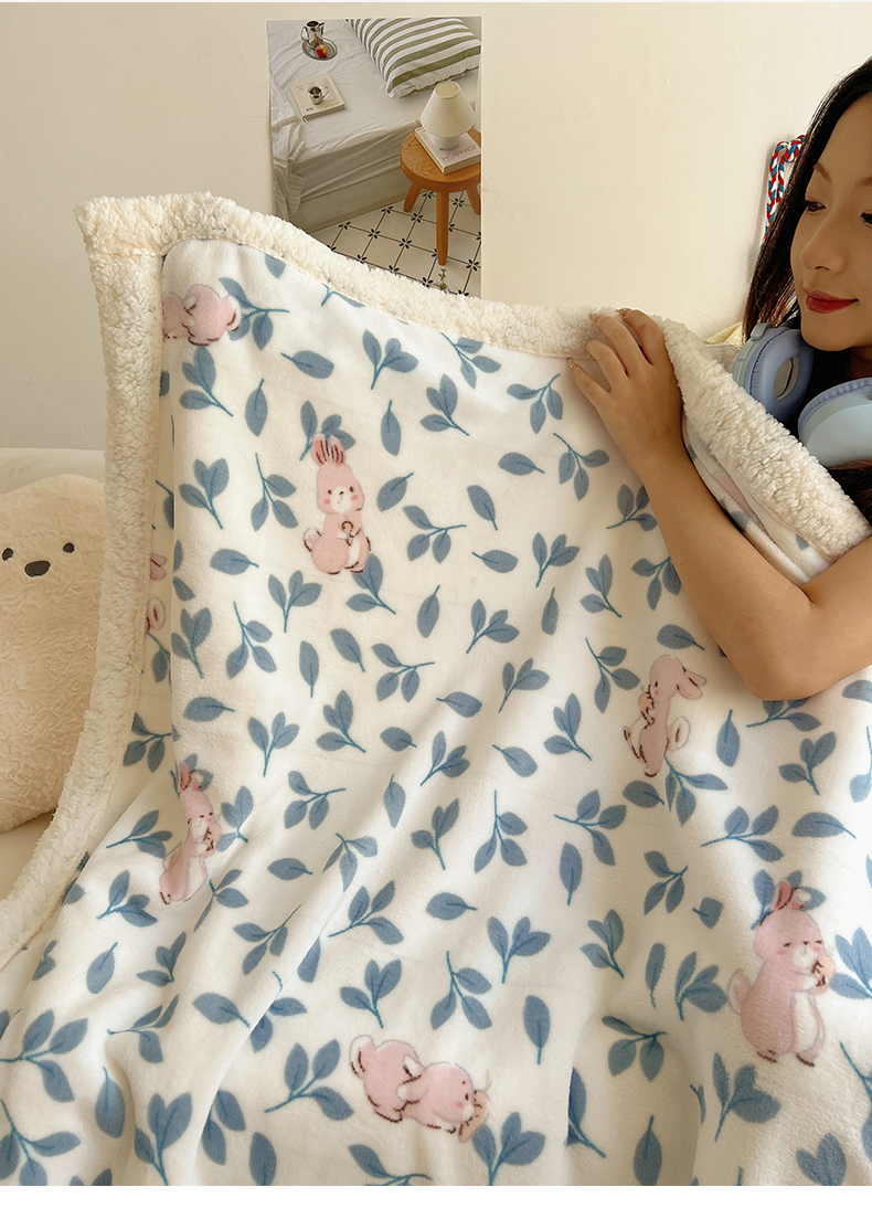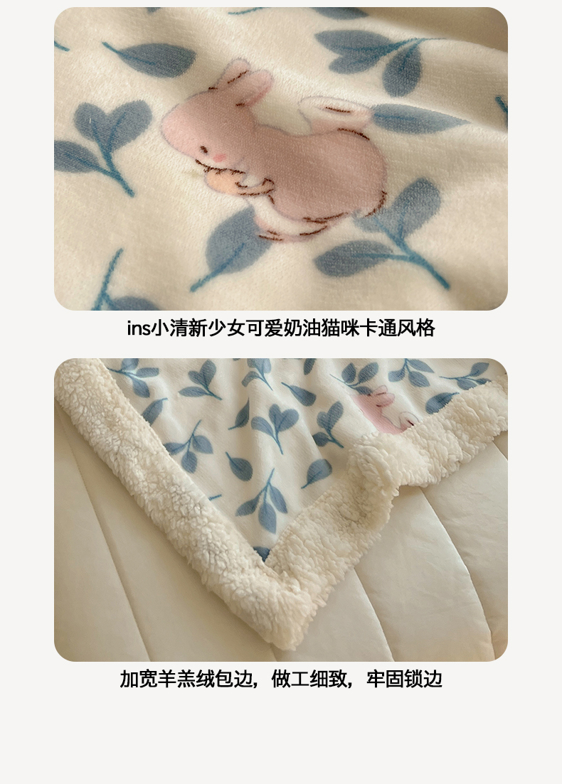 商品名称:桃子家居 2025新款A类ins小清新少女可爱奶油猫咪卡通加厚牛奶绒羊羔绒毛毯多功能毛毯 绒毛毯-MT可可兔