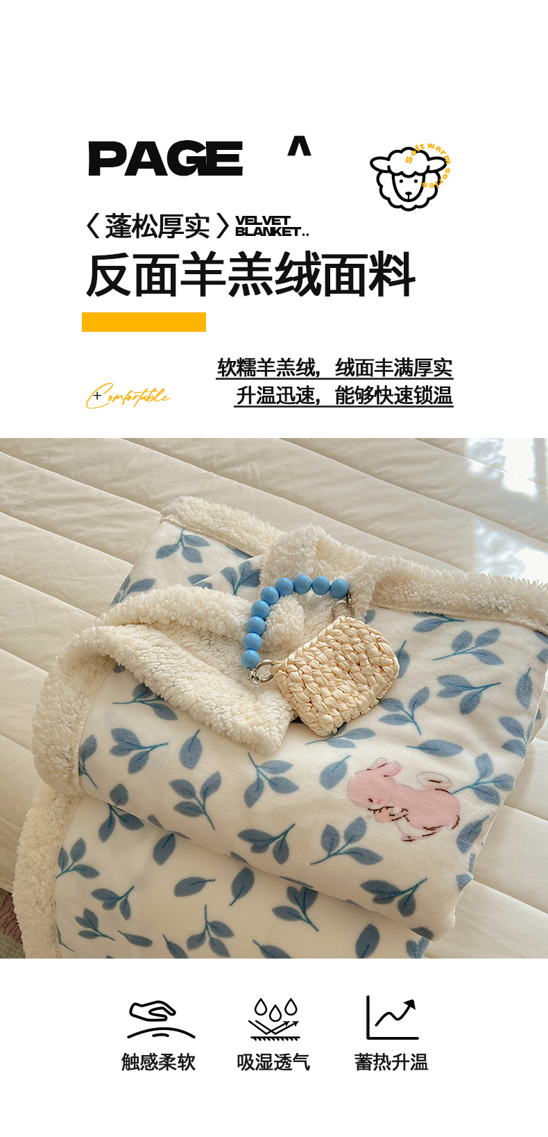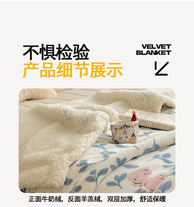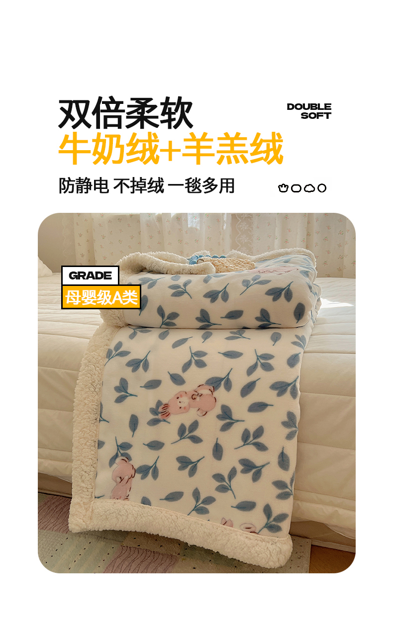 商品名称:桃子家居 2025新款A类ins小清新少女可爱奶油猫咪卡通加厚牛奶绒羊羔绒毛毯多功能毛毯 绒毛毯-MT可可兔