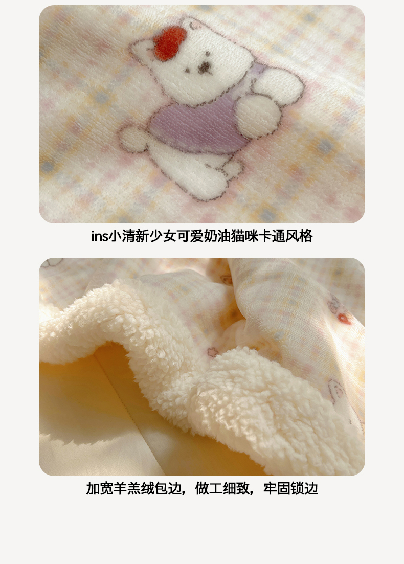 当前位置: 91家纺网 > 商品网购 > 毛毯休闲毯绒毯 > 毛毯 > 桃子家居 2025新款A类ins小清新少女可爱奶油猫咪卡通加厚牛奶绒羊羔绒毛毯多功能毛毯 绒毛毯-MT甜心西高地