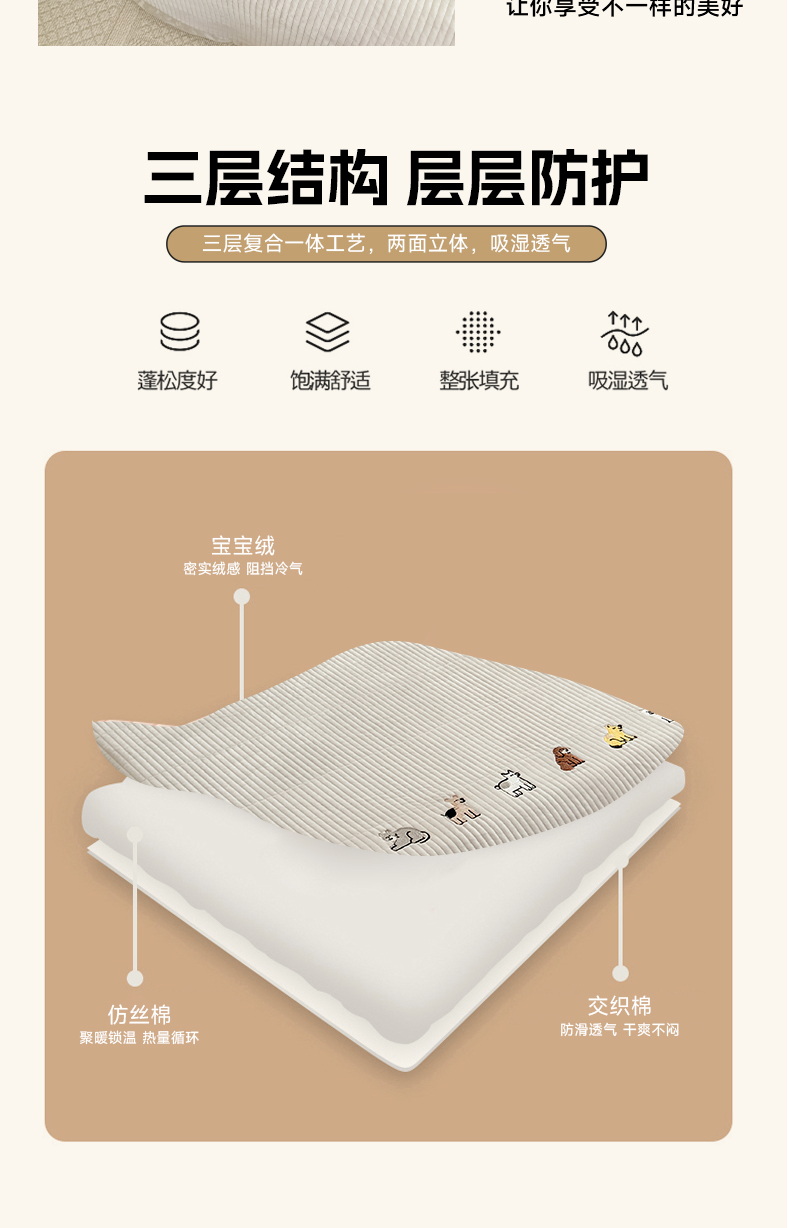 商品名称:(总)法芙娜家纺 2025新款可爱刺绣宝宝绒床盖三件套