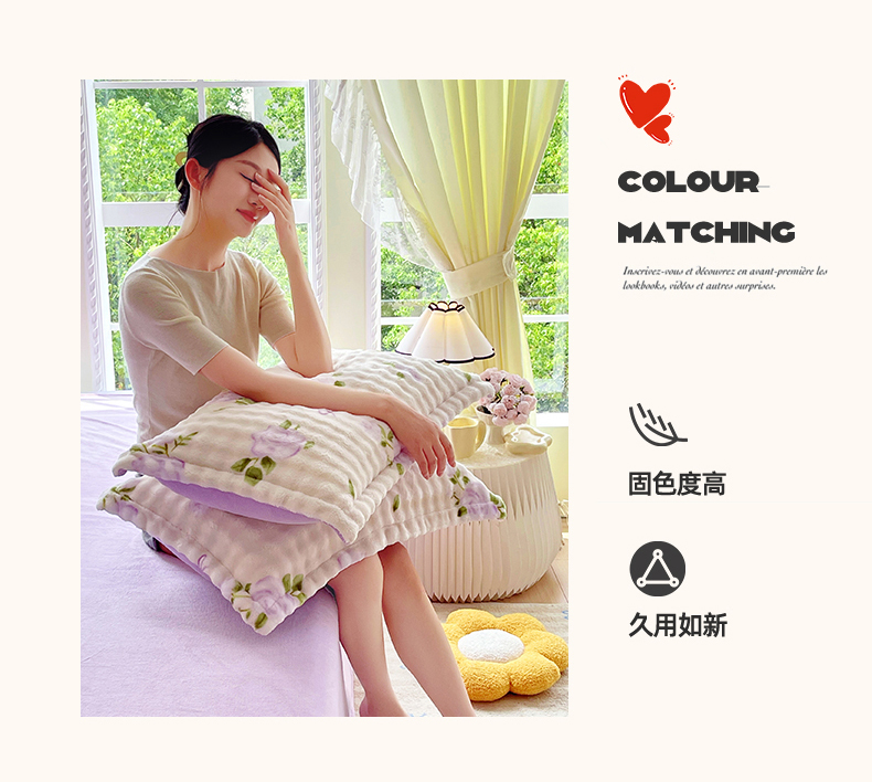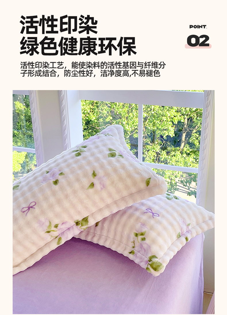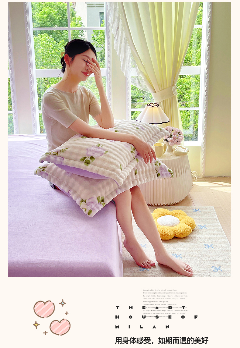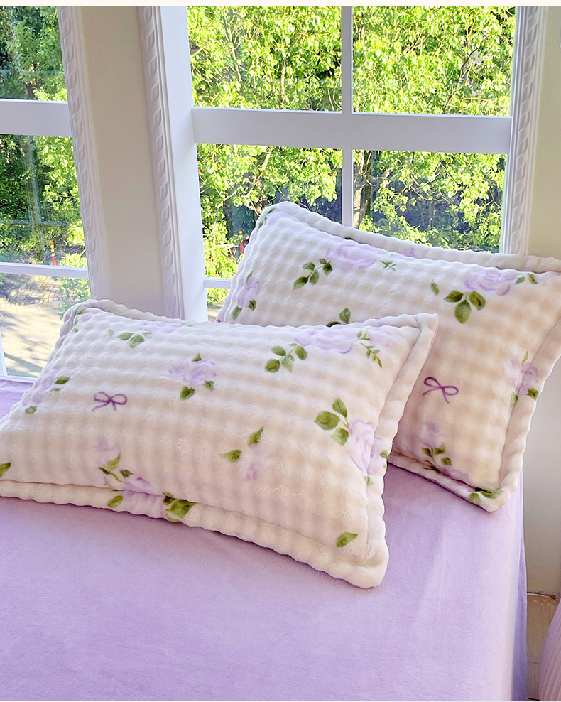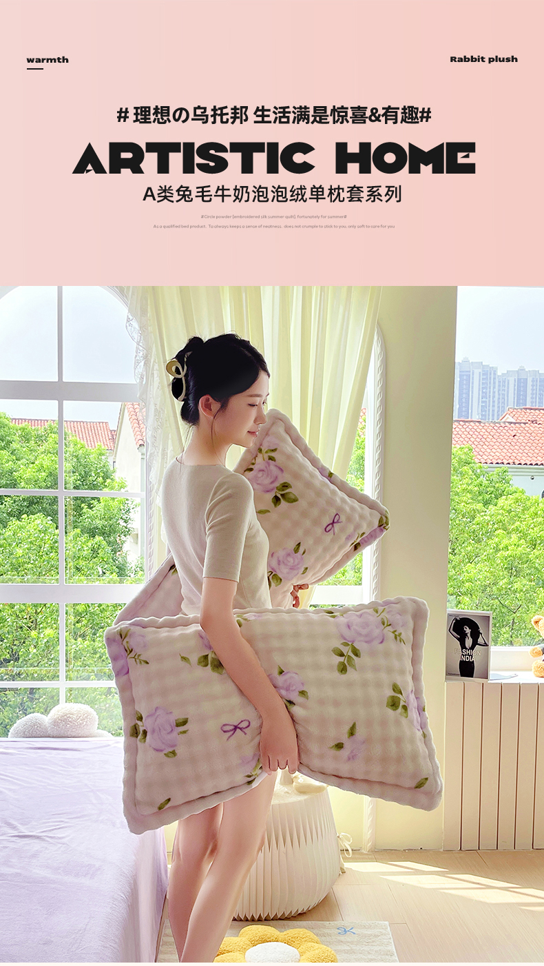 商品名称:凯儿家纺 2025新款兔毛牛奶泡泡绒单枕套单品枕套枕套单件 花语柔情