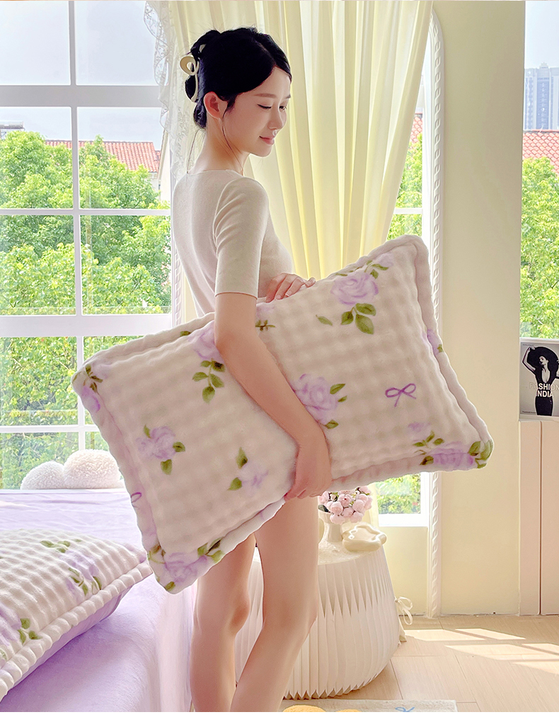 凯儿家纺 2025新款兔毛牛奶泡泡绒单枕套单品枕套枕套单件 花语柔情