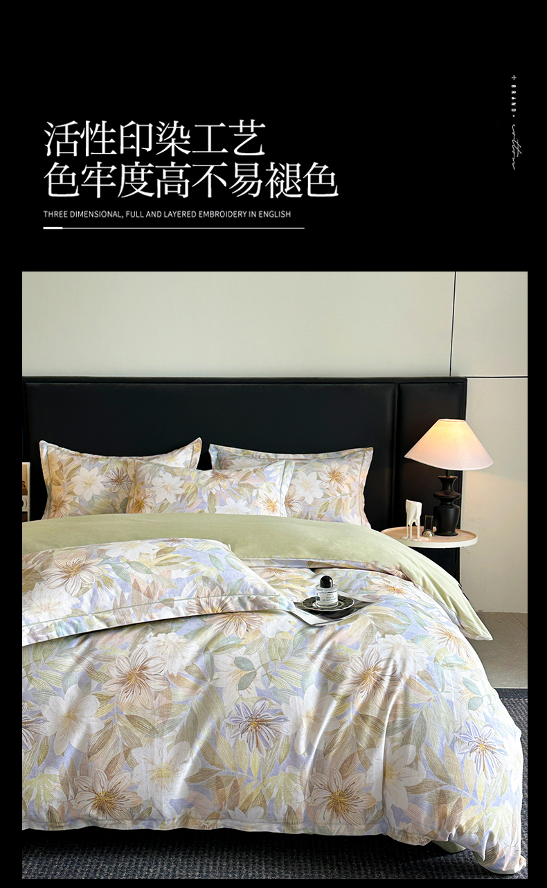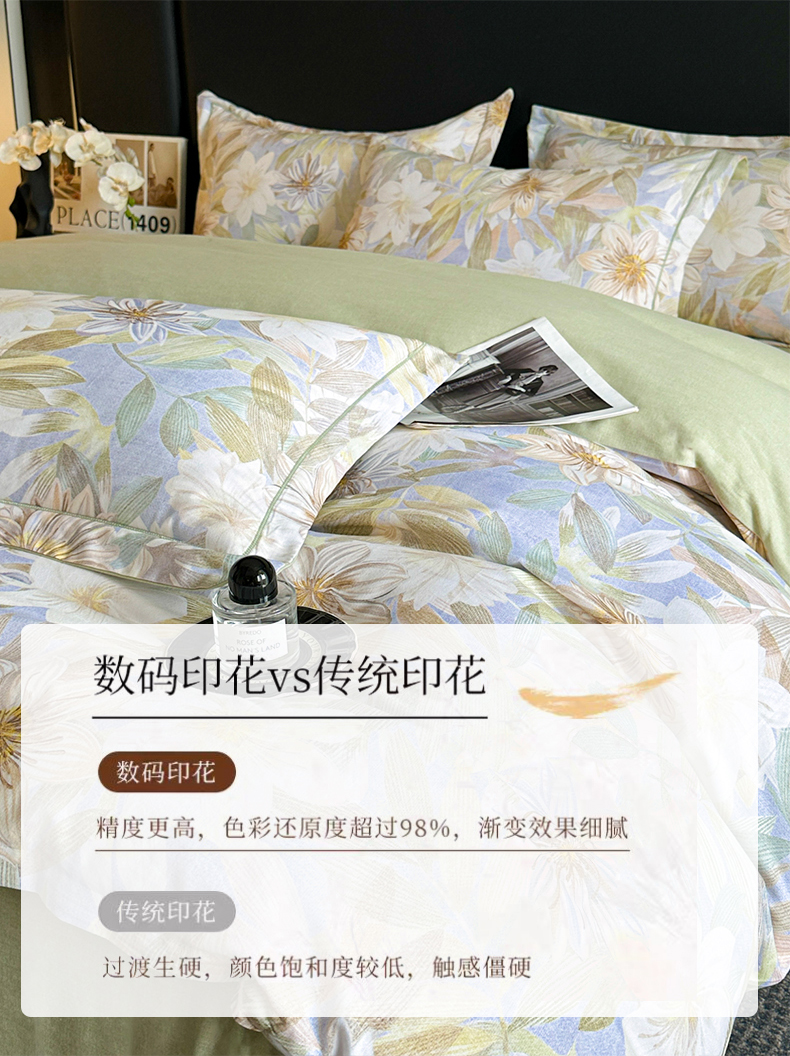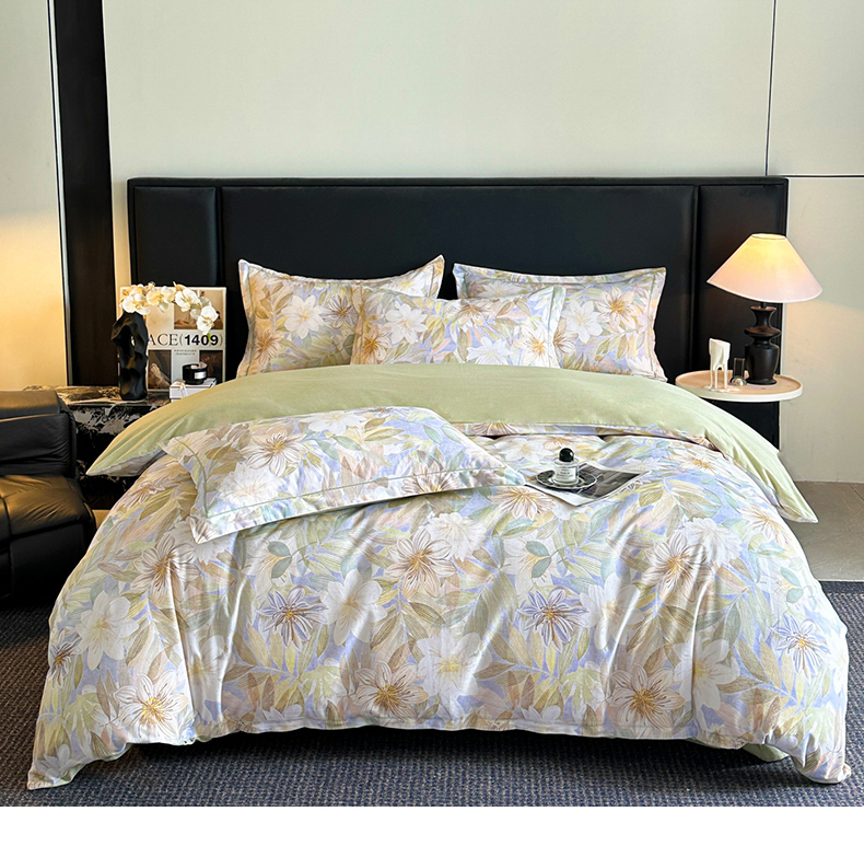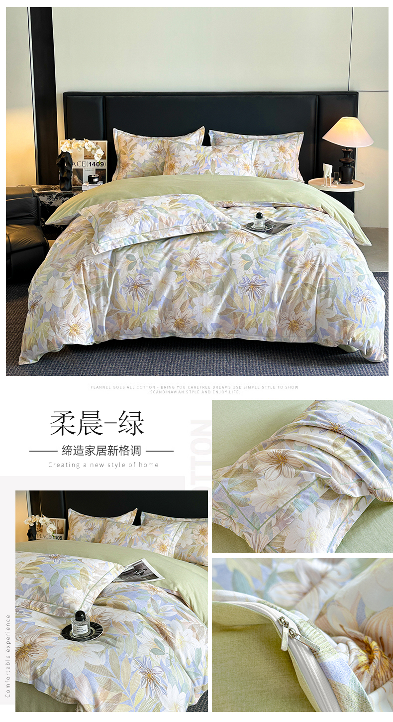海洋家纺 2026新款100%全棉磨毛数码印花四件套加厚全棉四件套-提供买家秀 柔晨 绿